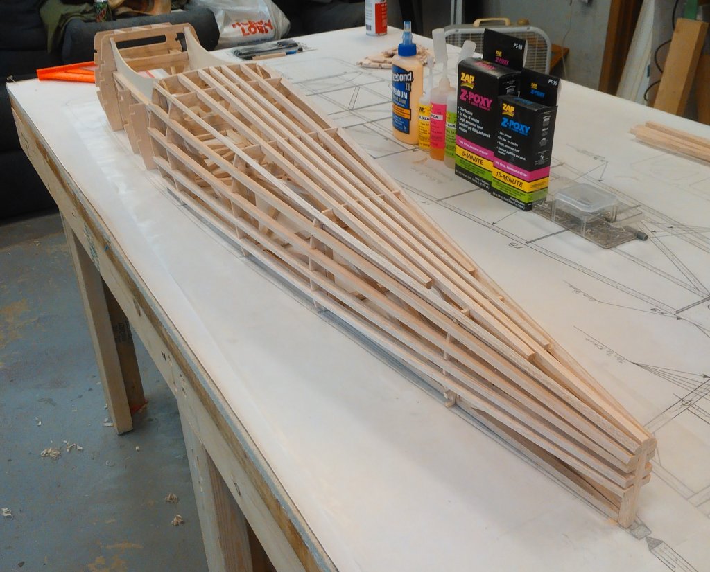 I ran out of sticks for stringers, order has already been placed for more. While I'm waiting I'll probably start framing up the horizontal.