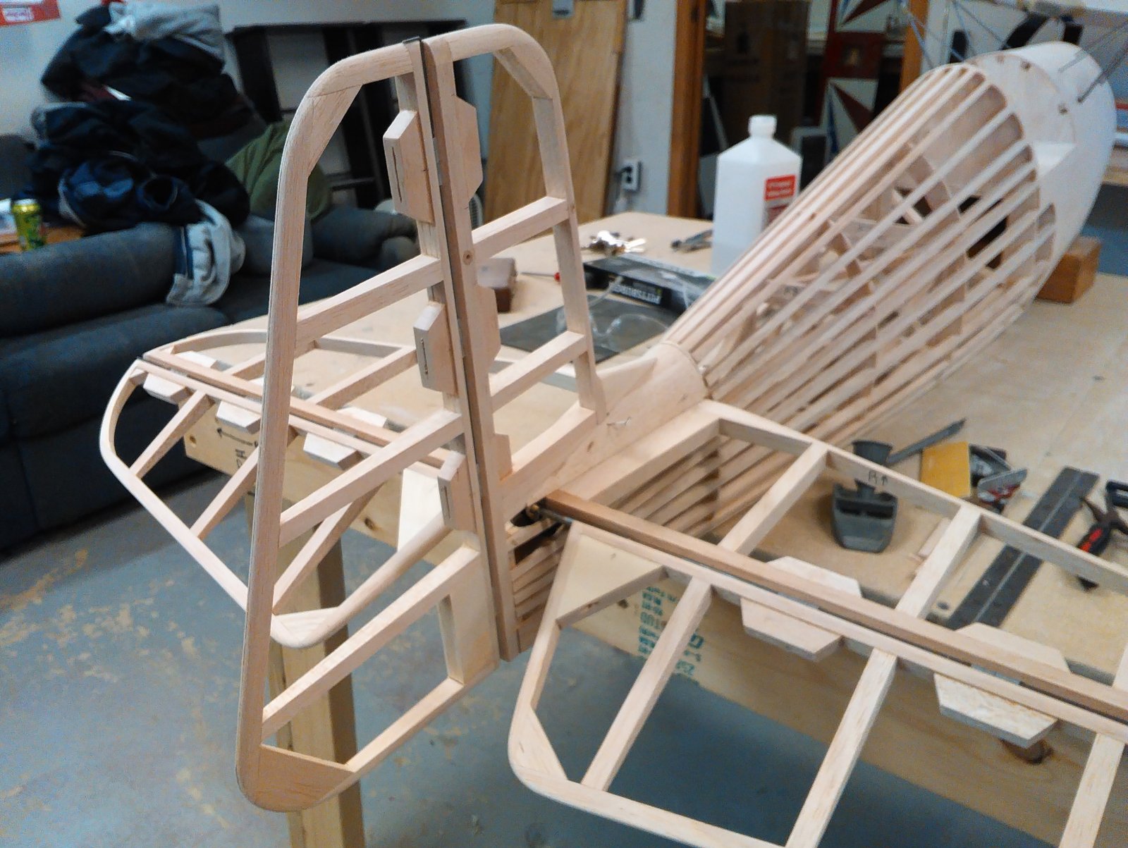 Getting the stab saddle set and ready to glue the stab in. I got it trammeled to less than 1/16 of an inch and have less than a 1/4 degree of positive incidence. Good enough for me so tomorrow the tail gets glued on!