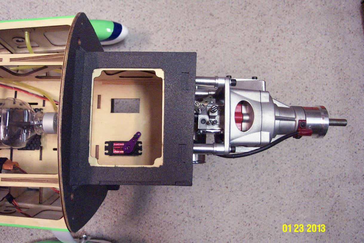 There is not a lot more to do to have the Extra ready for the maiden flight. Only a couple of major things need to be completed; mount the engine and throttle servo and setup the linkage geometry. Once that is done I can add abut ½ tank of fuel and figure out the final install locations for the RX, PDS, A123’s and fuel bottle…………..getting closer.