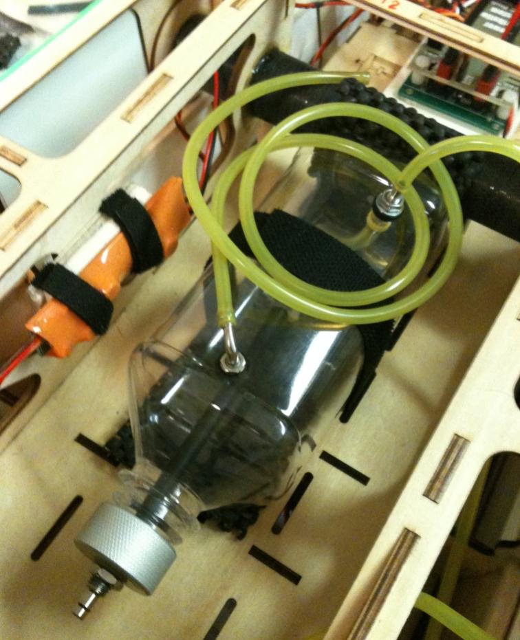 I’m using a 500ml Fiji bottle with the PSP Mfg. aluminum cap for my fuel tank. Was able to get it put together (3 line system) and installed where I think it needs to be for a good working CG location. I also installed the IBEF as well and gave it a test with the PDS, RX and TX working together, seems to be operating properly.