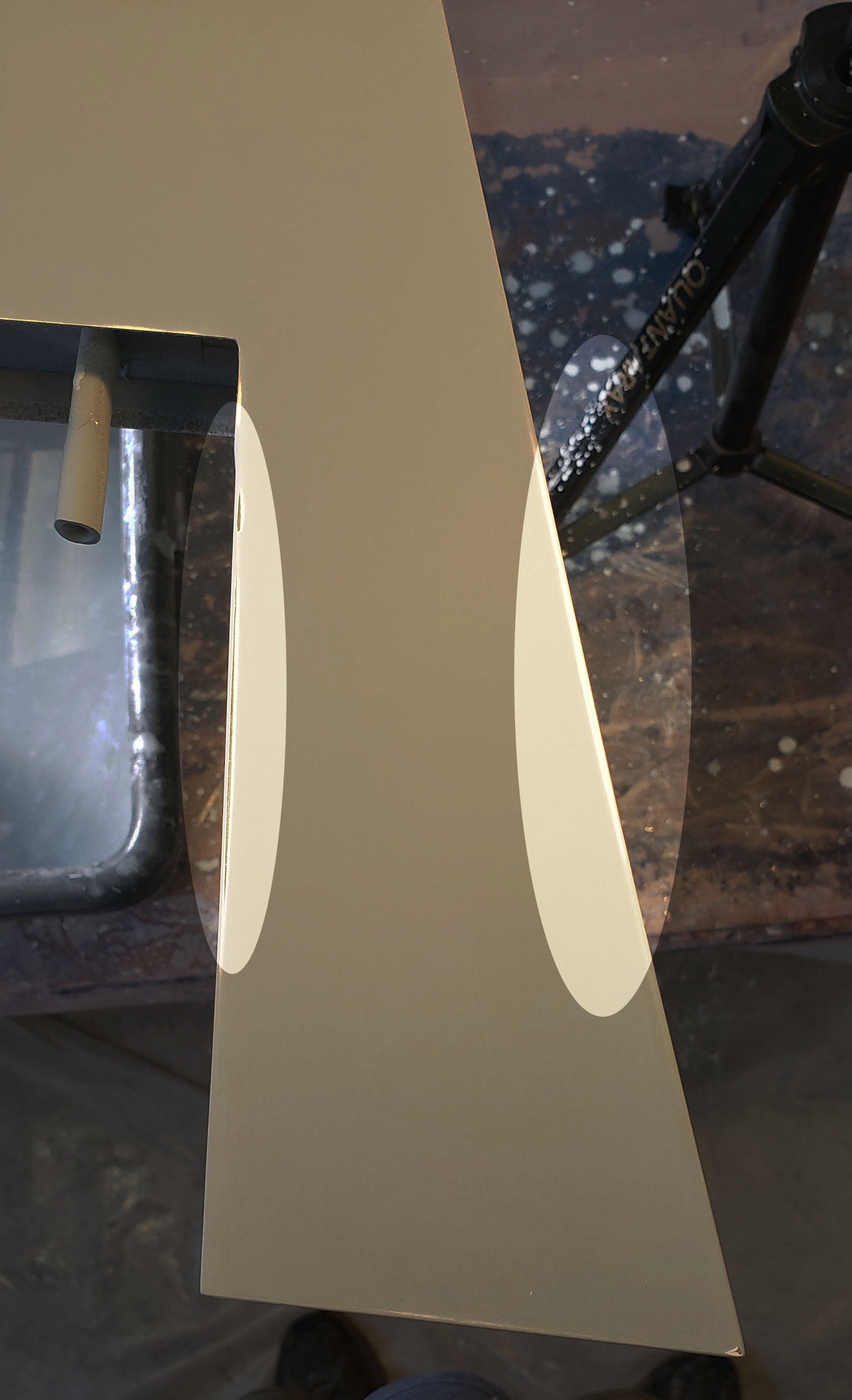 @Jetpainter ......Question for the painting pro....Final (hopefully) wet sanding of the primer (Nason 2K) on my Krill. Every now and then there will be a very slight sand-thru of the primer, to either the underlying white gelcoat or glass. All still very smooth. In the pic I've highlighted a couple of such areas. These happen on or near edges.