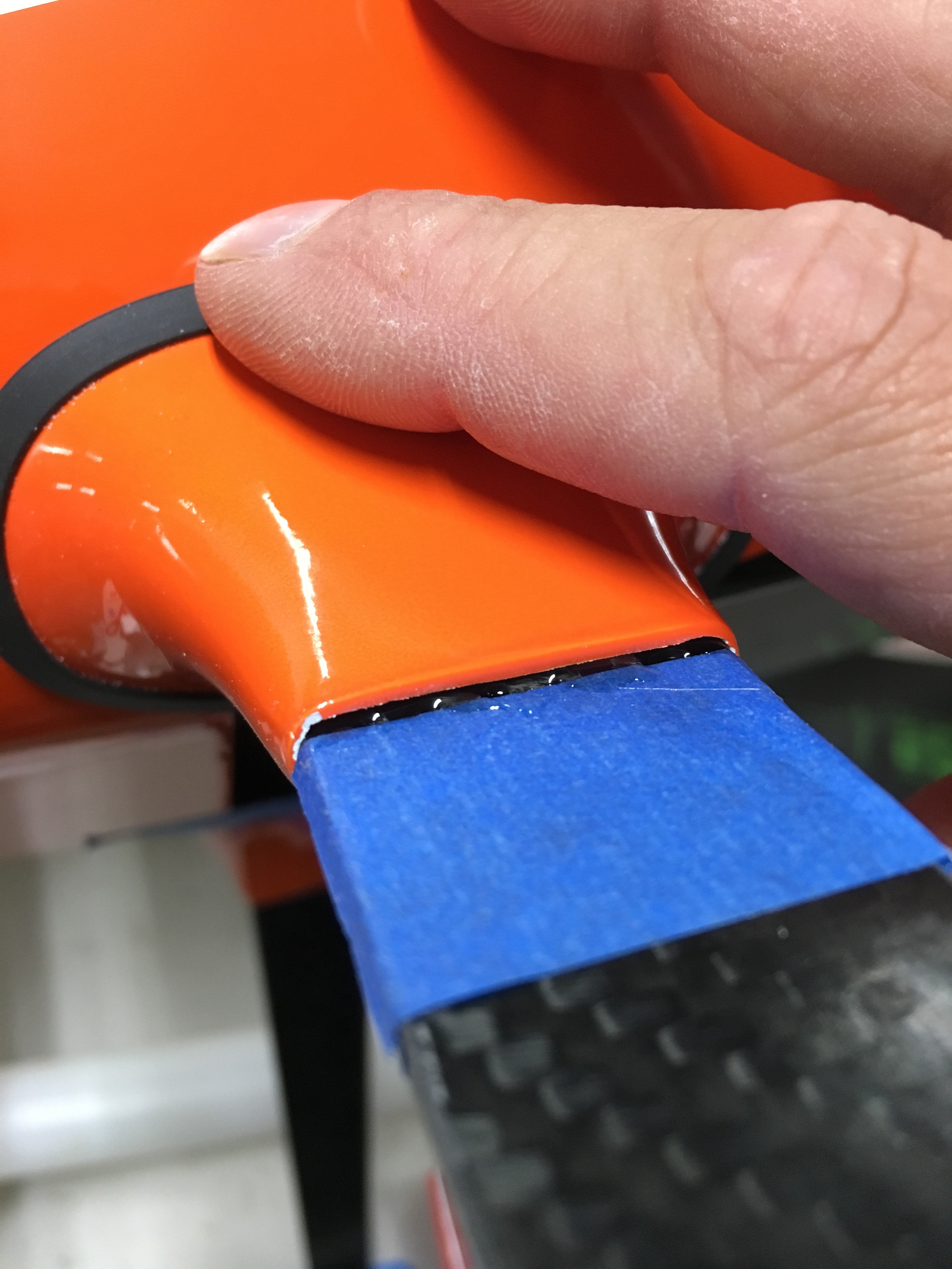 Once it's fitted, use blue painters tape to mark where the cuff stops and scruff up the gear leg lightly so the glue will stick better.