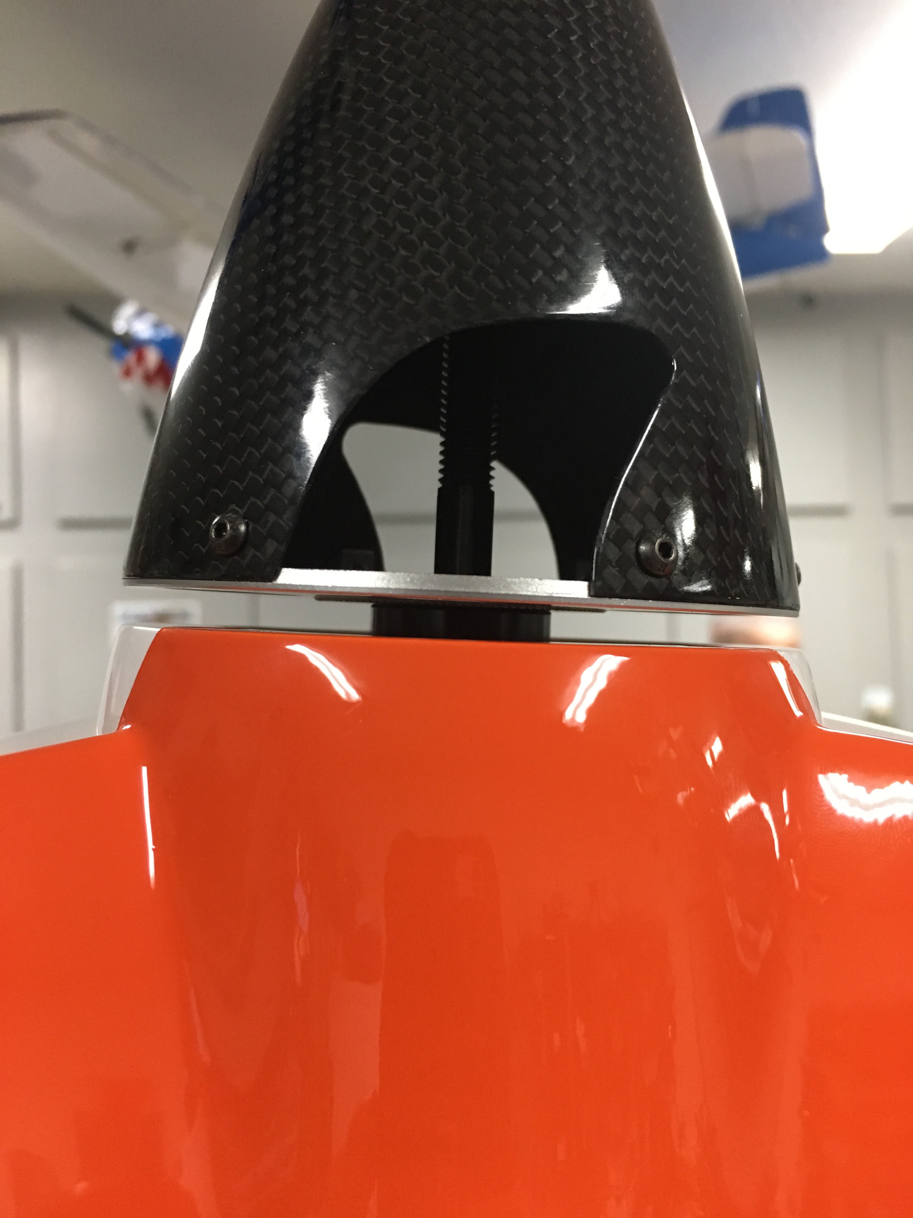 May not have been the tightest gap, but its better than the spinner rubbing the cowl when the plane is getting tumbled through the air. Also, note the mount squished down a bit from the first picture (prior to bolting down tight) which I anticipated.