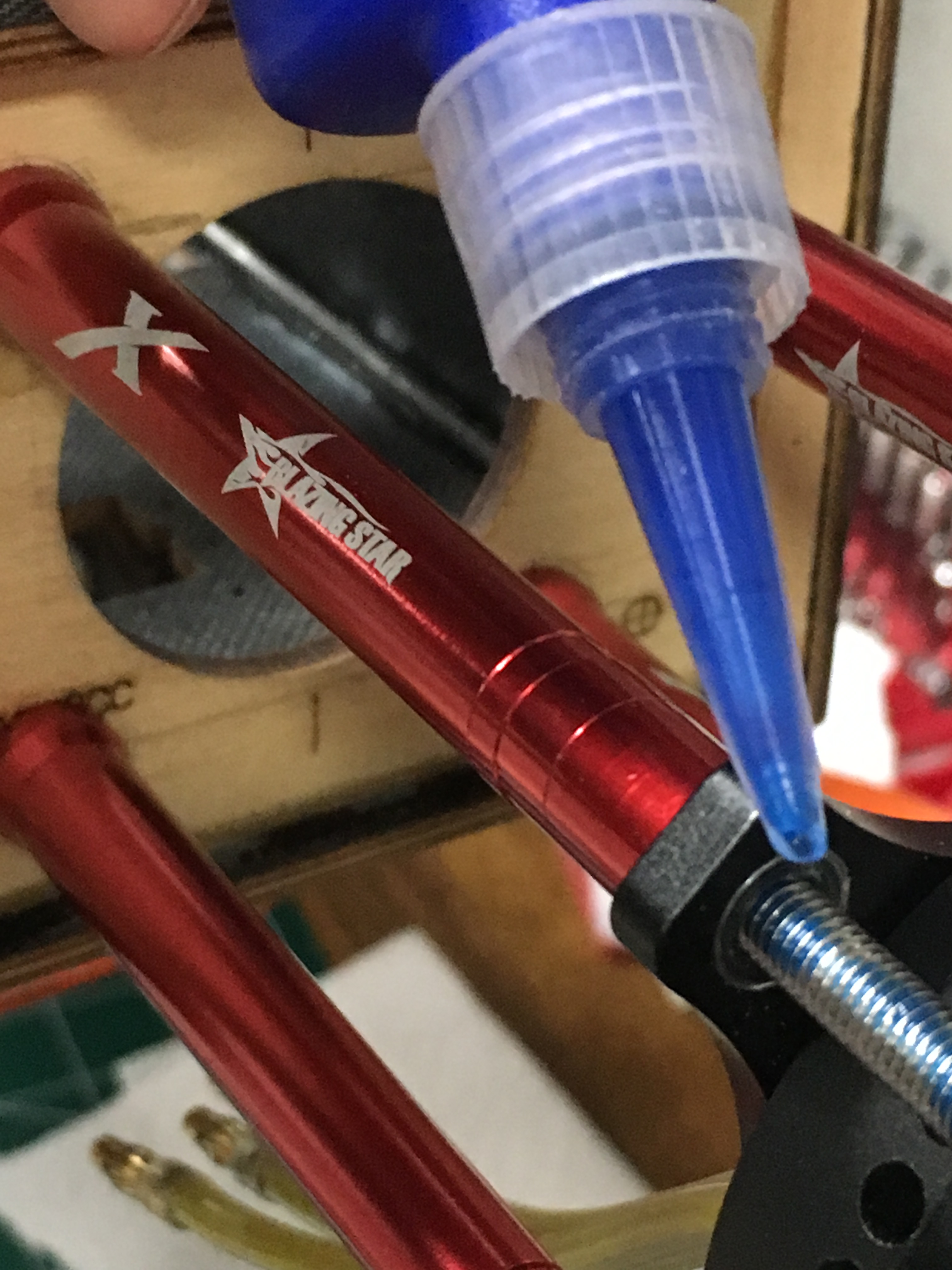Add the glue (I'm using my trusty welders glue). I'll add a bead of glue around the circumference of the cuff were it attaches to the gear for some extra support.