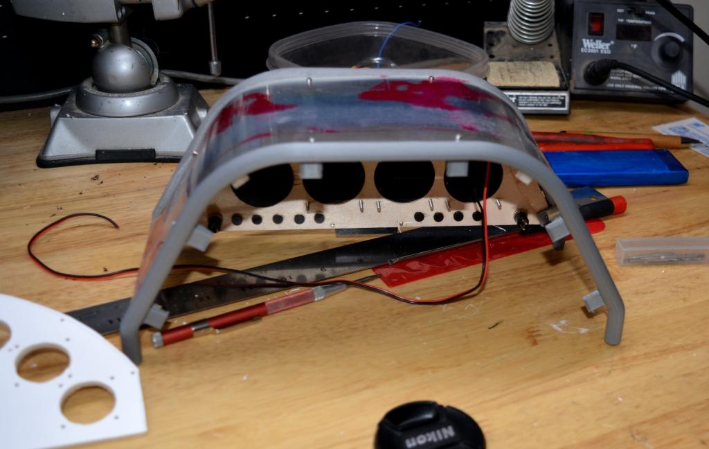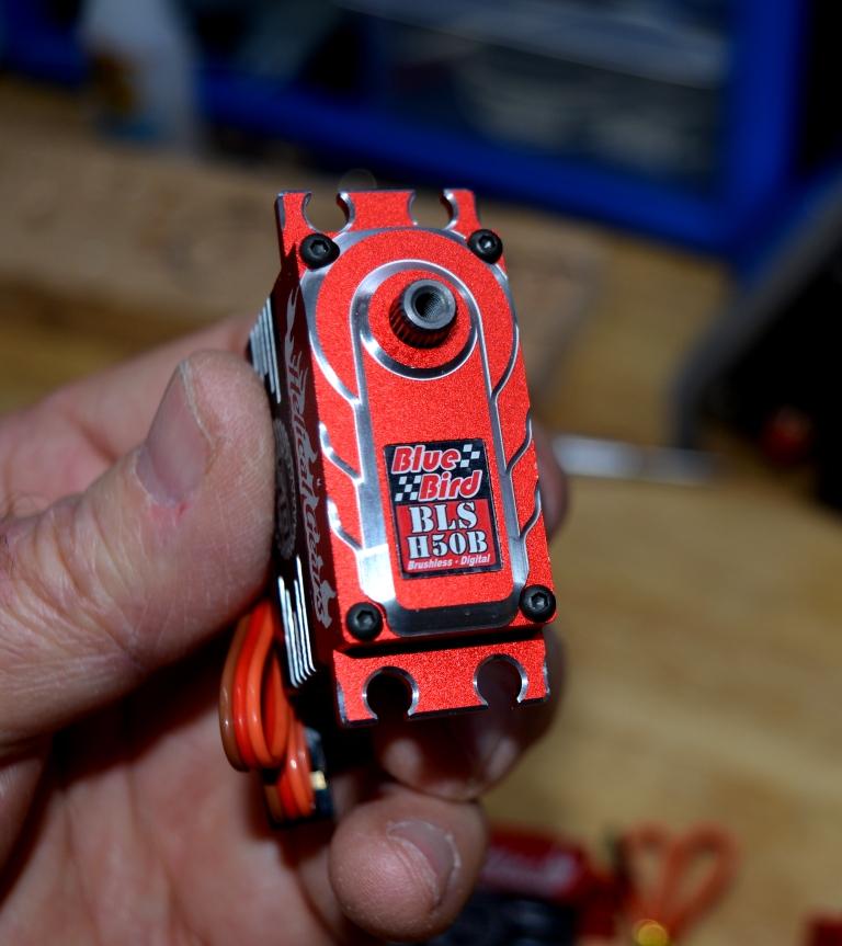 aluminum part on the rear instrument, still needs black paint, and the front has a sheet of plastic to simulate aluminum , also will be painted black, the piece de resistance now sponsored by Bluebird servos and with this received this AM 6 of the beautiful H50B Brushless