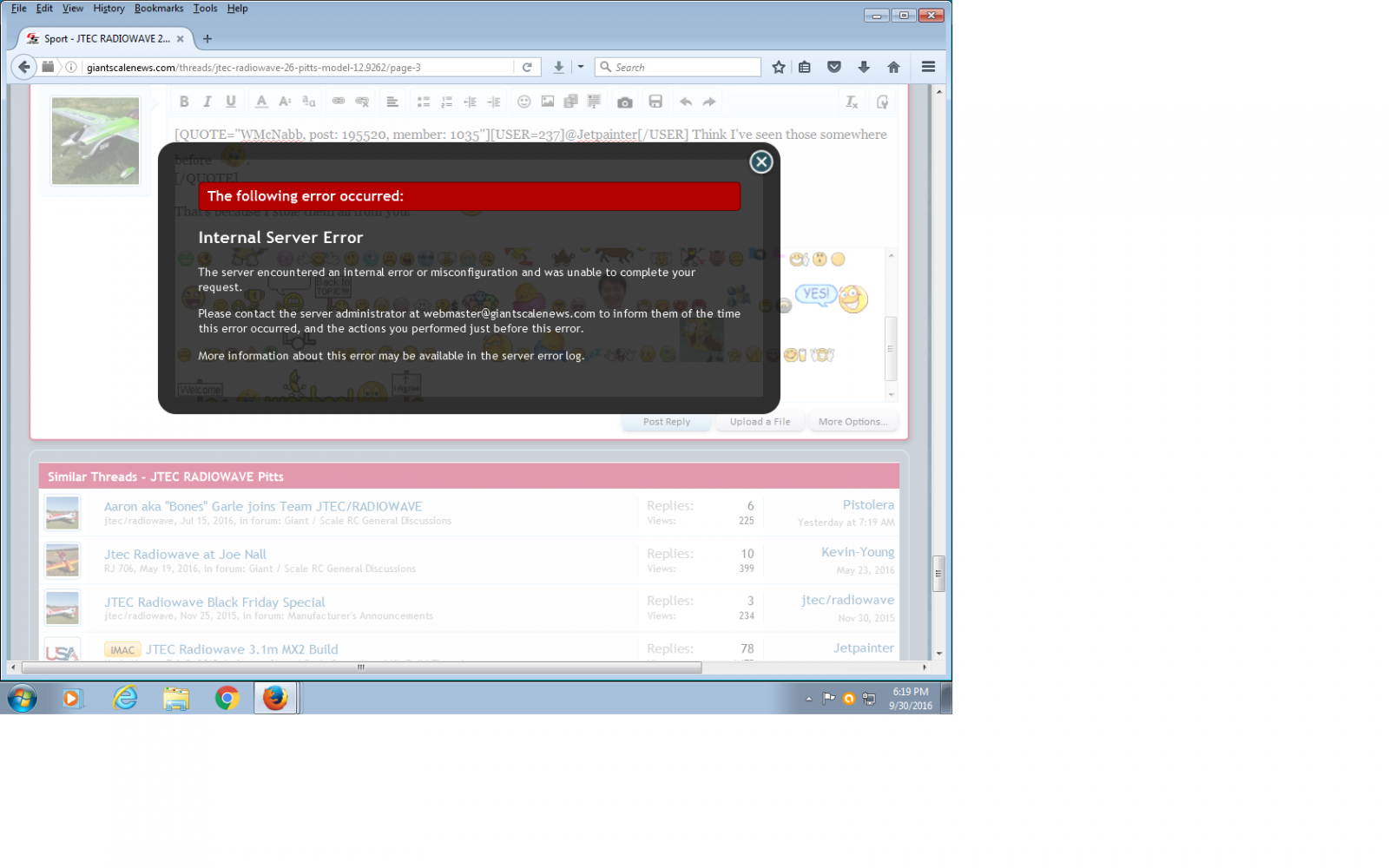 David do they look like this? I was getting these when trying to respond to something in Stangflyer's JTEC Pitts thread. I could post as long as I wasn't quoting something in the thread.