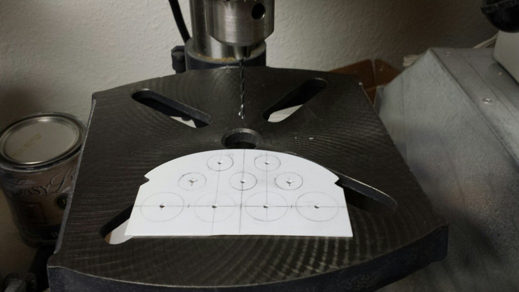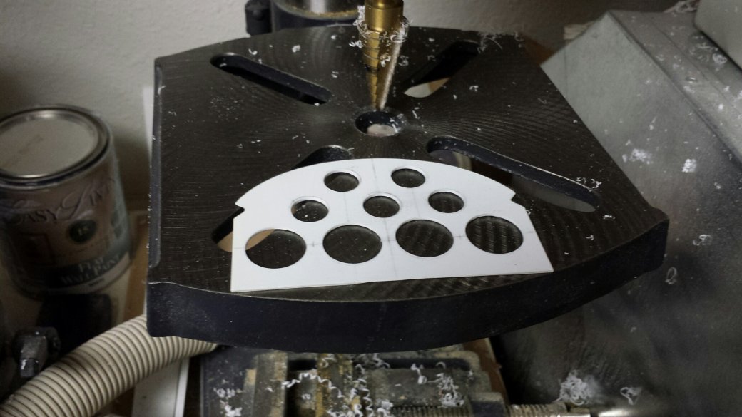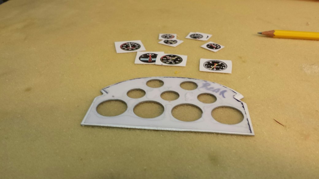 I used a J'Tec kit. I started with a piece of .040 Styrene plastic. I marked out where I wanted the instruments and drilled some small pilot holes on the drill press. I then moved to a 1/4' bit and then onto a Unibit. Unibits are great for things like this. When your drilling plastic with a standard bit, you can end up with a hole that's not round. The Unibits drill a nice round hole.