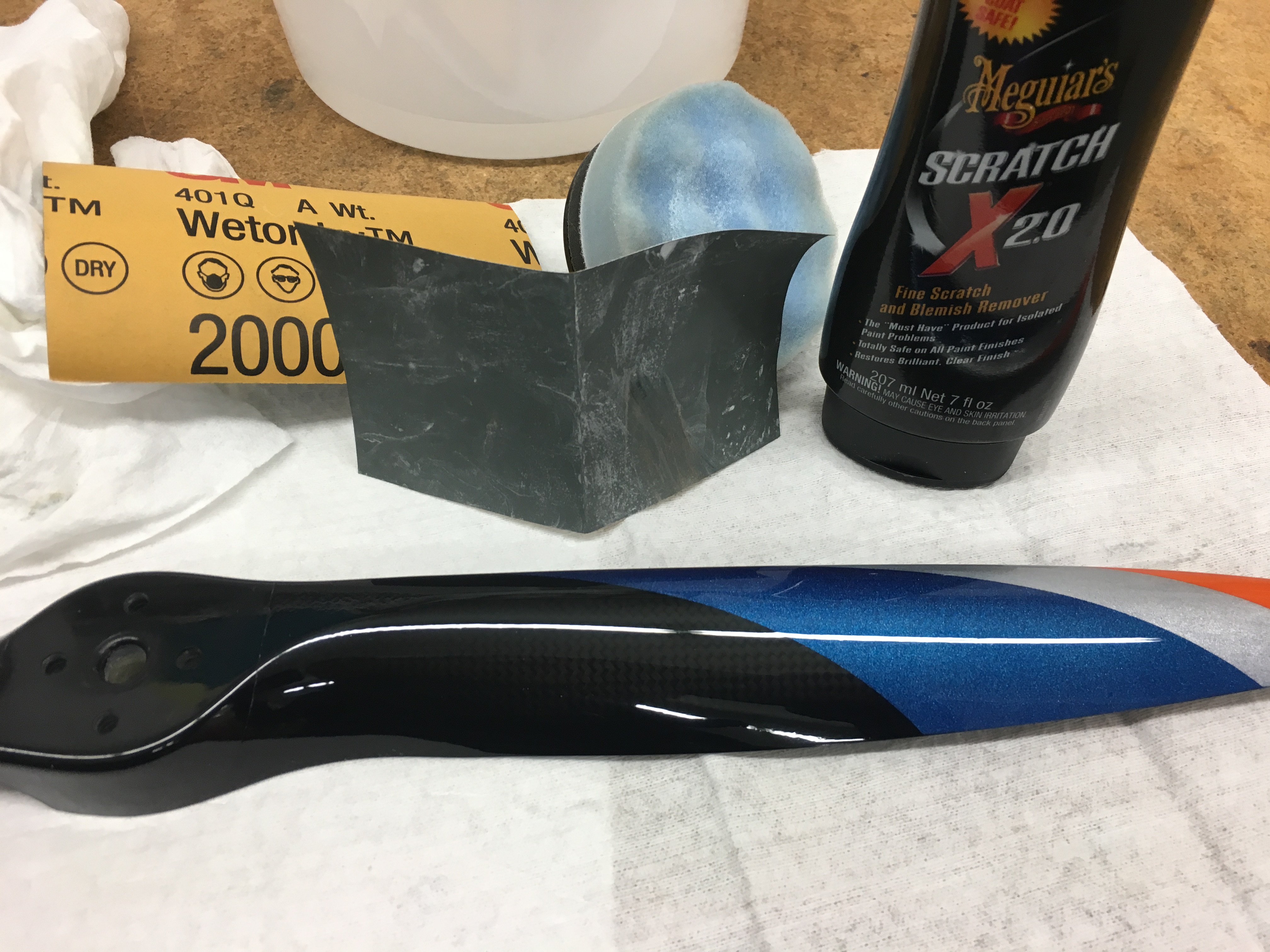 Prop polishing!! It’s been a few days, My lacquer has had time to set and fully gas. Used 2000 wet sand paper, followed by Meguiars scratch x 2.0, followed by more sanding, 3m ultrafine foam polishing pad with more buffing compound watered down and presto! I was pleasantly surprised how well it worked.
