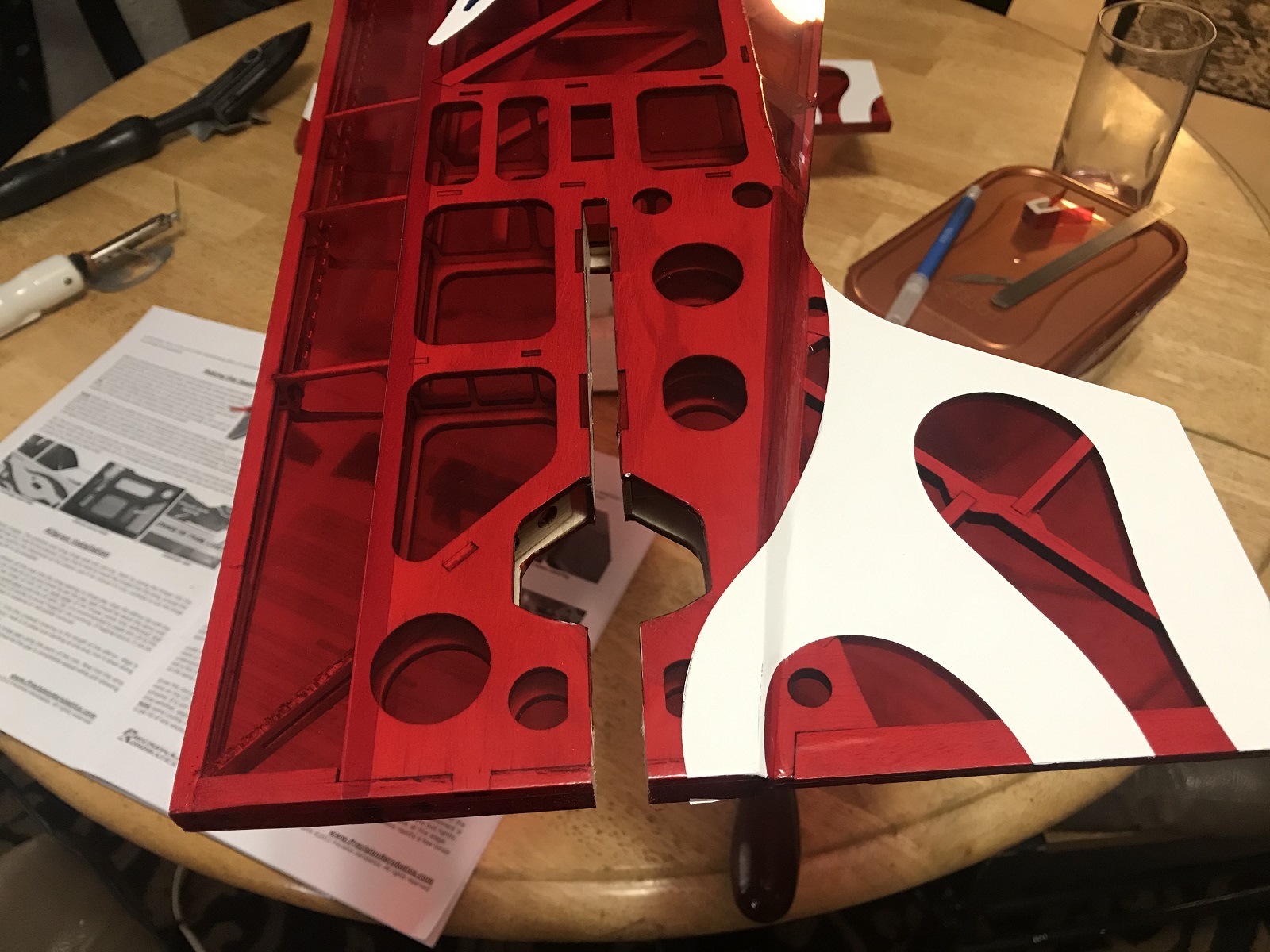 Got the slot cut open for the stab and got it glued in. This was the first time that I didn't have to adjust the stab at all, before gluing it in place. It was plum, square, and level first fit!