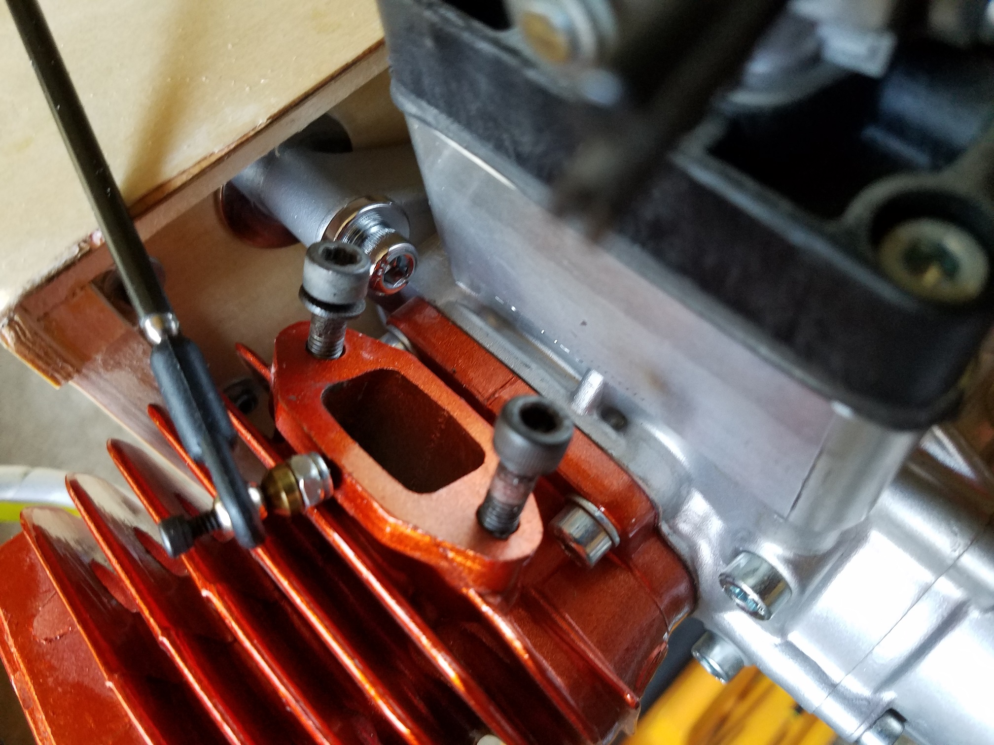 Picture one is of the original design "rubberized" reed cage assembly. As I mentioned, they are good for awhile. But I have noticed mine started leaking after about a year. I guess that would depend on how much use they have. I didn't even use the one on my 106. I simply replaced it when I bought the engine new. (Insert anal here) All new 3w engines now come with all the aluminum updated parts. Check the edges and corners of the reeds very carefully. I usually do the water hold test with them if I see no cracks or chips at the edges or corners. If I notice chips or cracks, I don't even waste my time. I simply replace the reeds. Or the cage if not already updated. It is completely up to you if you replace it. Some guys don't even worry about it. They just re-tighten and fly. I would think that Gerhard would have looked at it and if it was questionable, would have contacted the original owner. Maybe he did, maybe the original owner opted to not replace it. I can not say. The new aluminum reed cage is around 60 bucks if I remember correctly. I would have to find an invoice.