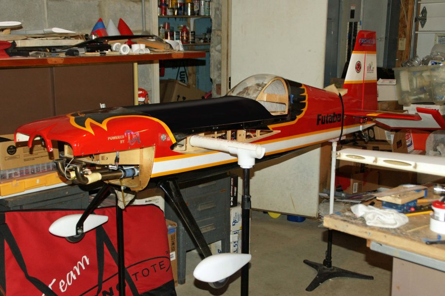 On my 35% Krill I can flip the whole plane over while in the stand. I can't do the Raven with the wheel on as they are too wide to go thru the verticals....otherwise it would do the same thing. Just make sure you have ceiling clearance for the tail.