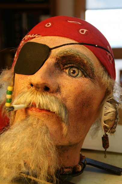 Start with one of these wig mannequins....then carve the snot outta him, add some paint, hair, and an eye (or two) and voila...Cap't Jack Raven!!!