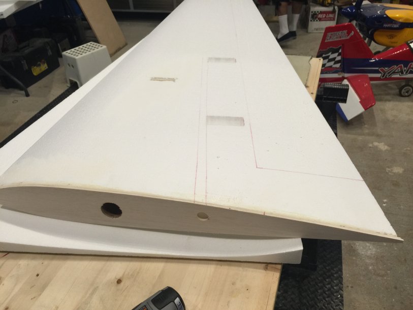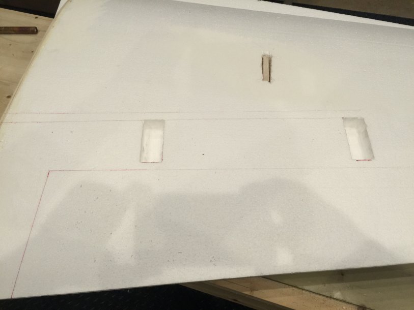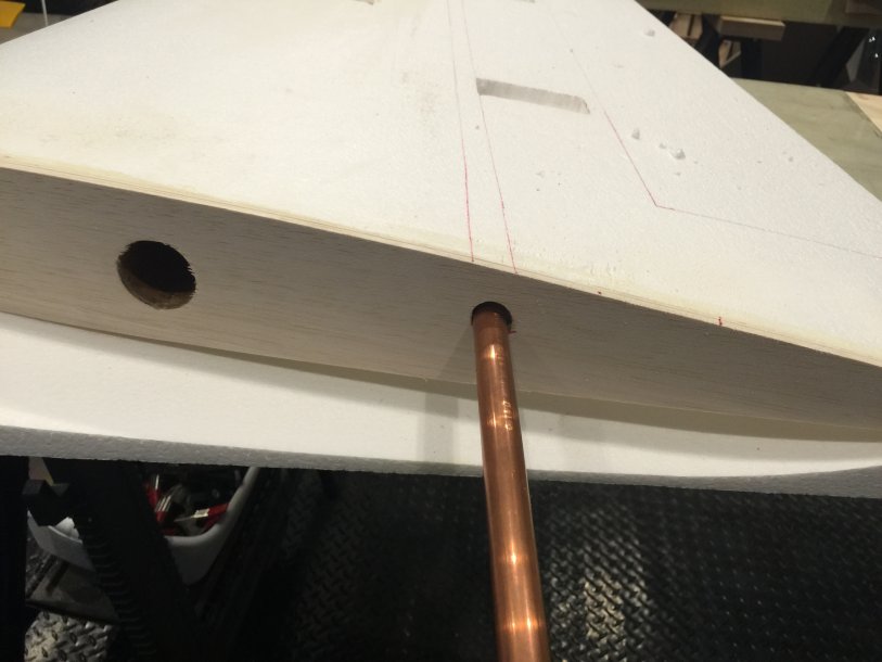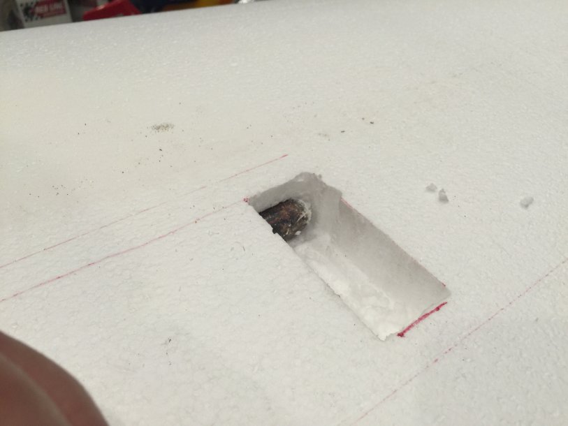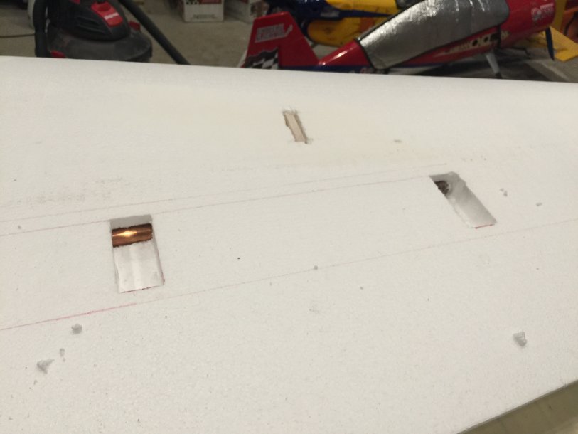 WOW!! Really really impressive.Started to work on one of the wings. I have cut out the servo boxes 1st, then with my assistant, my father in law, we were able to heat up that trusty copper pipe, and we made a perfect tunnel from the root of the wing to the 2 servo boxes!! It came out perfect!!