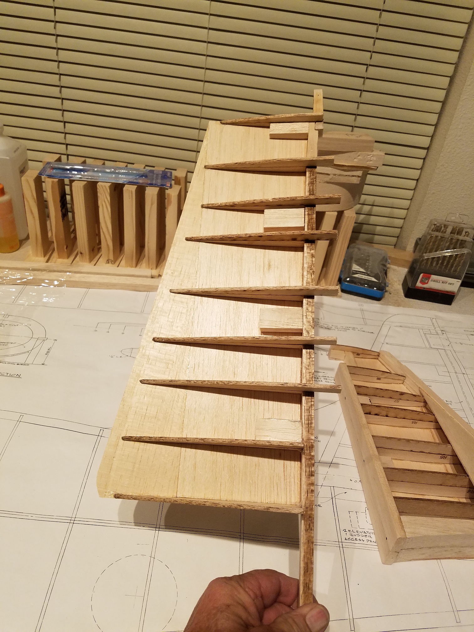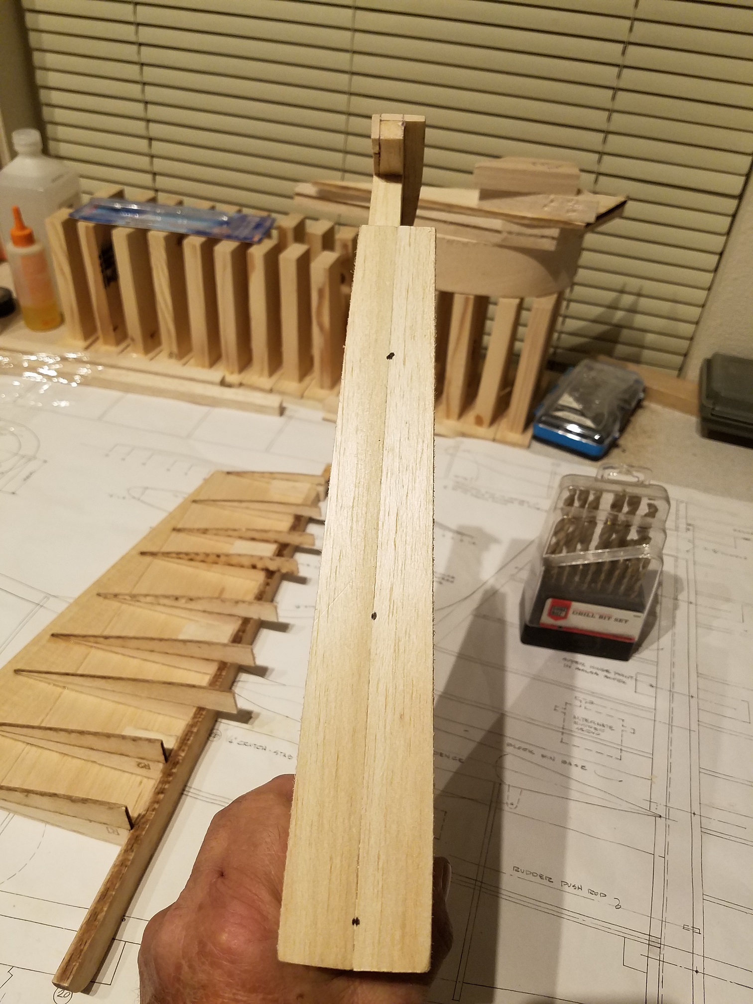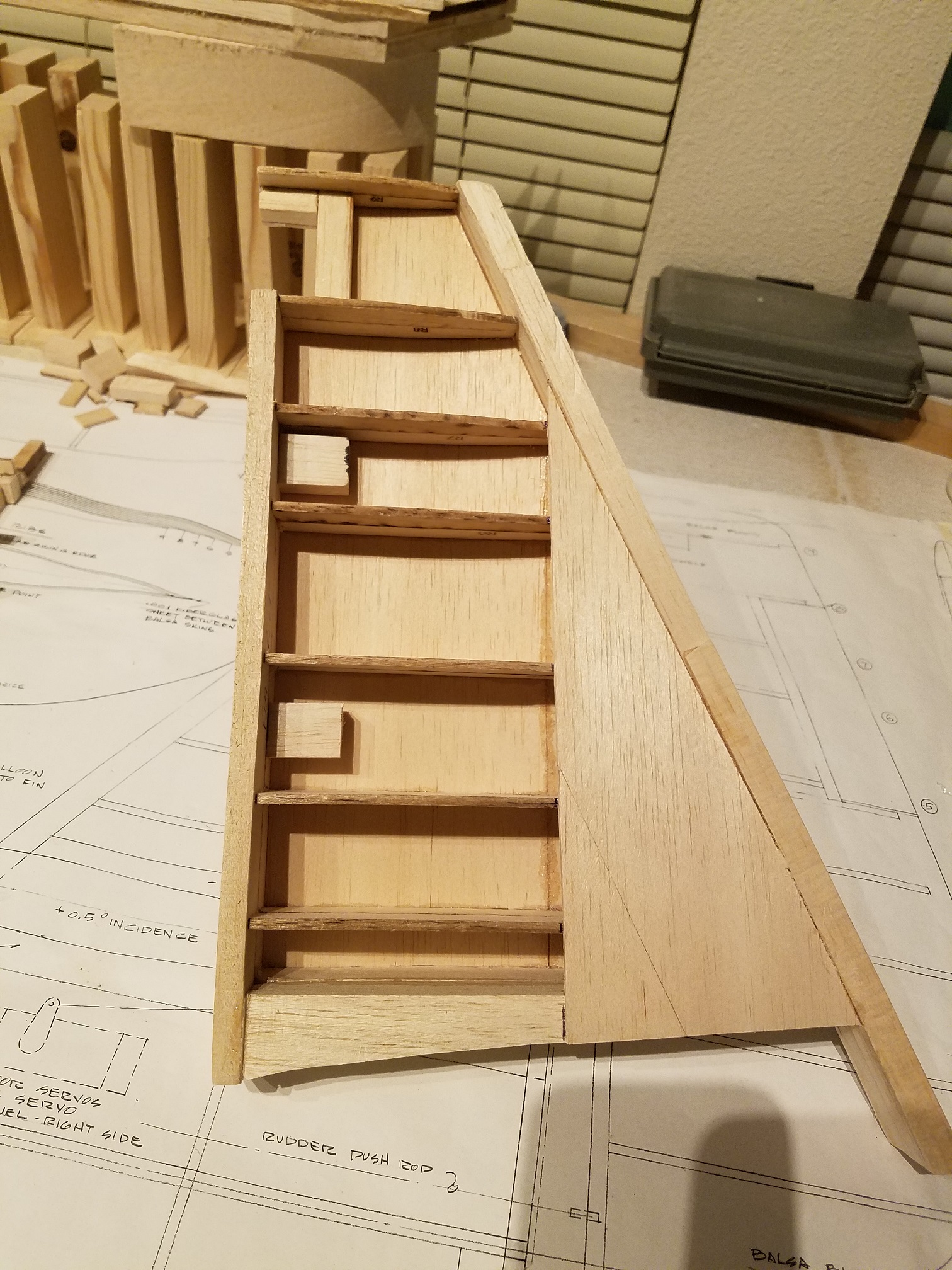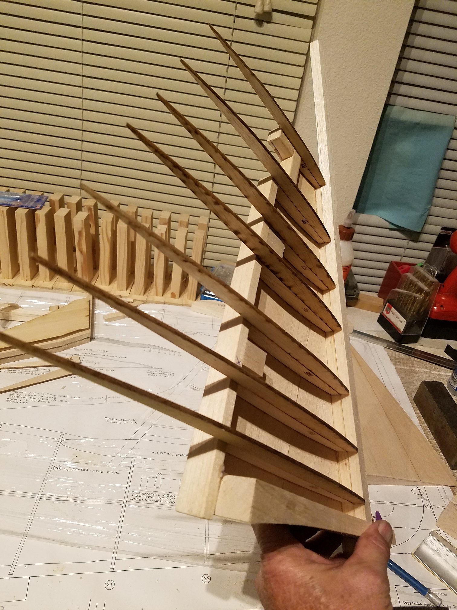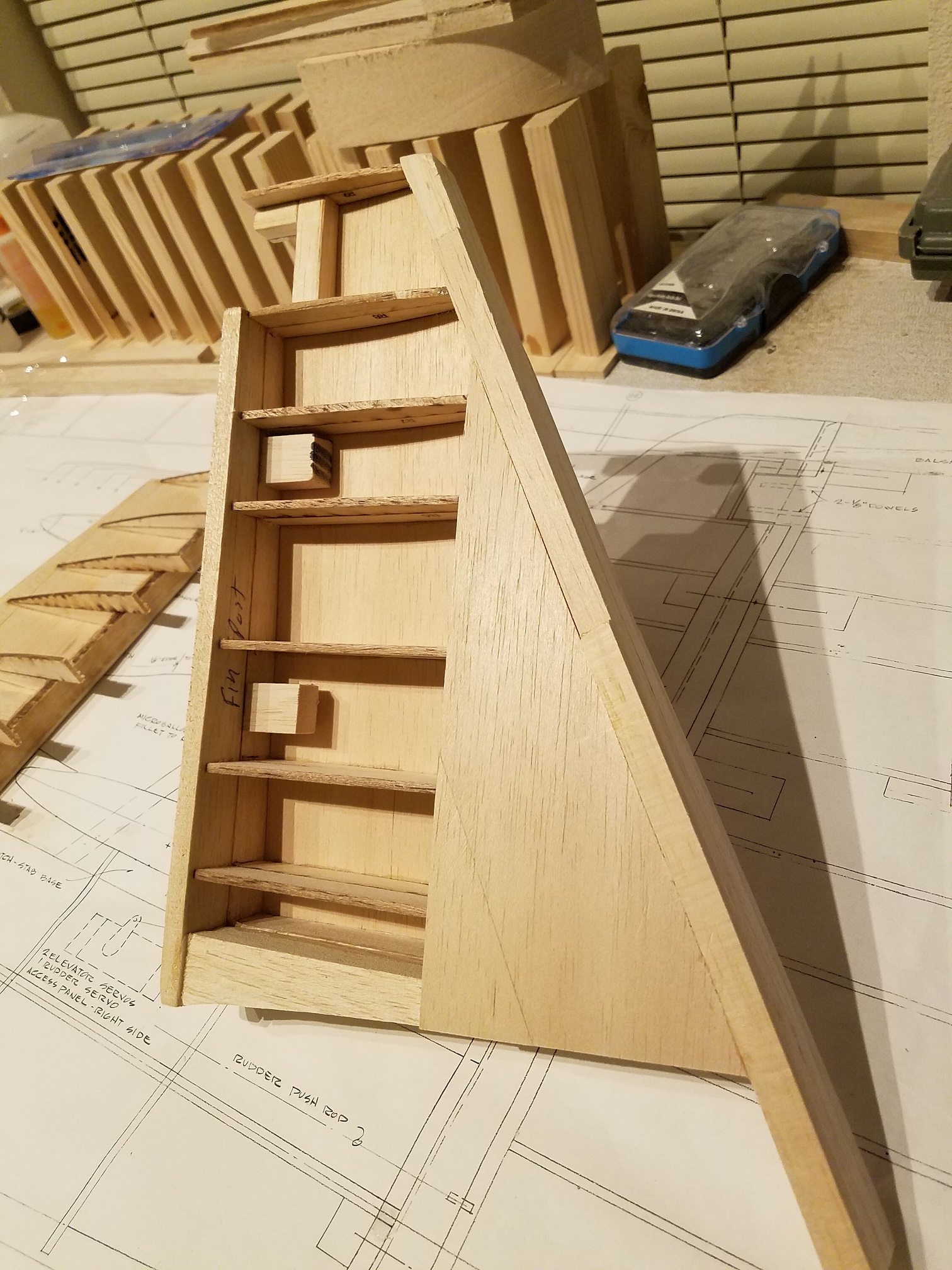 Thank you guys. I am a little disappointed in the plans on this plane. They really only suggest a very minor amount of information. I spent quite a bit of the day just trying to understand how all the pre-cut wood parts are supposed to fit together. The information is a little sketch at best. Oh sure, gluing in ribs to the leading edge is easy enough. But I am finding a bit of an issue with the leading edge and rudder post and how it is all supposed to come together. I plan to build the other half of the fin/rudder assembly and then hopefully the light will come on for the leading edge of the rudder. Then I can dig out the stabs/elevators and make the necessary attachment adjustments before both structures are finally attached to the fuse. The attachment will not be for a long time yet that is for sure. I only can imagine if the building is the quickest part, just how much fun the finish work is going to be. Ugh. I will say this though. Once the fuse was completely framed, the sanding and shaping has actually been quite enjoyable. I am one of those guys that "has" to see constant progress to keep me happy. Seeing the fuse come into its own has been a real thrill. But one other thing is certain. I highly doubt I will be to the point that I just decide to stop and say it is done. I am pretty sure the day it flies, that will be the day I am done. LOL.