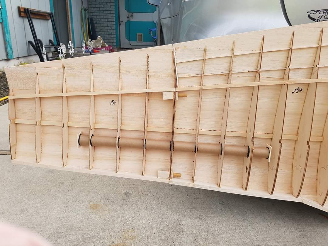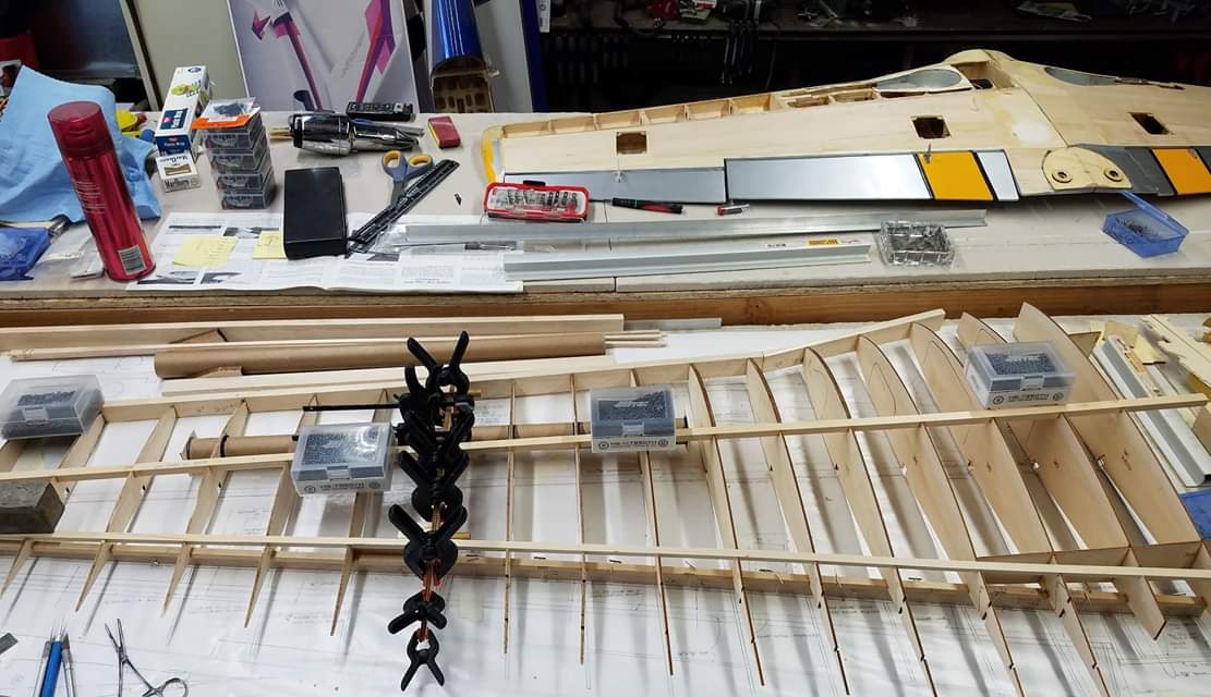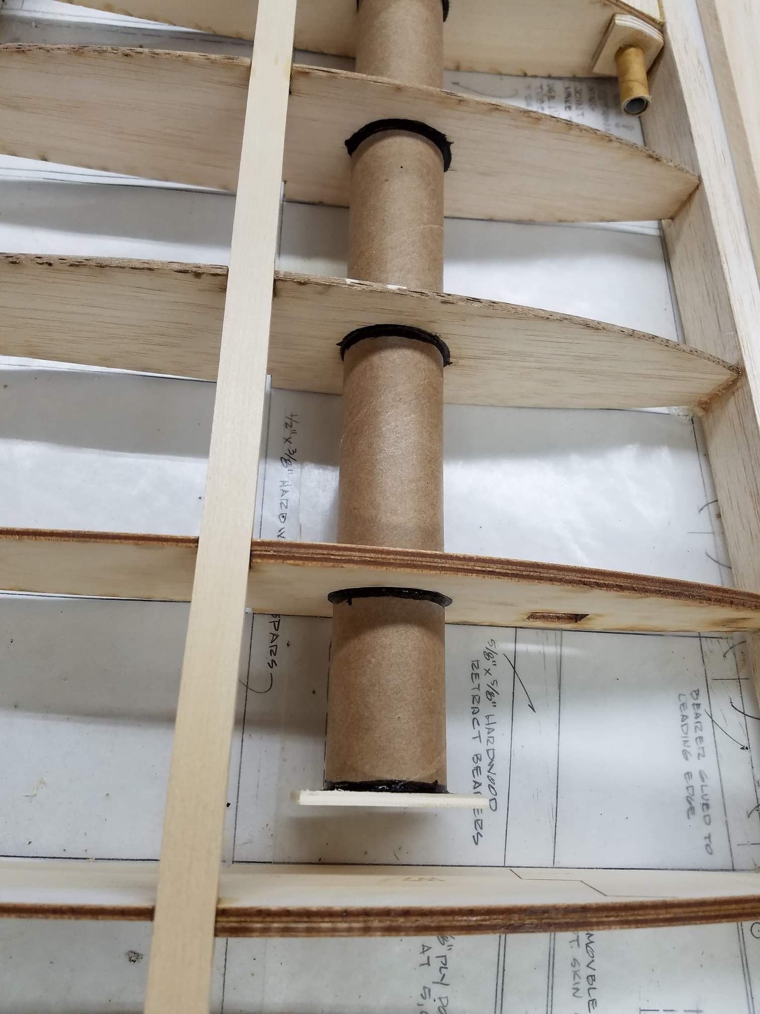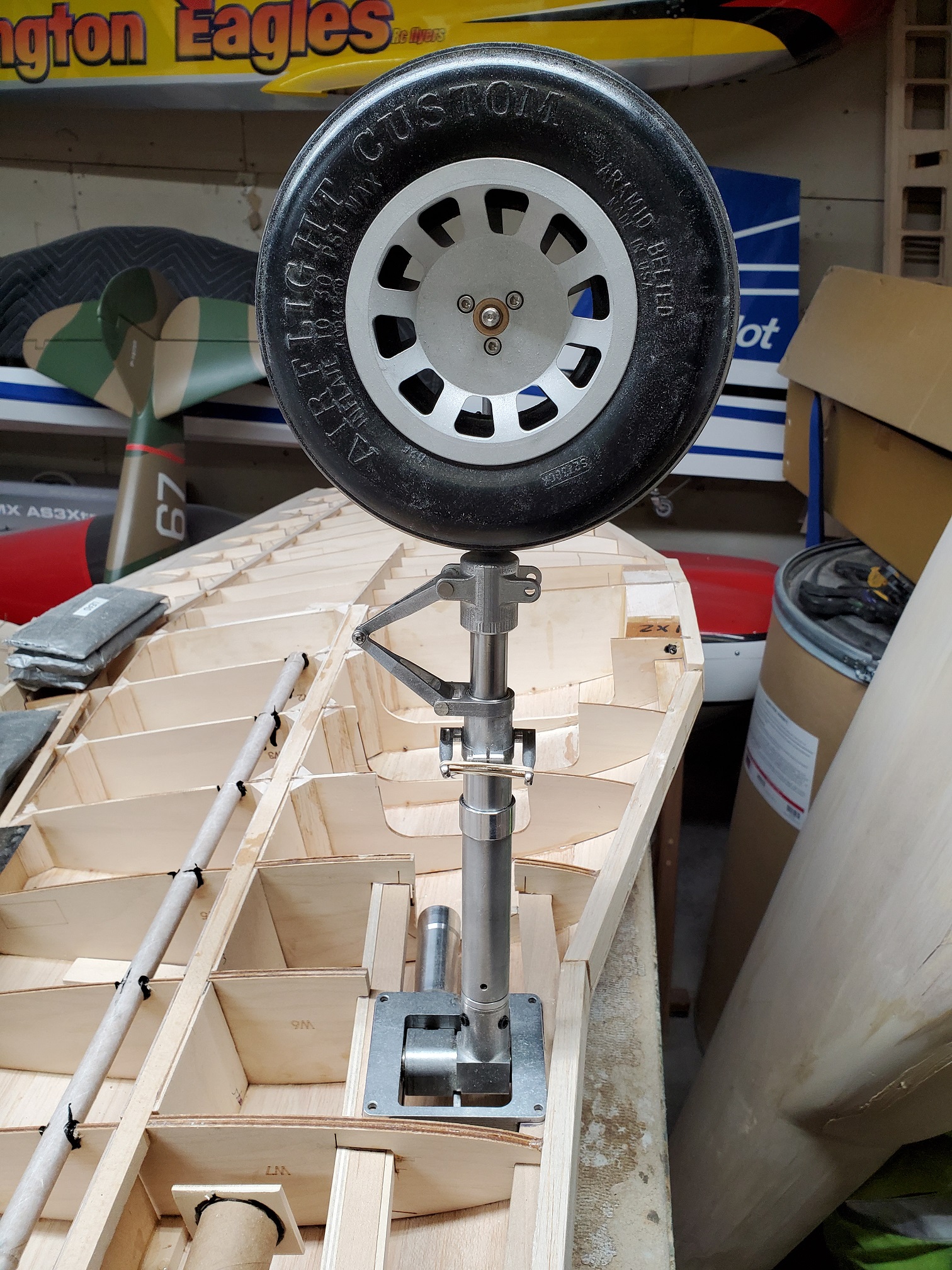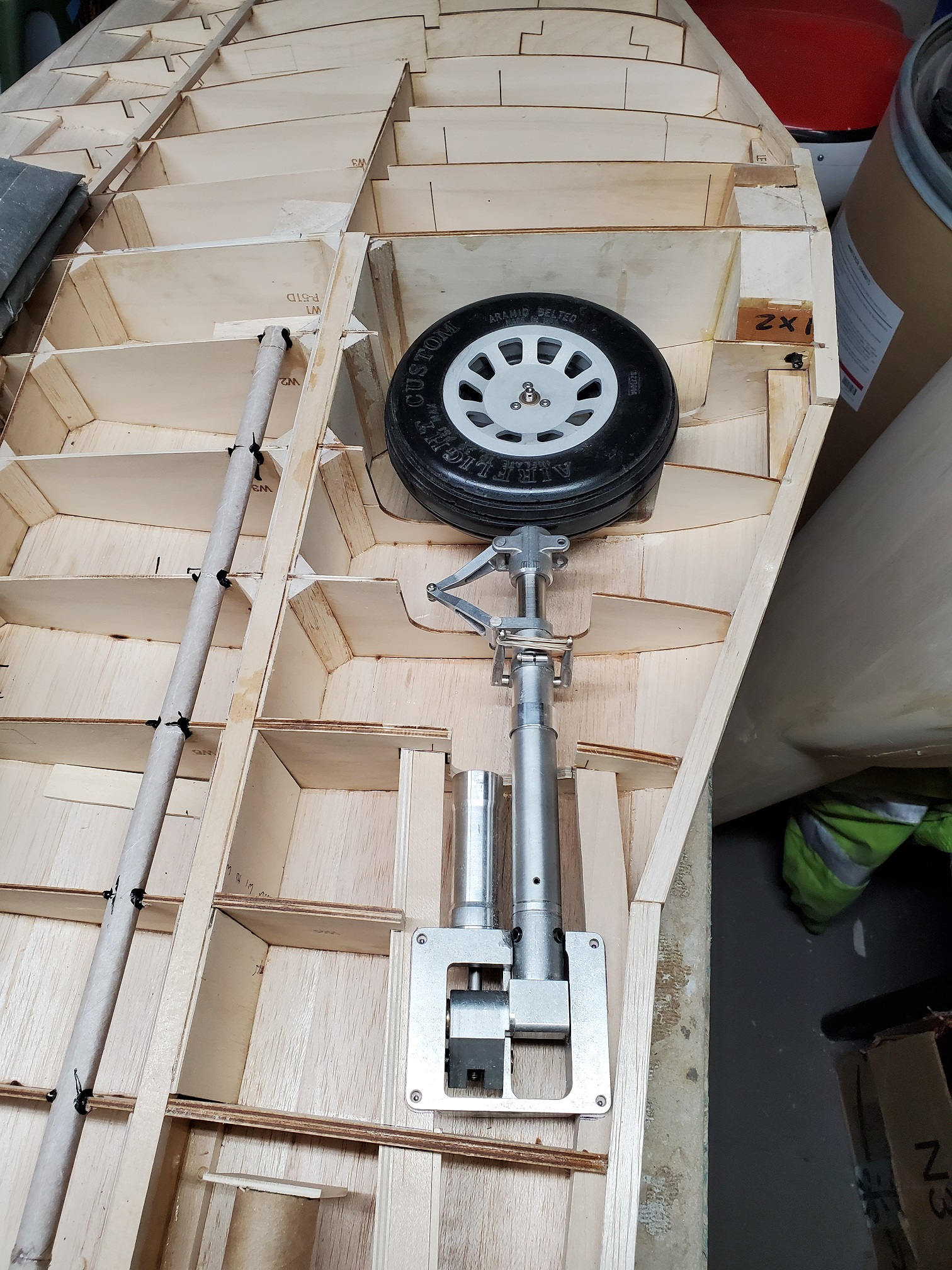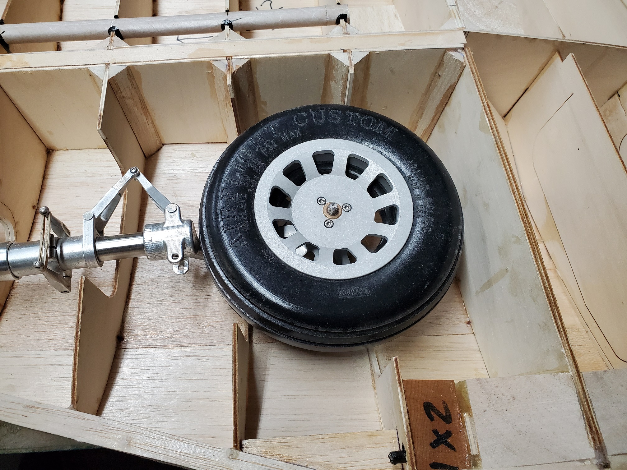 Sometimes life just gets in the way. Hey everyone... I took a little time off to get some fresh air. That didn't work. I ended up spending more time at work than doing anything else. And of course the Big Don Smith Mustang has sat in the corner...(many corners actually) for the last...what's it been? Almost a year? Geez... How harsh can I be? The Giant Scale Top Flite P-40 got glassed and painted and the Roto 85FSI installed. Runs like a finely jeweled watch. I just haven't had the time to take her out for a maiden flight. Hopefully in the spring. In the meantime, I found a minute to look at the Behemoth Stang. Funny how things happen for a reason. In the course of sitting around collecting dust...(literally sanding dust) I noticed the wings had been bumped a couple of times and in as much, a couple of the ribs were cracked. I decided I better get them fixed before they got broke completely off and got lost. Well, that is all it took. I got back on the big P-51 a few weeks ago. And actually have made a little progress. Wiring tubes installed in the left wing, gear rails installed and gear basically set in place. Servo (aileron and flap) attachment build is next. Then to duplicate everything on the right wing and sheet the bottom of the wing. After that? Sanding....lots and lots and lots..... of sanding. Shaping, sanding...filling, sanding...blocking, shaping, sanding....UGH! LOL. I am hoping to get to the glassing sometime next month. But until then.....here's a little catch up for all of you.