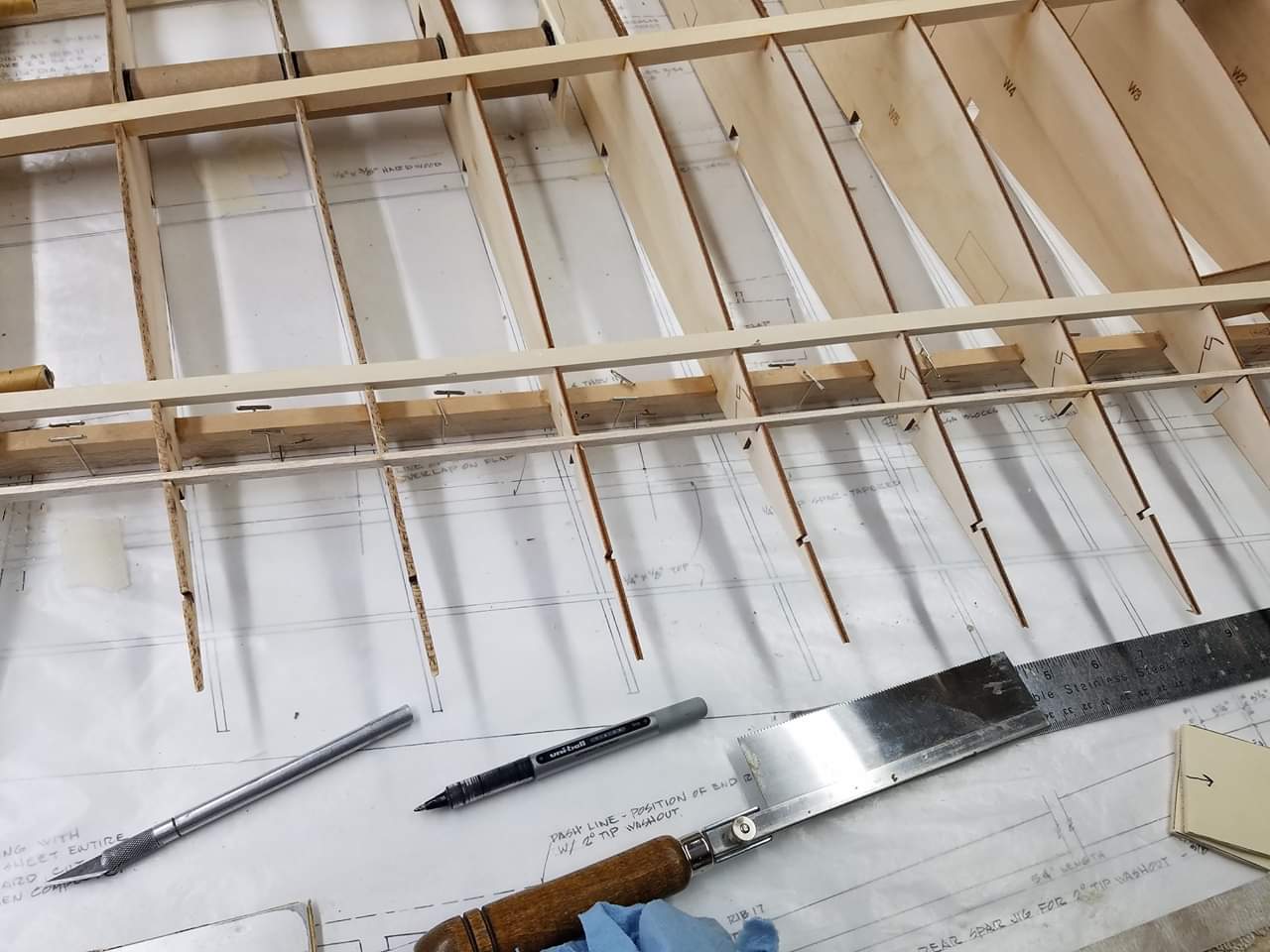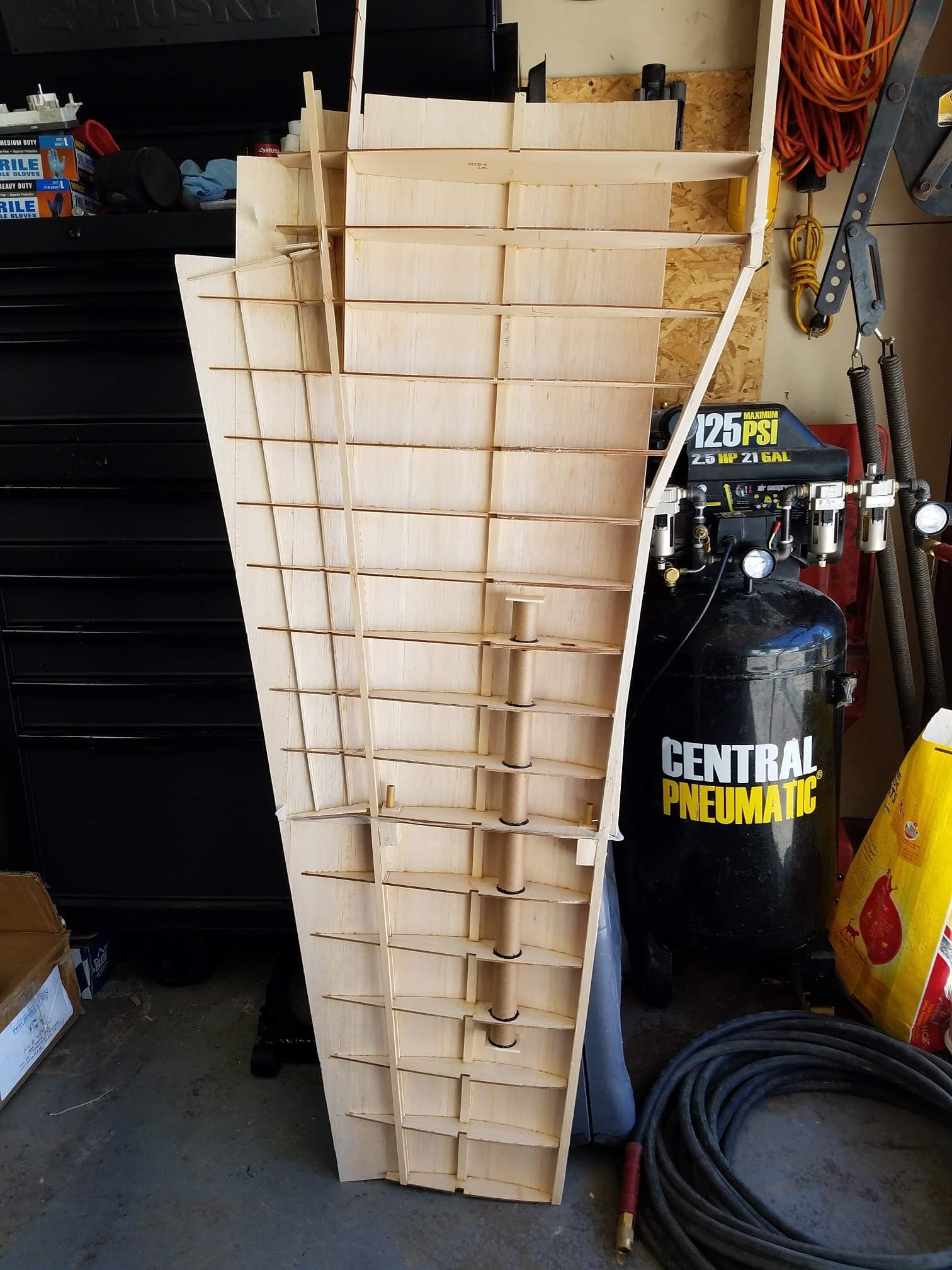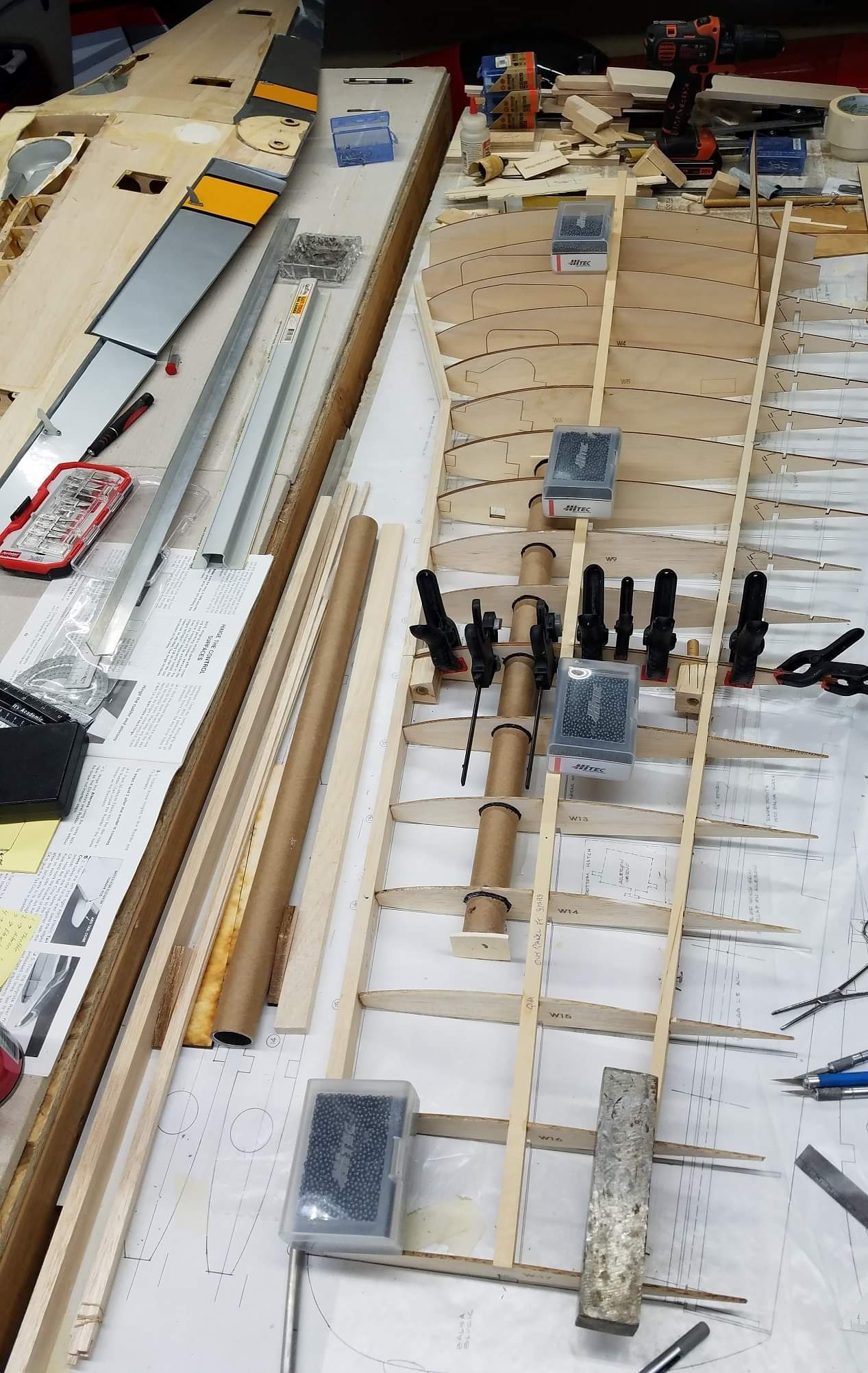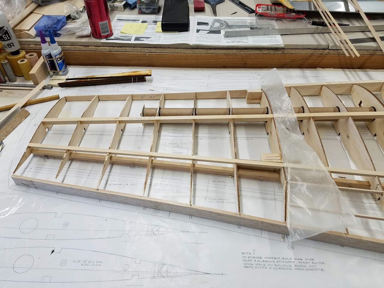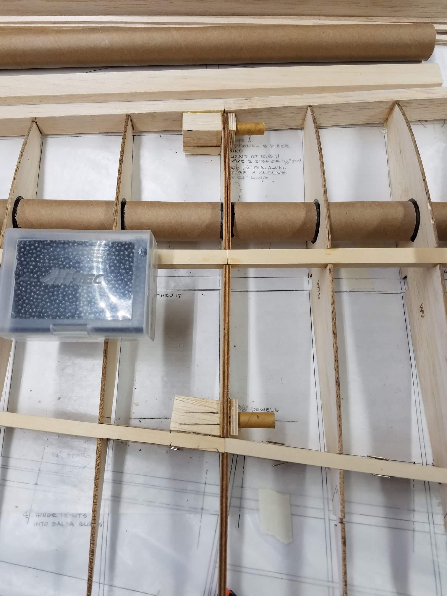 Sometimes life just gets in the way. Hey everyone... I took a little time off to get some fresh air. That didn't work. I ended up spending more time at work than doing anything else. And of course the Big Don Smith Mustang has sat in the corner...(many corners actually) for the last...what's it been? Almost a year? Geez... How harsh can I be? The Giant Scale Top Flite P-40 got glassed and painted and the Roto 85FSI installed. Runs like a finely jeweled watch. I just haven't had the time to take her out for a maiden flight. Hopefully in the spring. In the meantime, I found a minute to look at the Behemoth Stang. Funny how things happen for a reason. In the course of sitting around collecting dust...(literally sanding dust) I noticed the wings had been bumped a couple of times and in as much, a couple of the ribs were cracked. I decided I better get them fixed before they got broke completely off and got lost. Well, that is all it took. I got back on the big P-51 a few weeks ago. And actually have made a little progress. Wiring tubes installed in the left wing, gear rails installed and gear basically set in place. Servo (aileron and flap) attachment build is next. Then to duplicate everything on the right wing and sheet the bottom of the wing. After that? Sanding....lots and lots and lots..... of sanding. Shaping, sanding...filling, sanding...blocking, shaping, sanding....UGH! LOL. I am hoping to get to the glassing sometime next month. But until then.....here's a little catch up for all of you.