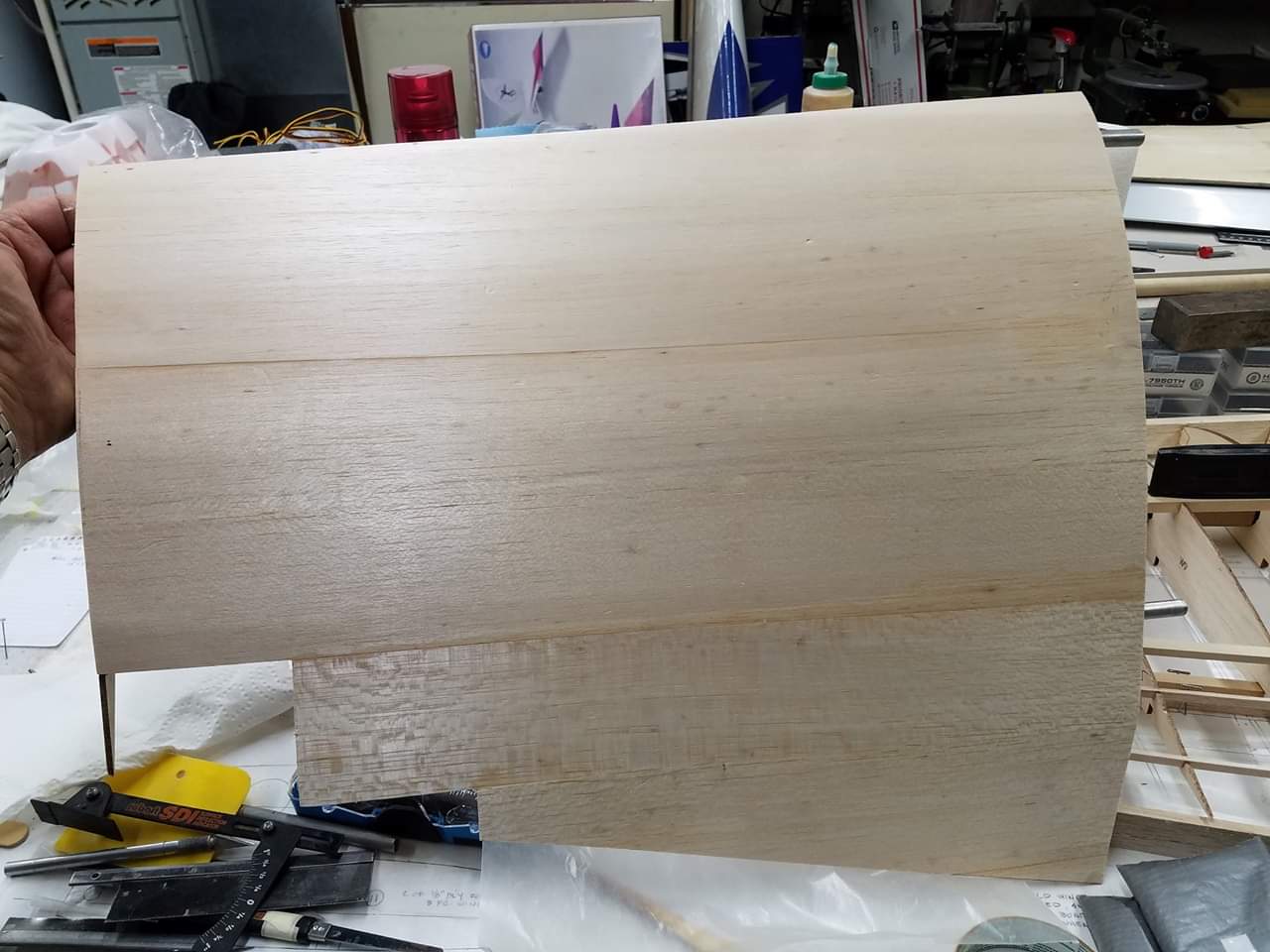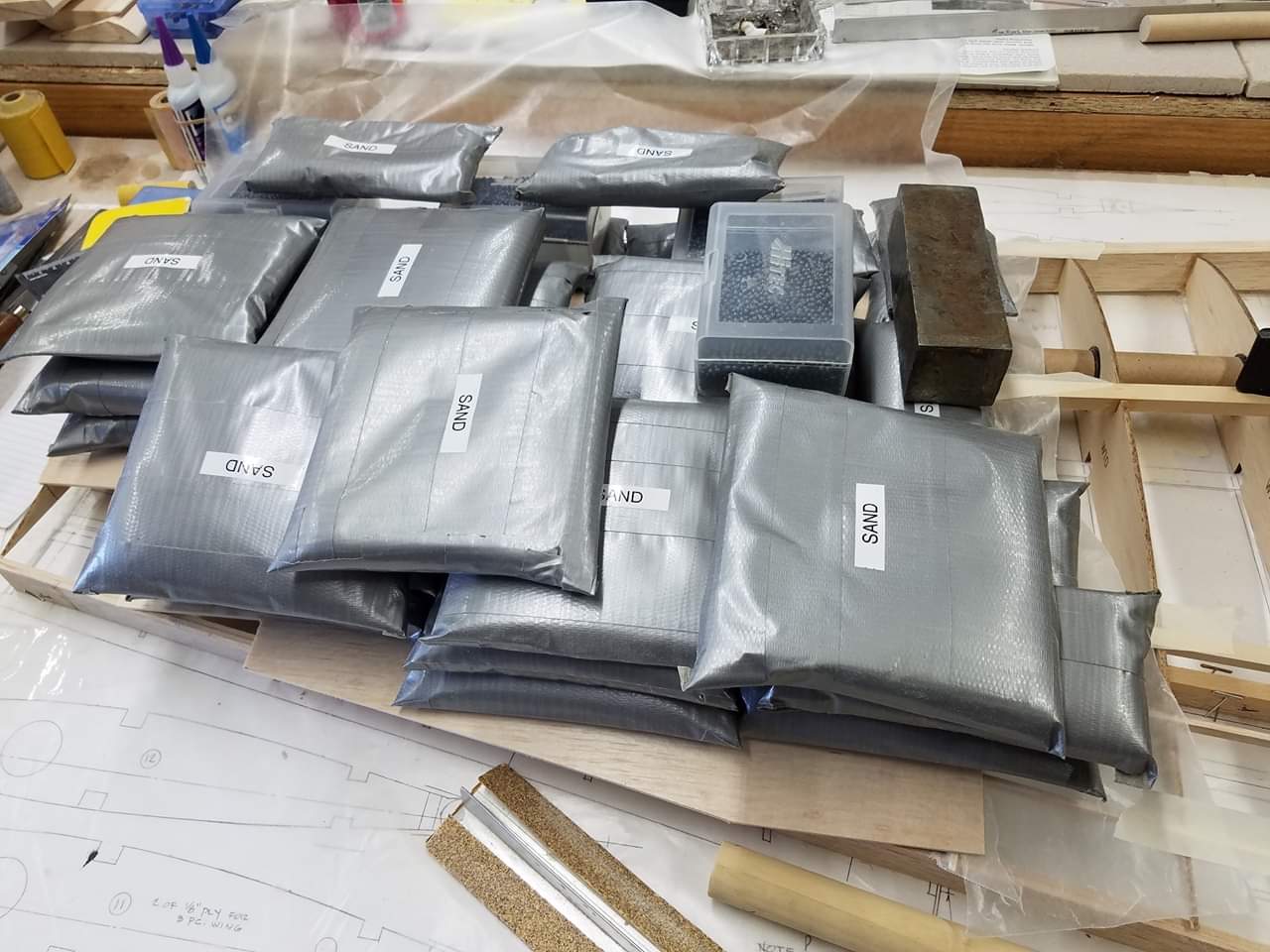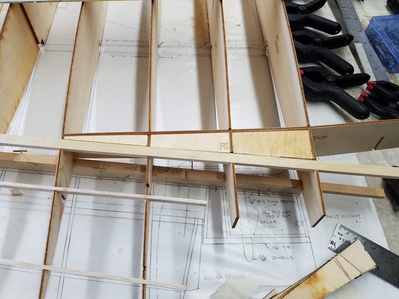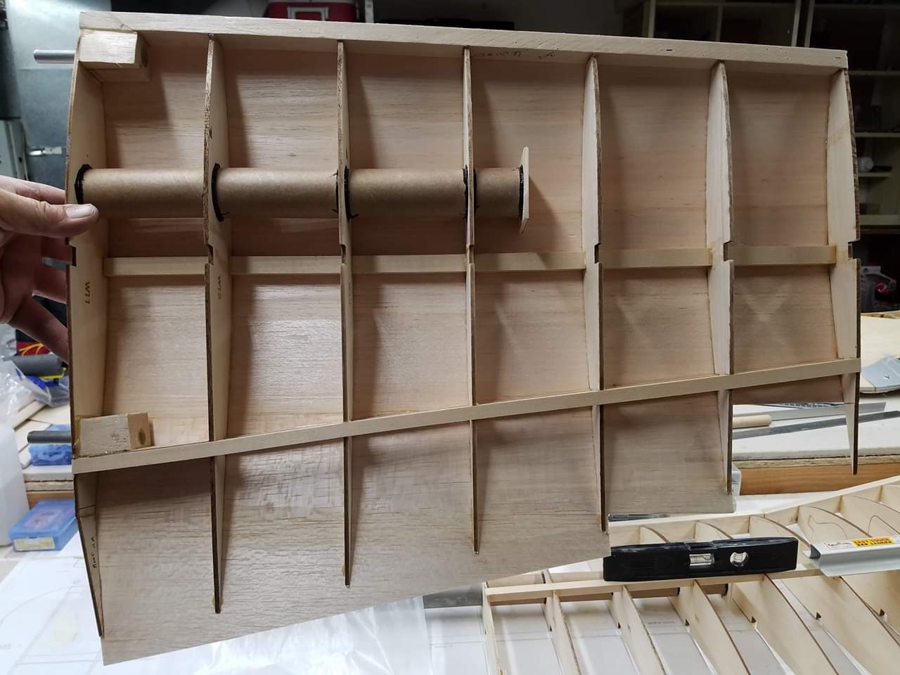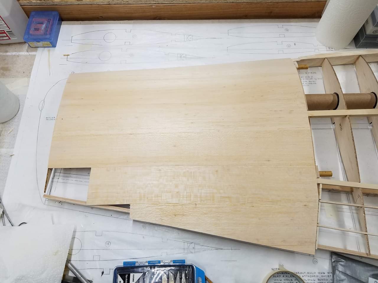 Sometimes life just gets in the way. Hey everyone... I took a little time off to get some fresh air. That didn't work. I ended up spending more time at work than doing anything else. And of course the Big Don Smith Mustang has sat in the corner...(many corners actually) for the last...what's it been? Almost a year? Geez... How harsh can I be? The Giant Scale Top Flite P-40 got glassed and painted and the Roto 85FSI installed. Runs like a finely jeweled watch. I just haven't had the time to take her out for a maiden flight. Hopefully in the spring. In the meantime, I found a minute to look at the Behemoth Stang. Funny how things happen for a reason. In the course of sitting around collecting dust...(literally sanding dust) I noticed the wings had been bumped a couple of times and in as much, a couple of the ribs were cracked. I decided I better get them fixed before they got broke completely off and got lost. Well, that is all it took. I got back on the big P-51 a few weeks ago. And actually have made a little progress. Wiring tubes installed in the left wing, gear rails installed and gear basically set in place. Servo (aileron and flap) attachment build is next. Then to duplicate everything on the right wing and sheet the bottom of the wing. After that? Sanding....lots and lots and lots..... of sanding. Shaping, sanding...filling, sanding...blocking, shaping, sanding....UGH! LOL. I am hoping to get to the glassing sometime next month. But until then.....here's a little catch up for all of you.