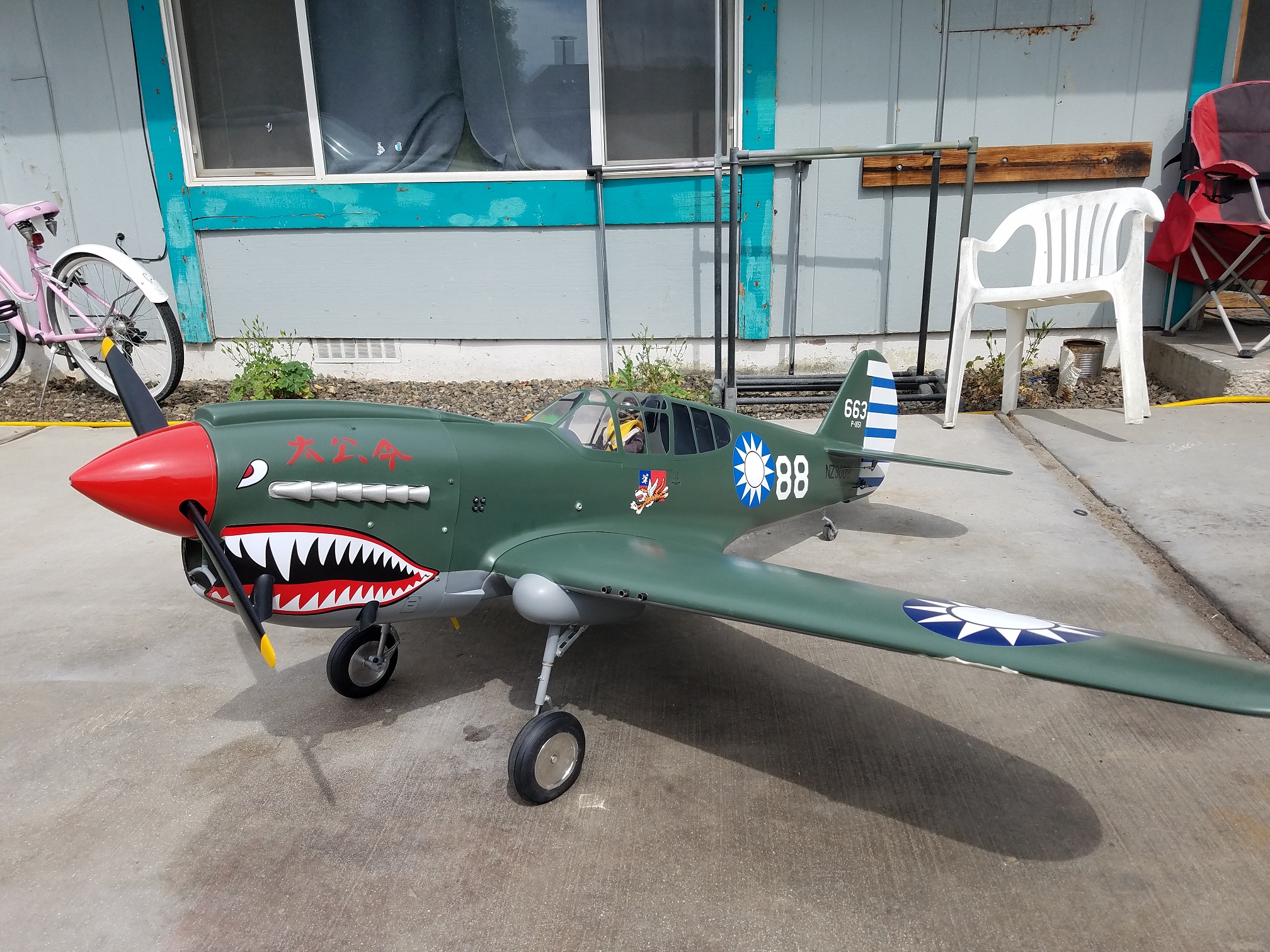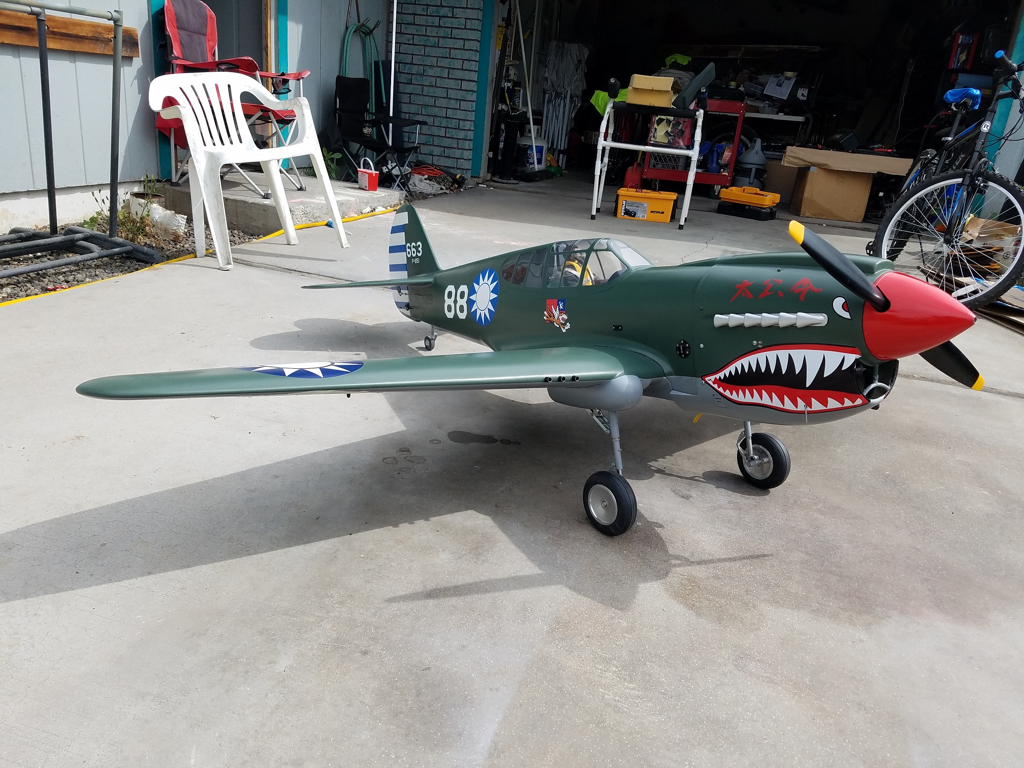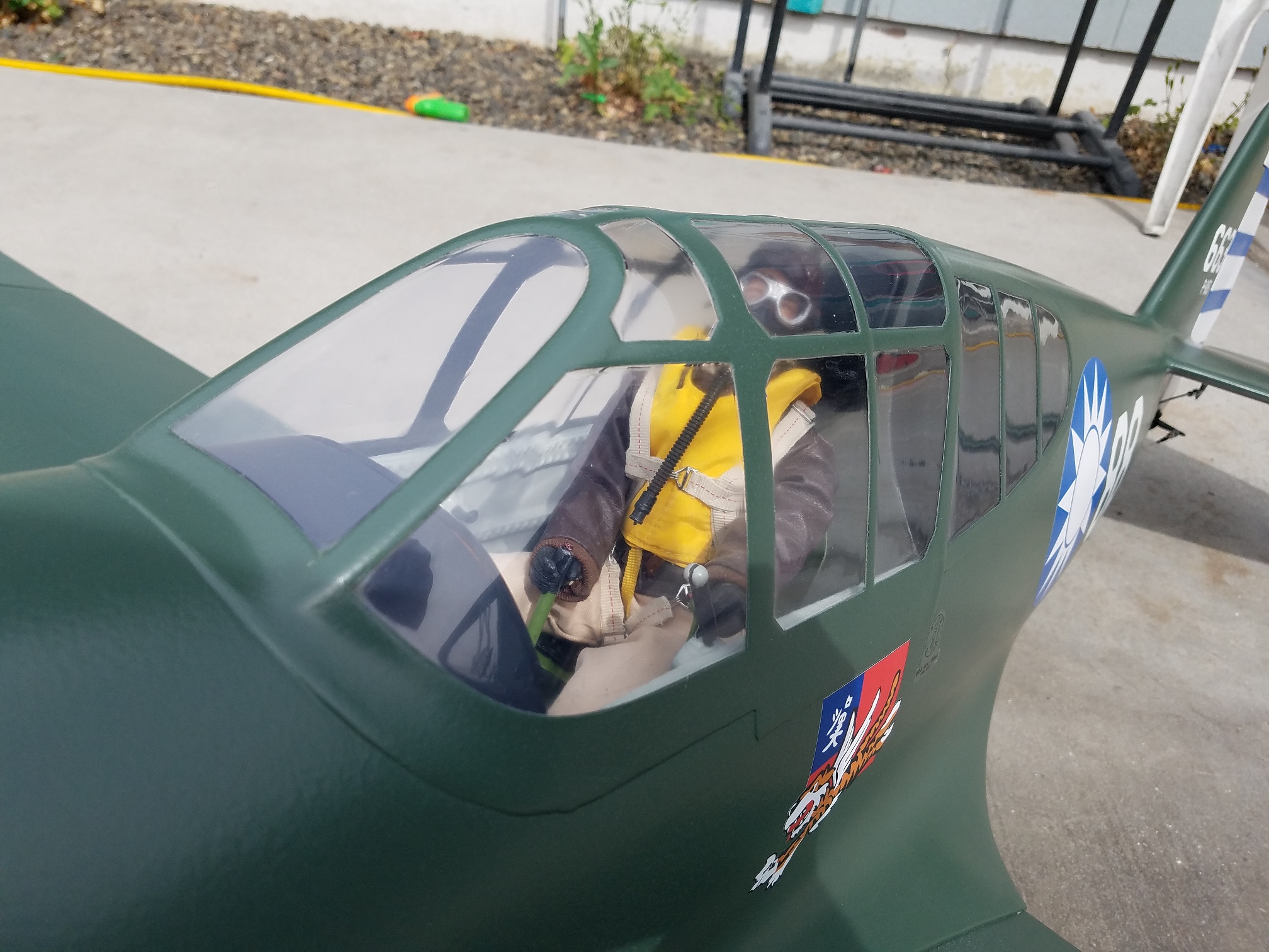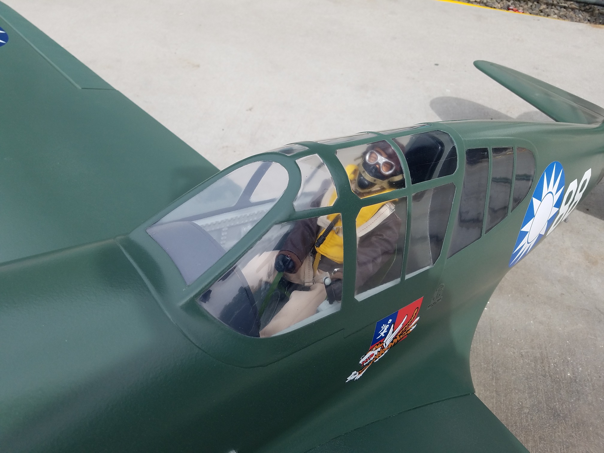 I really thought I had some photos of the gear on the rails with the inner and outer doors layed out for alignment. Guess I will have to shoot a couple tomorrow. In the meantime, a few photos of the glassed and painted P-40.