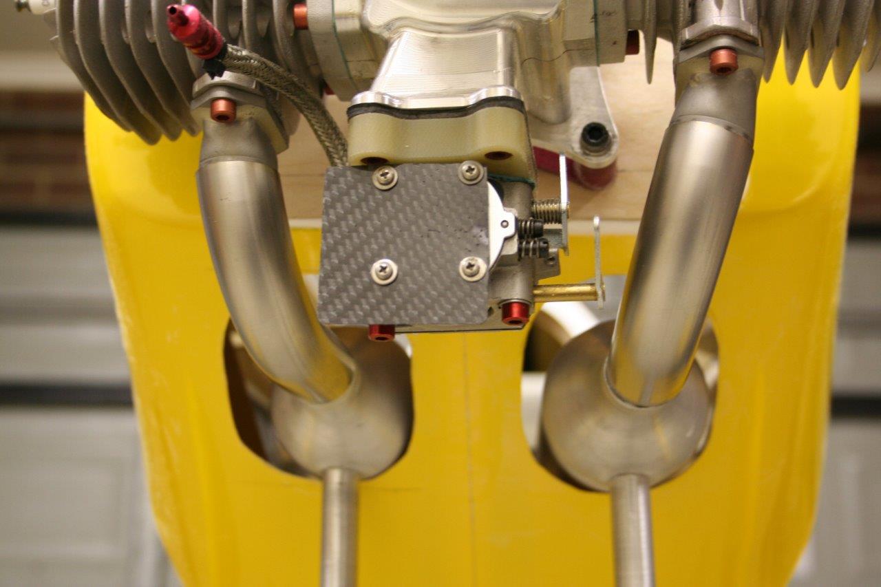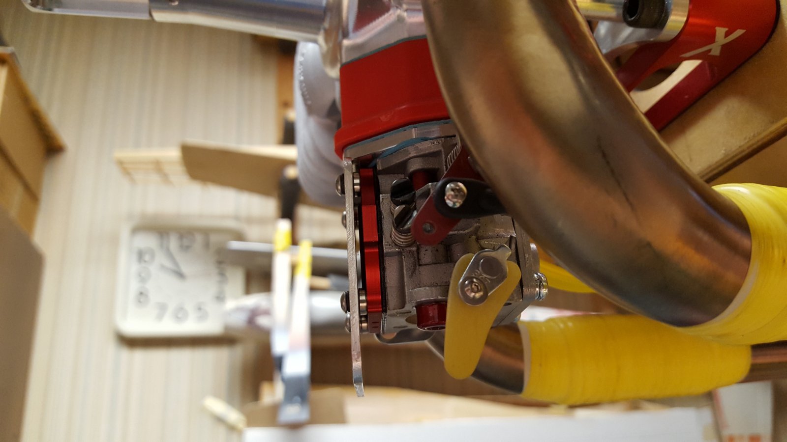 I also have a nasty surge when flying level and steady half throttle. It's not a burble, but a surge like your moving the throttle that I need to deal with. It could be several things, starting with tuning. Other causes could be air flow/air pressure at the carb, or header length, and a few more things. It's more than likely tuning, but there is a big hole in the cowl right in front of the carb so it gets a lot of air blown right on it. The common fix for the air pressure problem is to put a fitting in the diaphragm plate and run a hole into the fuselage. Another fix I've seen is to add a flat plate in front of the diaphragm plate to keep the air from blowing right on it. My DA120 has the red aluminum diaphragm cover with the holes in the top and bottom which is supposed to help stop that problem. But as you can see, this carb gets a pretty big air blast.