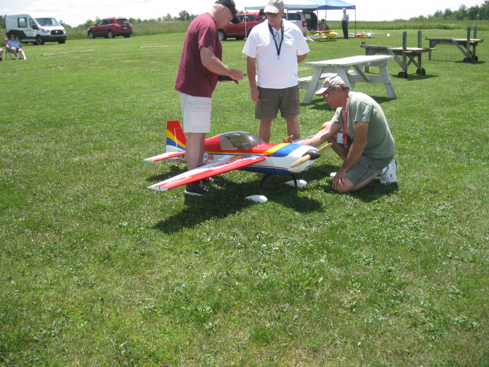 Had the 5th annual Indiana Flyers Club Summer Solstice fun fly today, great weather, first day of sun in the last 10. Here are a few photos, the turn out was down this year 19 fliers. And a photo of yours truly with the Glasair.