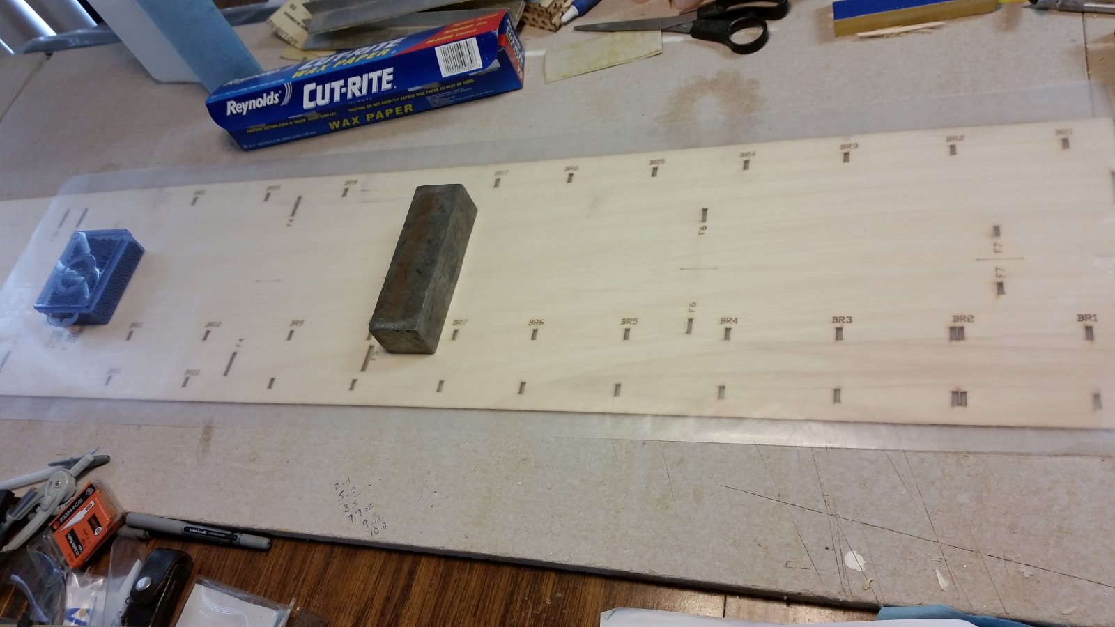 I did get started on the bottom right wing today. After a few drawbacks and a few phone calls, I finally got it figured out. There is one piece, (BR1B) that is inaccurately cut for the location it goes in. It turns out it is a doubler for the BR1 rib. So it had to be modified to fit correctly. Also, BR2E and BR8E will not sit correctly in the jig as there is no cut out in the jig for the forward support leg. Not a big deal. I simply shortened the front leg to allow it to rest "on top" of the jig. It seemed to work out pretty well, because it all came into alignment no problem.