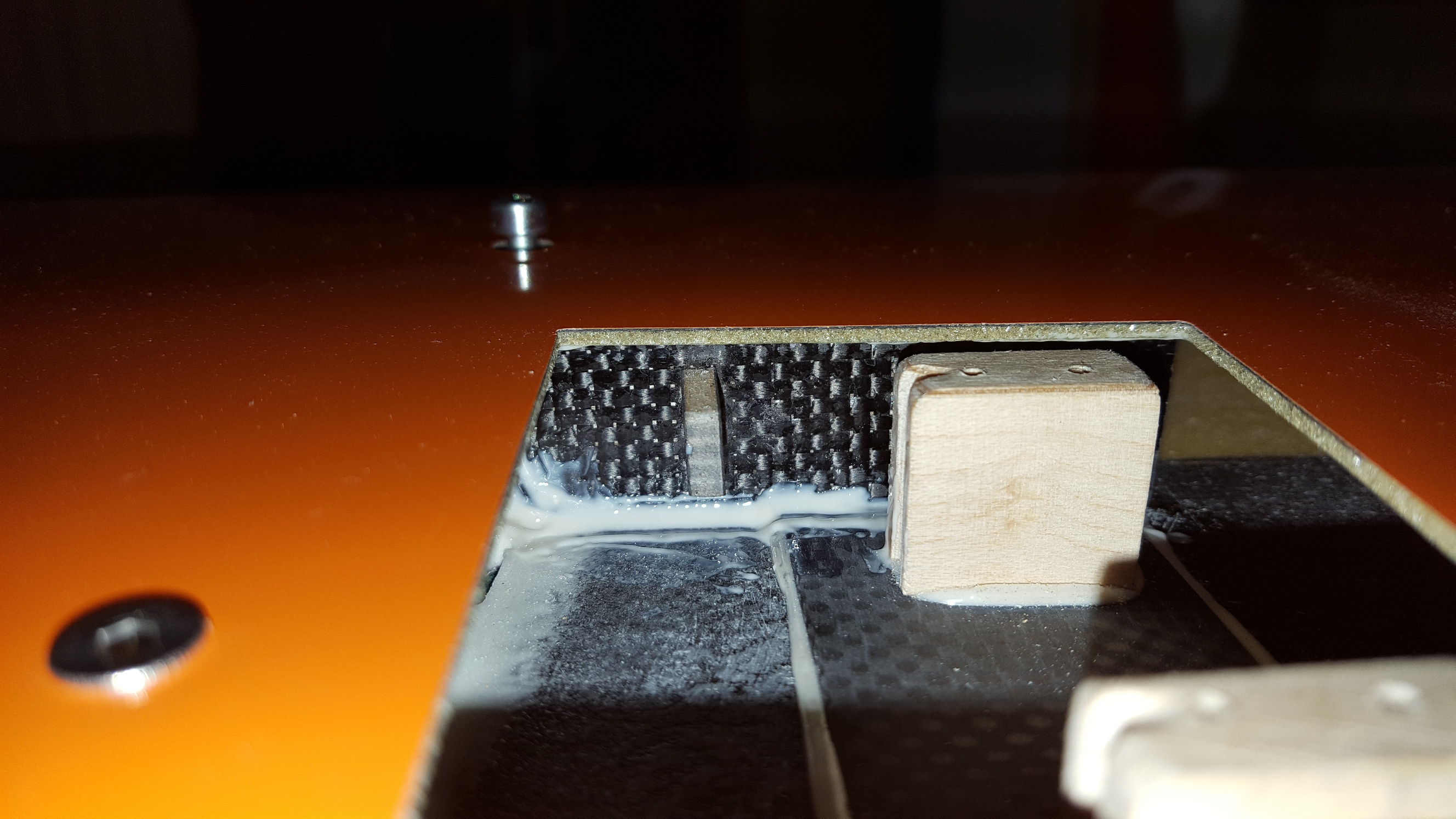 To much worth showing in the last week, I did get the aileron servos test fitted in the top wing now that the mounts are installed. Since then I've just been repeating the process on the bottom wing of fitting and installing horns, trimming and drilling the maple blocks, cutting some carbon fiber for the mount bases, and gluing things together. Tonight I'll glue the mounts into the lower wing.