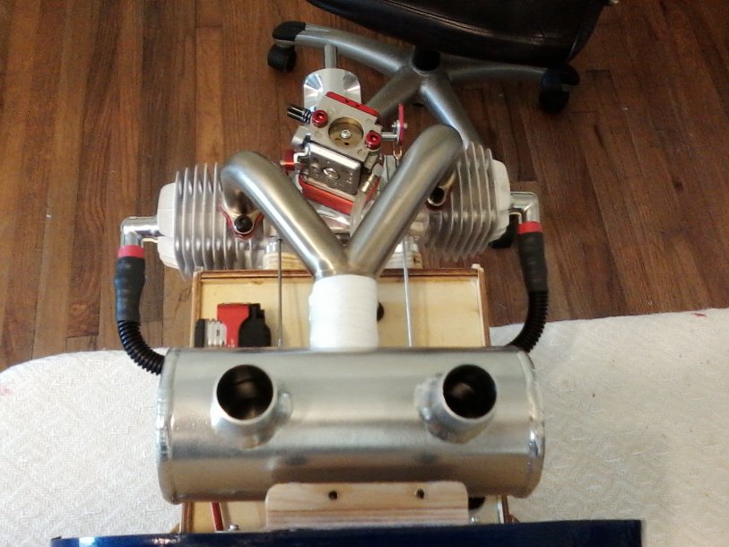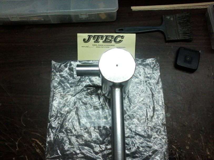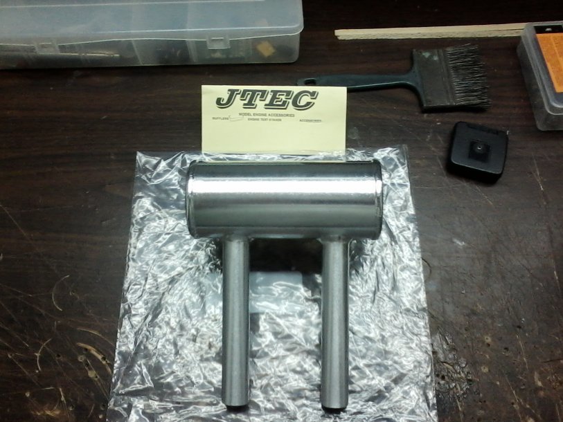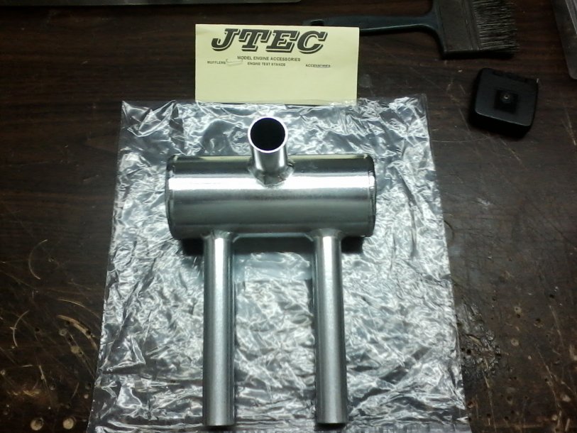 Just got word from Kevin at Jtec and he is doing a final cleaning of the muffler. He tapped the can ends to 8-32 for mounting bolts for me. My plan is once all connected to the header I will make some support straps that will get secured to the can ends and motor box sides. Being that the bottom of the can will be somewhat close to the cowl ring I will also measure and cut the down stacks and re-install with an appropriate coupler with the cowl in place. Should be in my fat fingers some time this week and maybe some testing done this weekend.