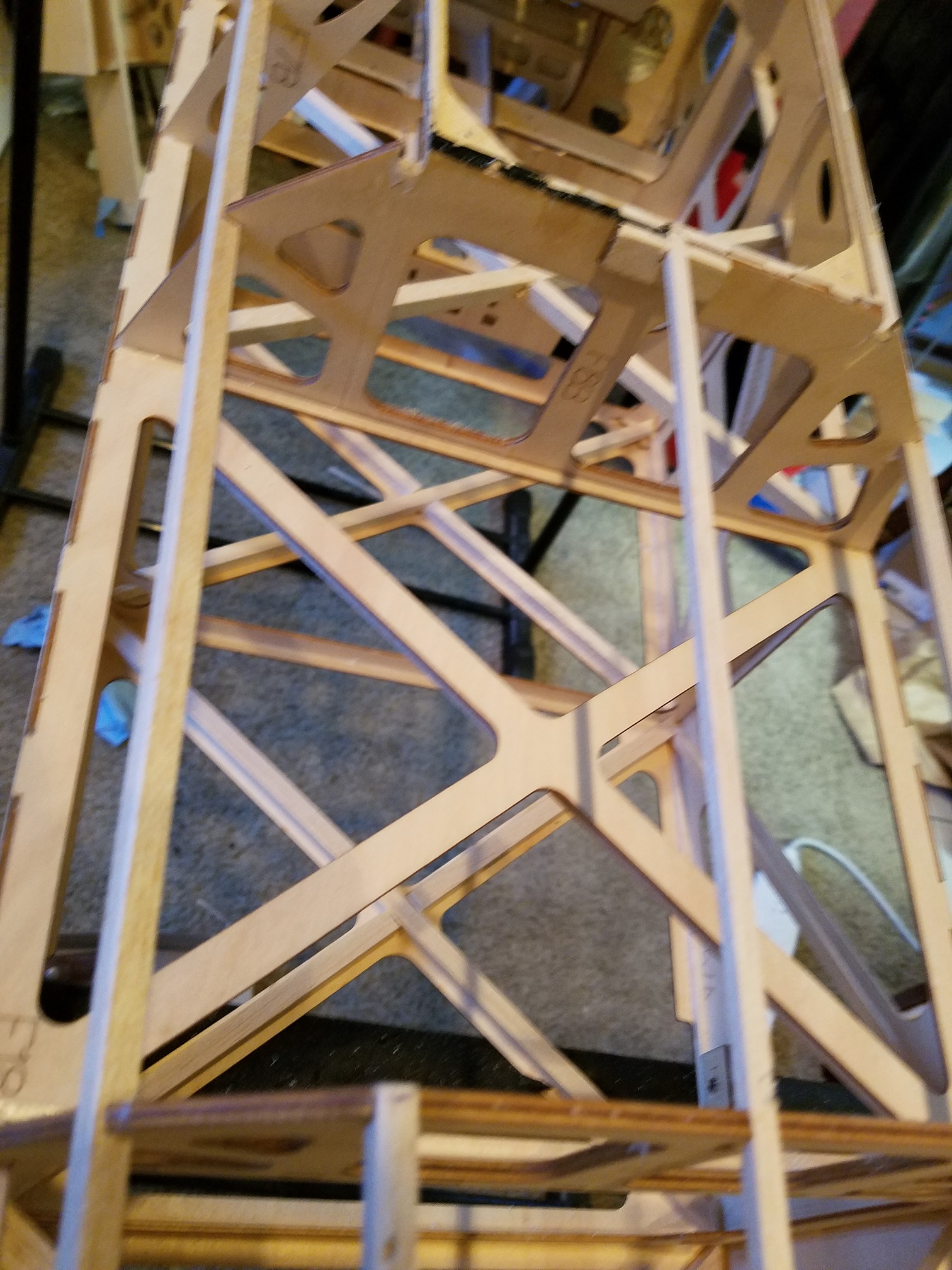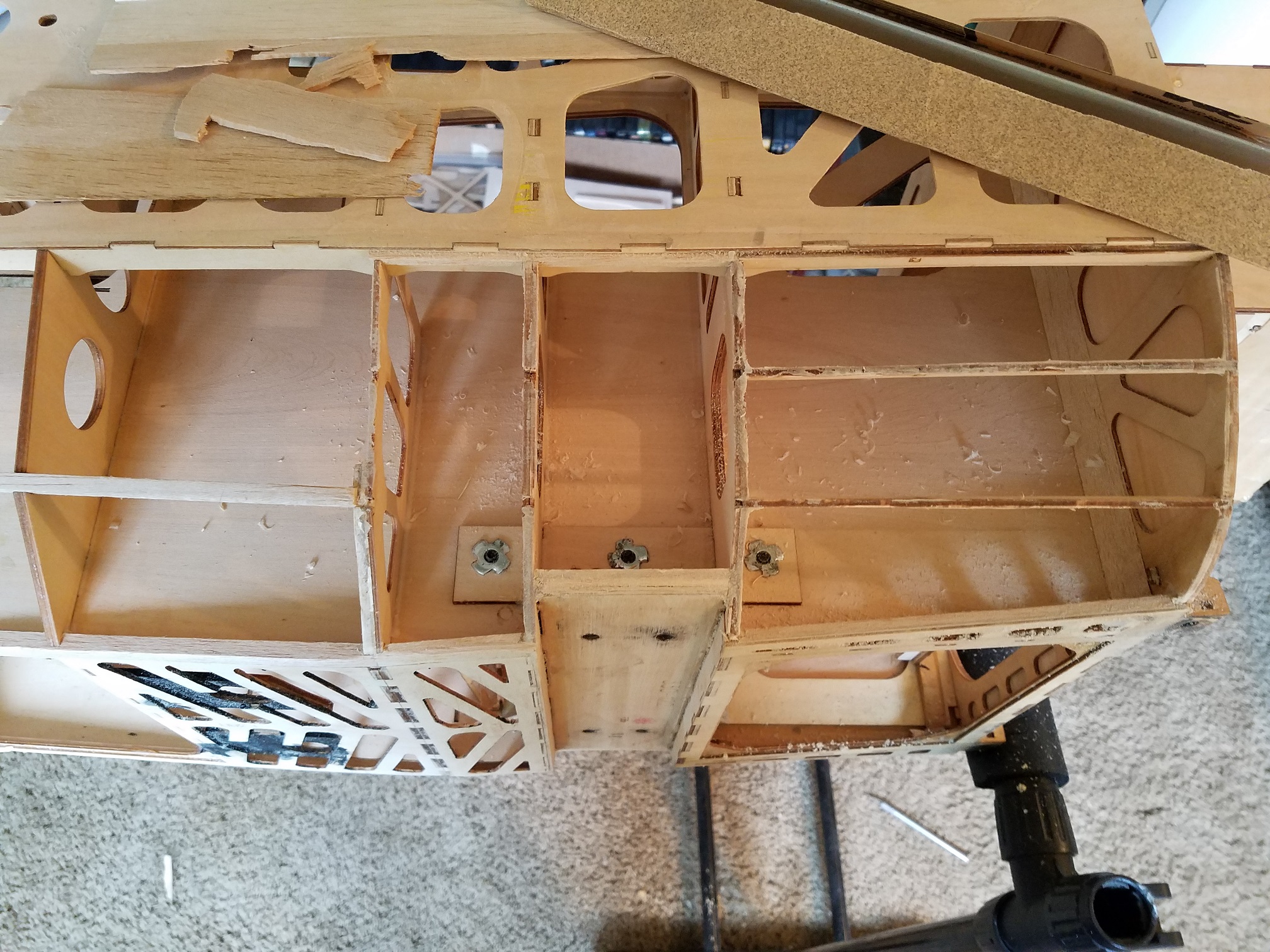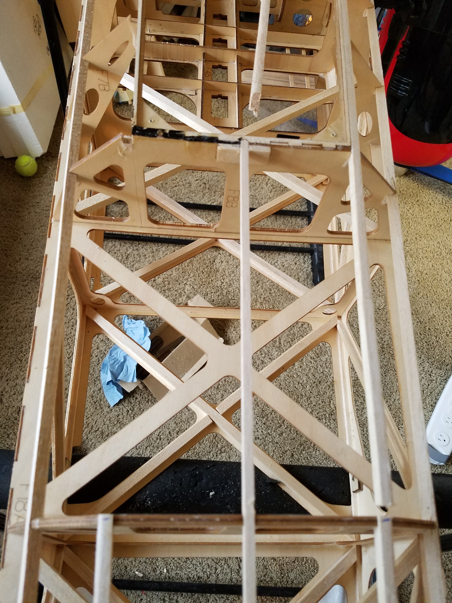 My plan is to get the bad sections of forward fuse sheeting and the fin sheeting replaced/repaired in the next couple of days. Then go over the fuse one more time before I do the final clean up before the covering. Then on to stripping the wings/ailerons, stabs/elevators and rudder. One other thing I will need to address is the firewall. This plane was set up for devoted IMAC flying. Hence, the thrust angles on the firewall are completely wrong for me and will have to be changed. Right now it has way too much down thrust and way too much right thrust. I am going to remove the firewall, reset the angles to "0" down thrust and 1.5-2.0 degrees right thrust.