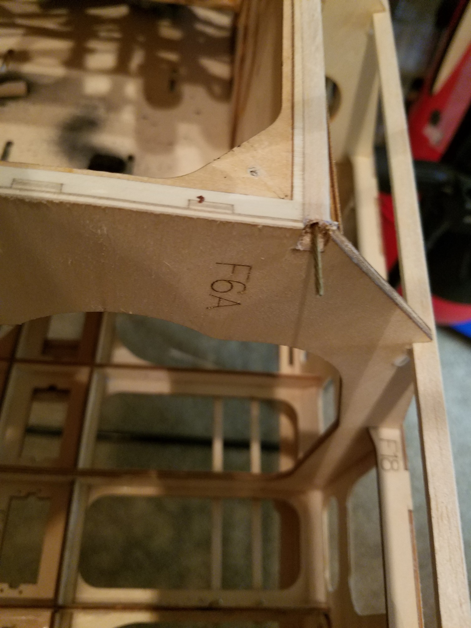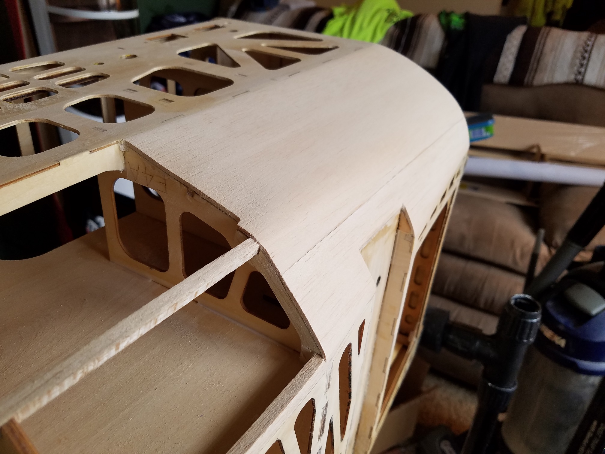 Rain day from work today. So you all know what that means. I made progress on the 330 fuse today. I actually found one more bottom/rear center stringer that the glue joint had popped loose on. Also, one other area of concern I wanted to address. So, lets get with it right? I started with the right lower front fuse sheeting first. Carefully sliding my hobby knife between the sheeting and fuse side. Slowly cut it away and removed it then I could get to what needed to be done. I am glad I removed it (sheeting) rather than to just attempt a "glue" fix. I discovered a tiny balsa stringer that was fractured and figured I would just replace them both before re-sheeting it. Once the stringers were replaced, I made up the required size of sheets to replace the old cracked ones, then set about to gluing, sanding and shaping them. Once the right side was done, I decided to get that silly cracked fin sheeting repaired. I cut out the required size to remove the cracked sheeting, cut a replacement piece then glued it in, sanded it and done. Why....???? Why oh why do some people have to "pinch" their rides so hard? LOL. Next up was to repair the left lower fuse side sheeting. At first I thought I would be able to get away with just simply "weeping" CA into the cracked joint. But after looking at it and pushing on the sheeting slightly, I could tell it would not be long before it was in need of replacement. Might just as well do the full repair now like the right side and get it out of the way. Which I did. After that, I went over the fuse with a fine toothed comb. Not leaving anything to chance or half-assed. If it had so much as even a scratch, I took care of it. The 330 fuse is now pretty much done except to do one more 400 grit final sand and wipe it off for covering.