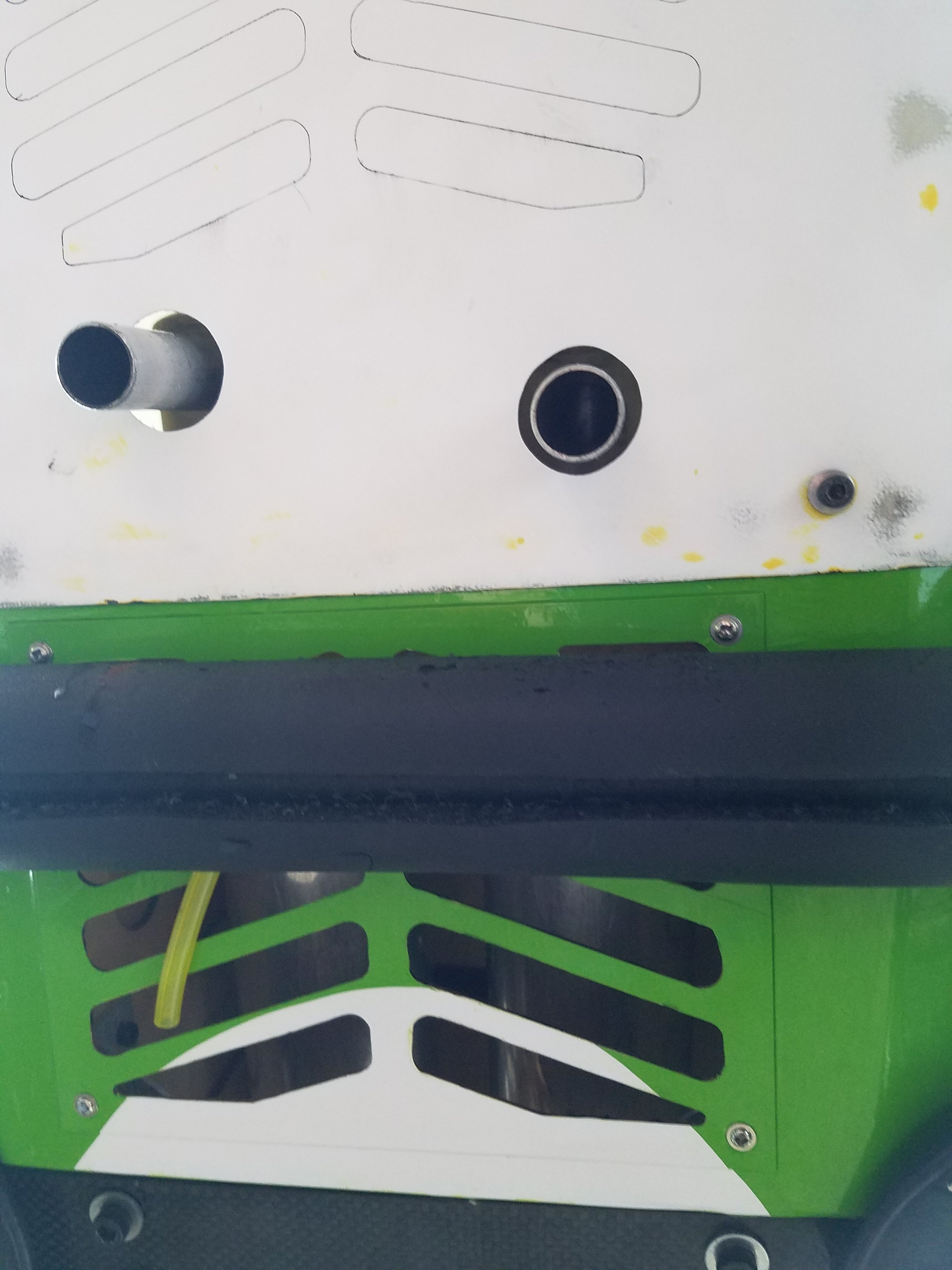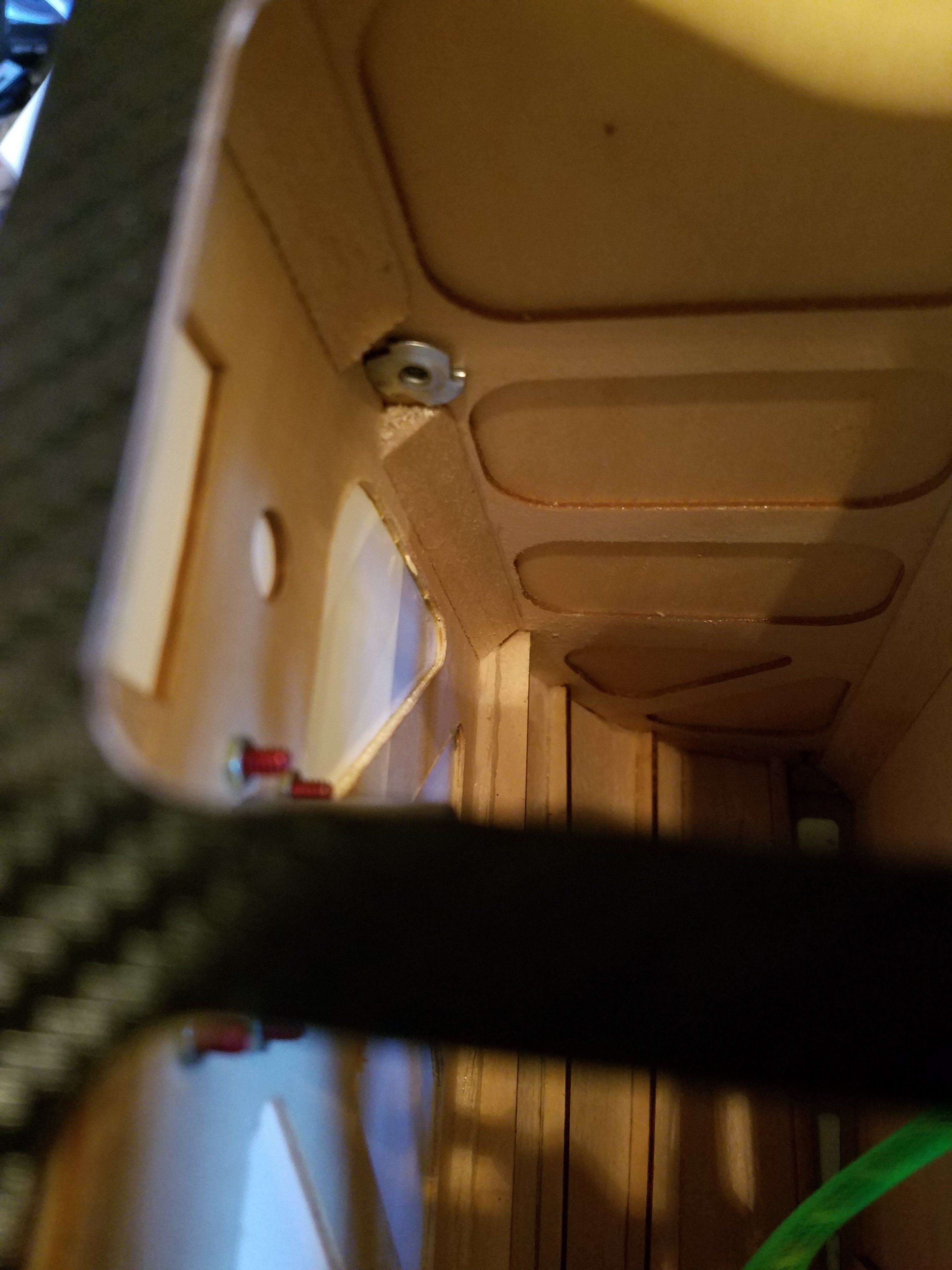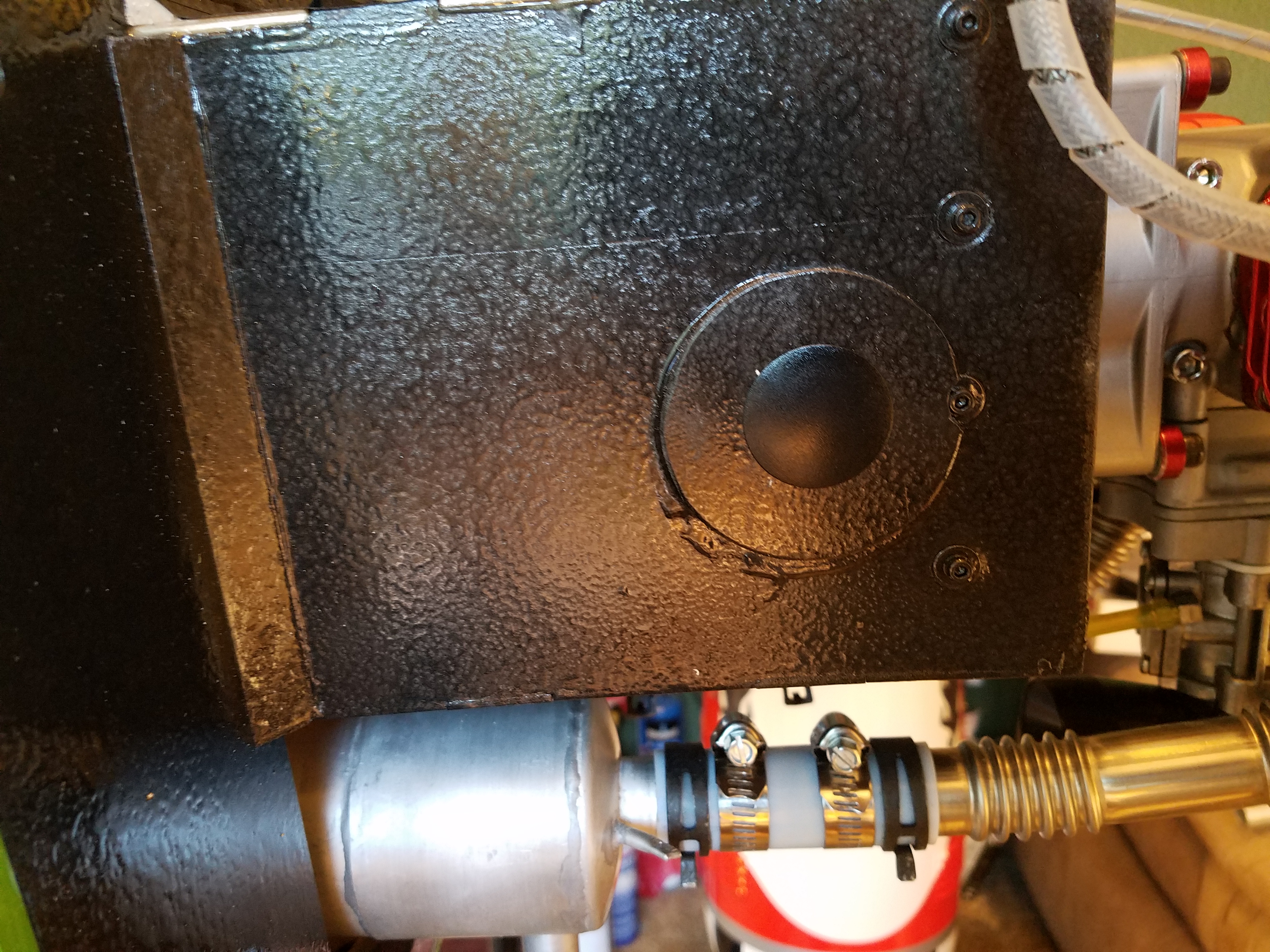 I made really good progress tonight. Located the correct size plugs for the side of the motor box and secured the Airman wheels with a retaining bolt. I've heard the White Rose axles with the "C" clips have a tendency to self launch when you least expect it. I've heard of many guys losing their high dollar aluminum wheels. Not this boy. I put the clips on then double secure the wheels with a bolt and oversize washer. I also drilled support bolt holes in the upper part of the now lower cowl half. Normally split coals already have them installed. Being an original non split cowl, I needed to install bolts and blind nuts. I also got the vent holes in the bottom of the cowl. Extra air to breath never hurt no red head. Plus. I now have the holes drilled in the cowl halves to keep them joined. I located some really cool counter sunk nylon washers for the Allen head bolts to sit in. I don't like the idea of bolts gouging deep into fresh paint.
