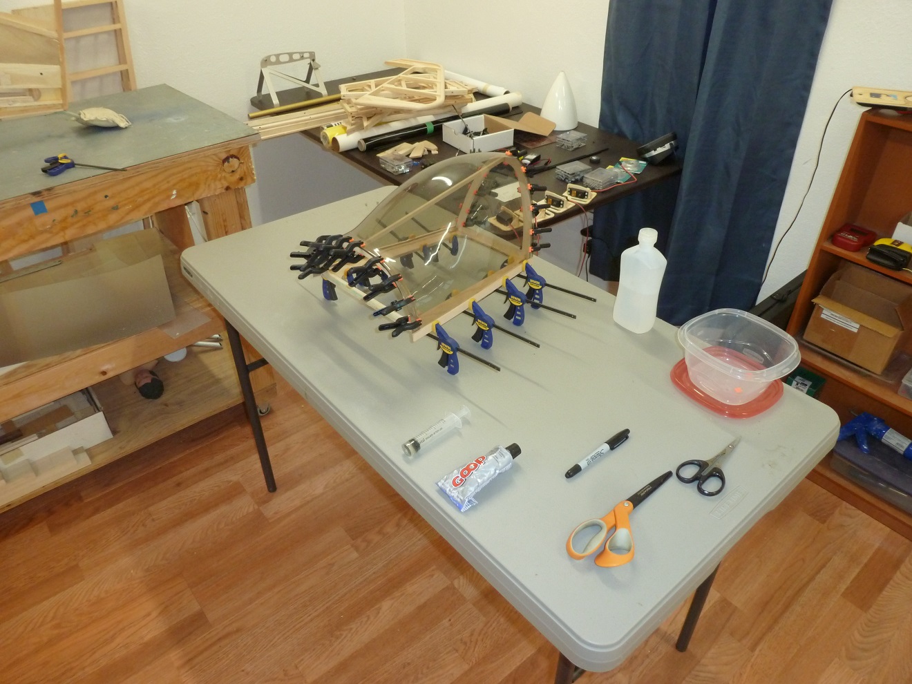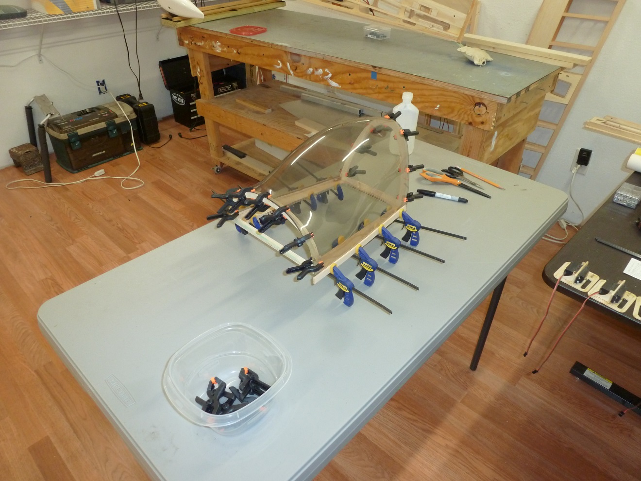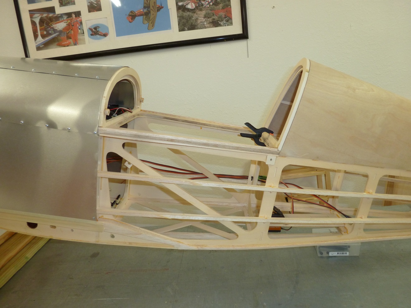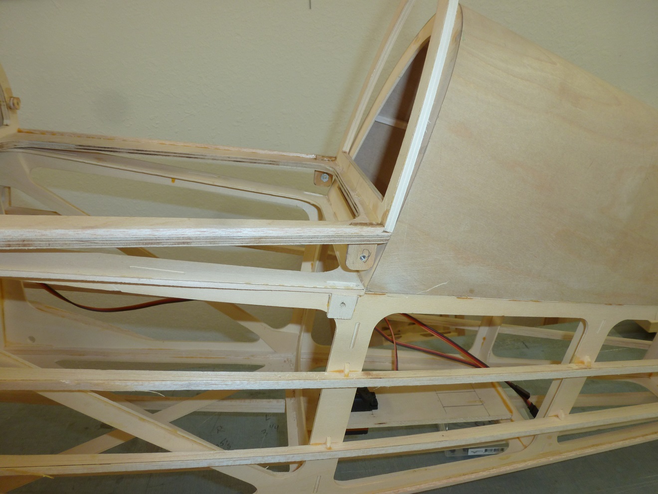 The hatch has had the front pins and the rear bolt through's installed. It fits well but had to make a tiny bit of shim on one side to match the fuse. The canopy has been trimmed close and a trial fitting done, it fits real good, I won't trim it flush until it is glued on. Now I just have to figure how I am going to add the adhesive around the perimeter of the frame and put the canopy in place without getting adhesive all over everything. Also will have to go back and recut the top three aluminum panels as they are a bit short, the canopy should slide under just a bit instead of fitting flush.