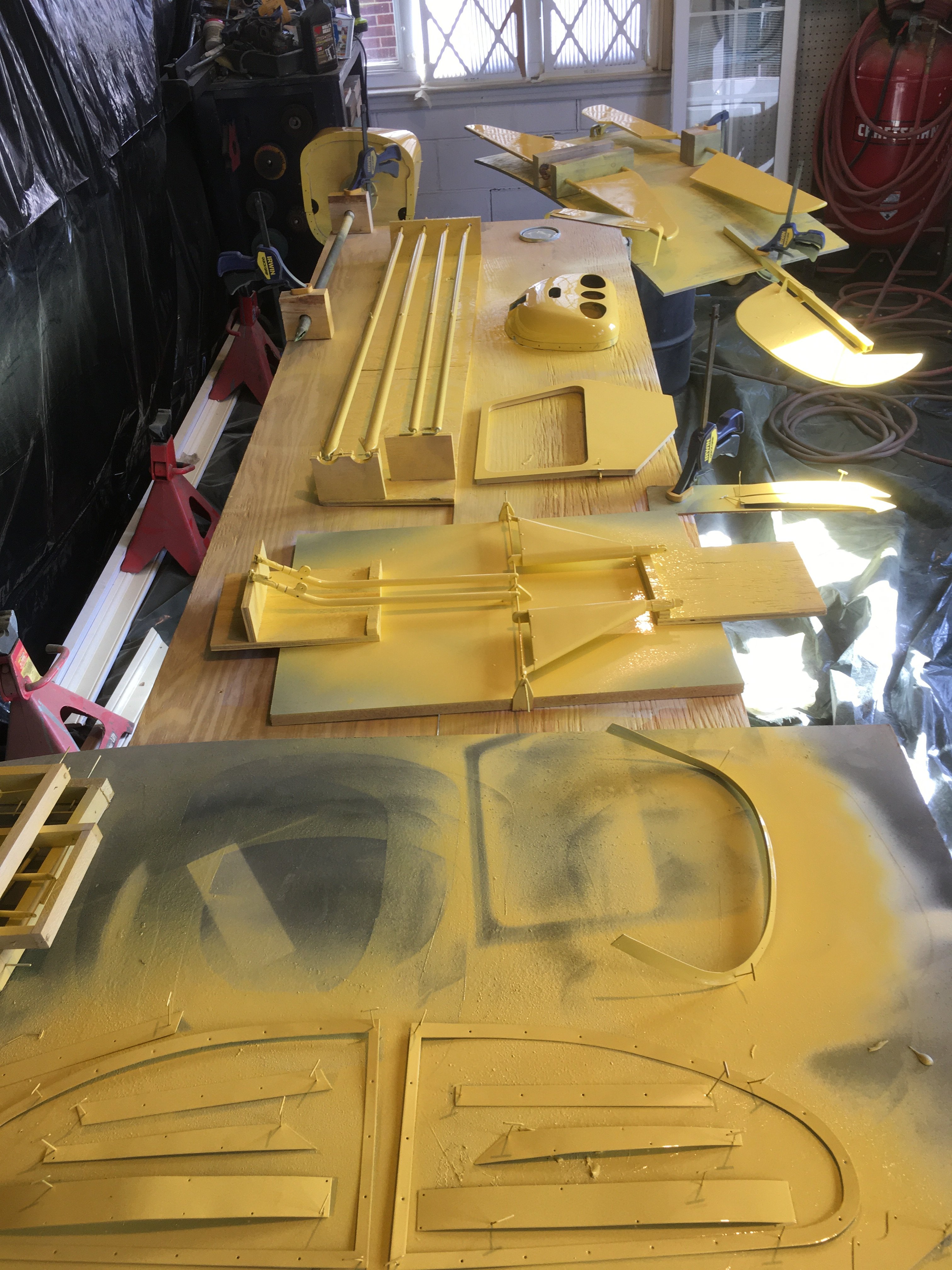 Was a good day today, got an early start, primed the fabric parts and cowl. Let primer cure 4 hours and put the color to all the parts. Cold weather rest of week so I'm happy I got the paint work done today. Snow forecast on Thursday!