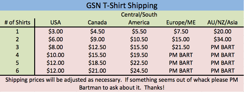 T-shirts are here, red, high-quality cotton shirts with the GiantScaleNews.com logo front and back!