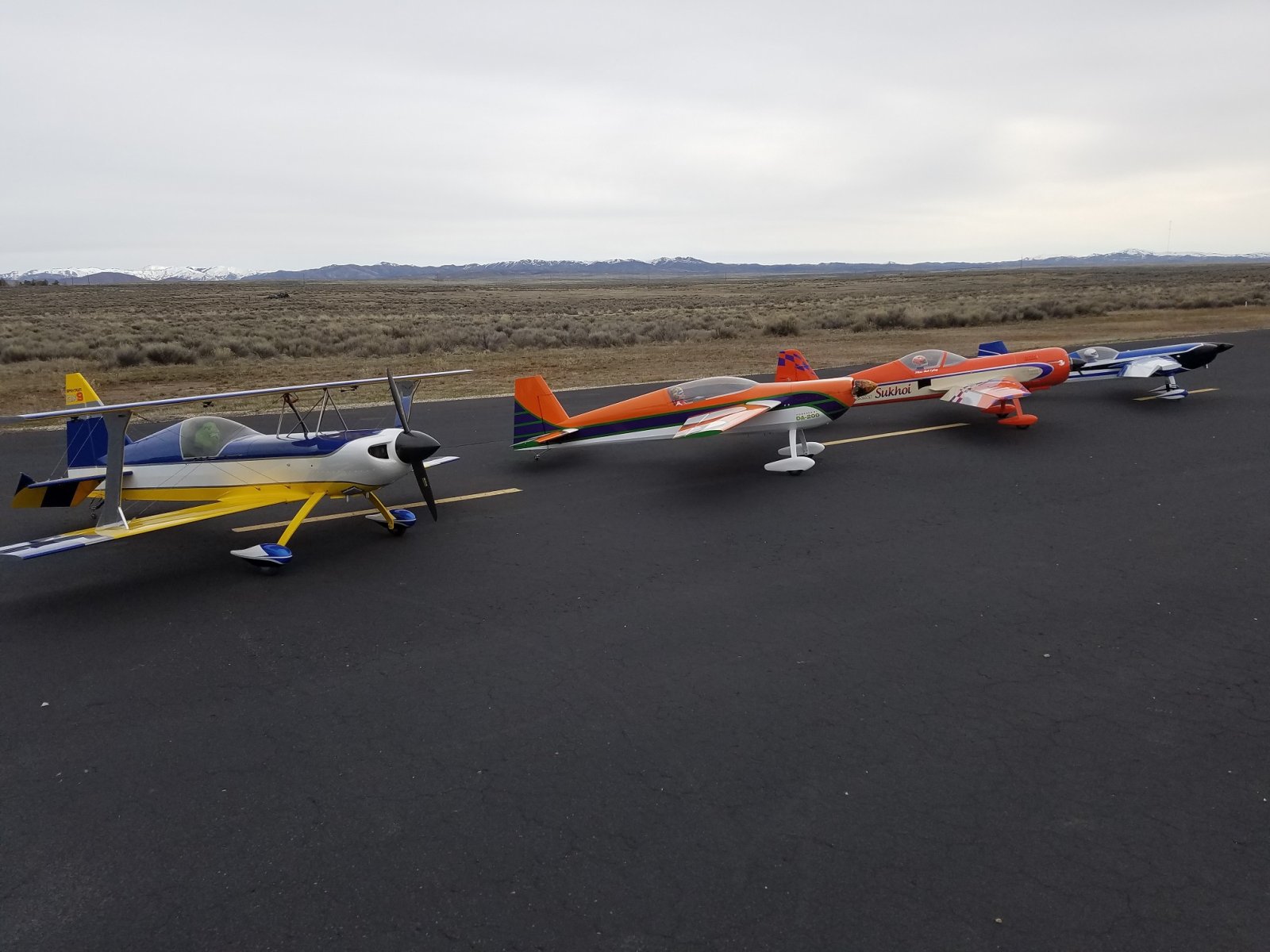 The weather shaped up from chilly and wet to somewhat decent today so my son and I decided to hit the field for a few flights. The breeze was pretty stiff when we got there, but hey a little wind hurt no one right? Turns out Michael from Twin Falls showed up with his 40% DA 200 powered Bob Godfrey Extra and Rick from Caldwell showed up with his 50% DA 150 powered Exclusive Modelbau Ultimate. So we just had ourselves a rather fine IMAC practice session. Woohoo!