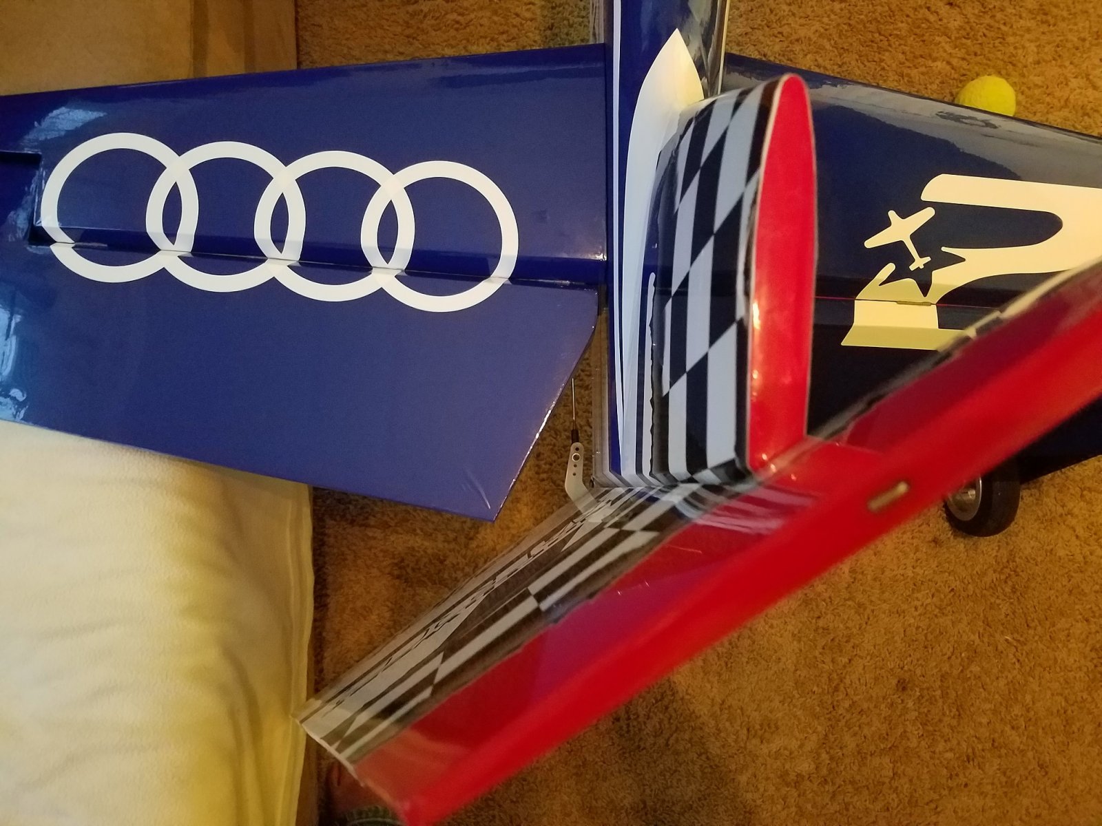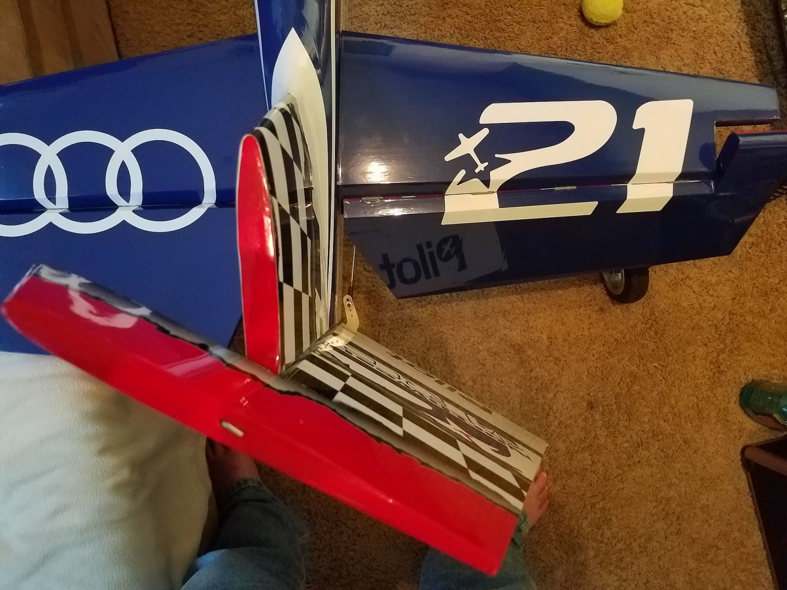 Here you go Tanner. I am not entirely certain of what it is that is different or just what you can tell from the photos of my Edge rudder. But as you can see, I get plenty...way lots of plenty of rudder throw. In fact, I have my rudder throw "e.p.a'd" out to stop it from going full stop either direction. And the rudder will travel exactly the same amount whether left or right. Full down elevator does not interfere with the rudder travel. I have found that the 107" V2 Pilot Edge does not "need" all the rudder throw you can get out of it. In fact, too much rudder actually counteracts any superior maneuvering capabilities. For example: Both my 107"'ers only needs about 30 degrees max throw to get wicked fast and tight knife edge spins. "Pop-Tops" are just as insane. When doing full throttle knife edge snaps, max throw of the rudder will give you some extremely violent snaps. From perfect Left wing up snapped to perfect Right wing up and vice versa.