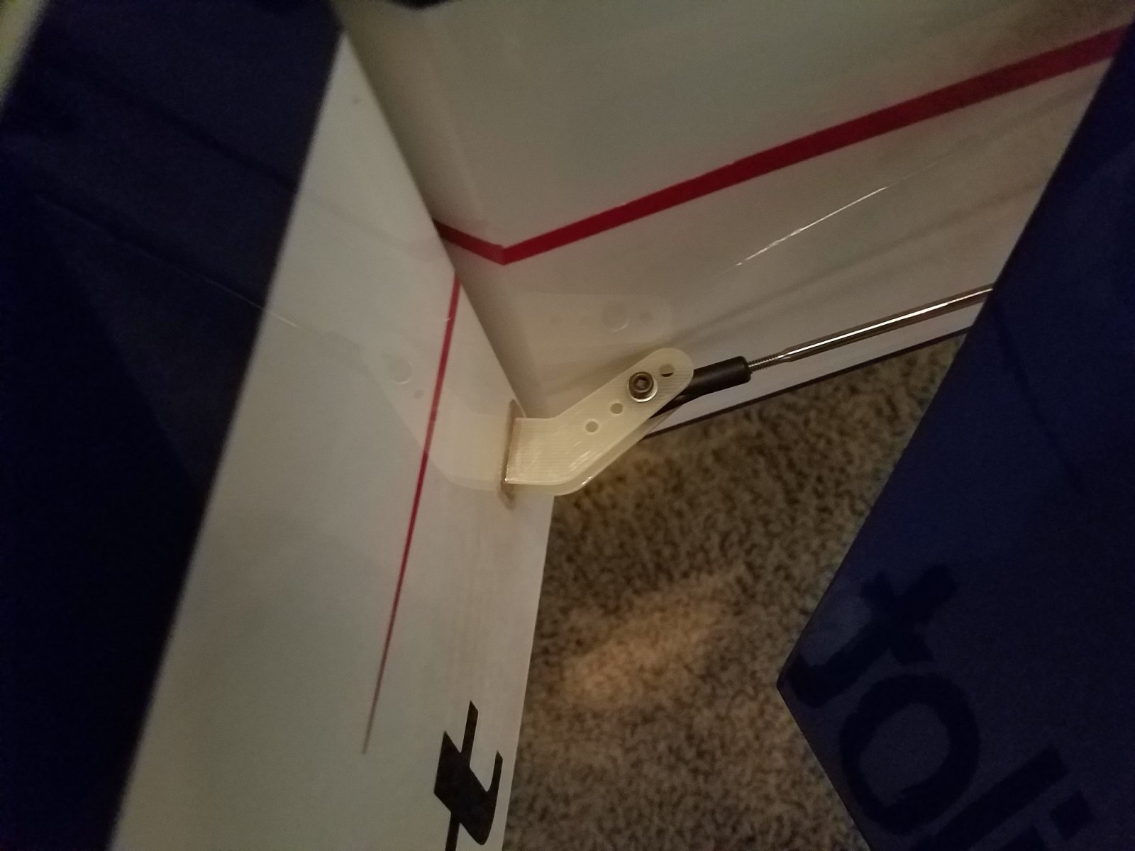 I already tried that, that's how it was originally setup. The entire linkage geometry was perfect, so long as I didn't use any down elevator at all, because it would hit the linkage.