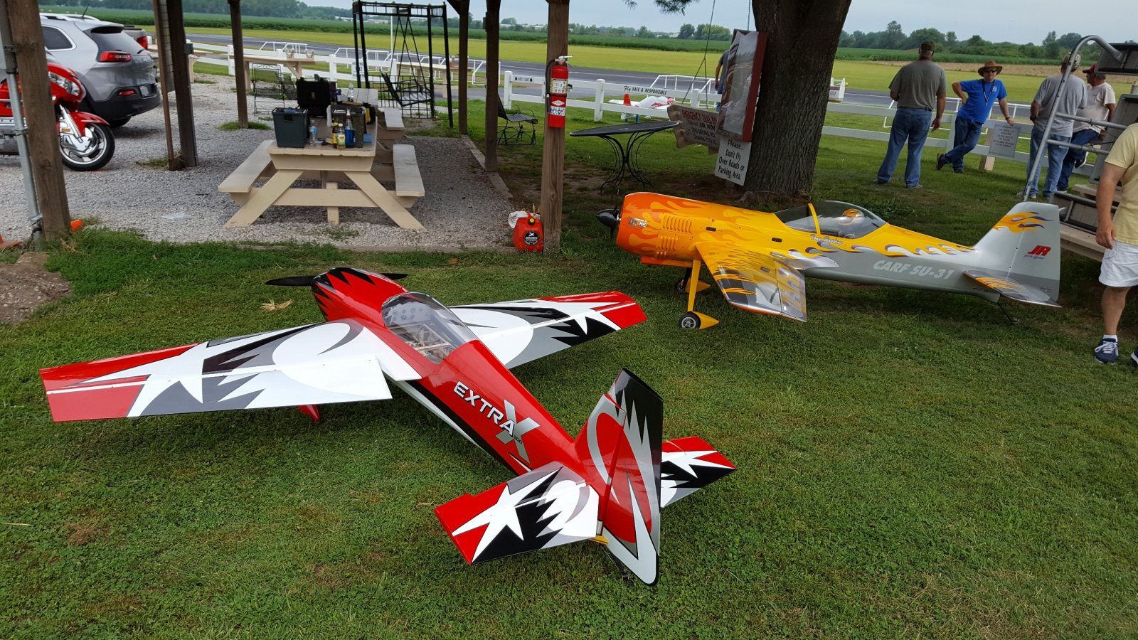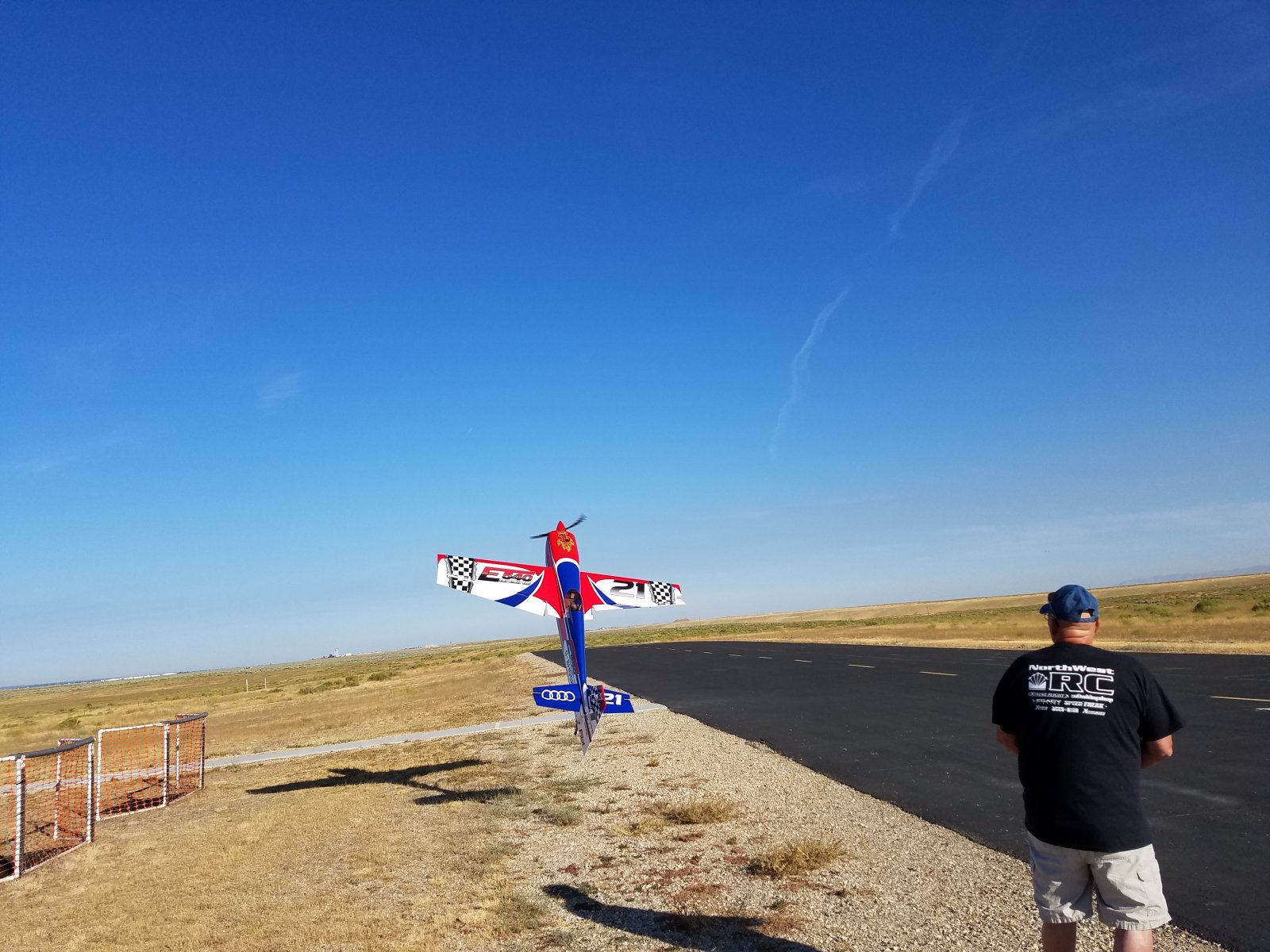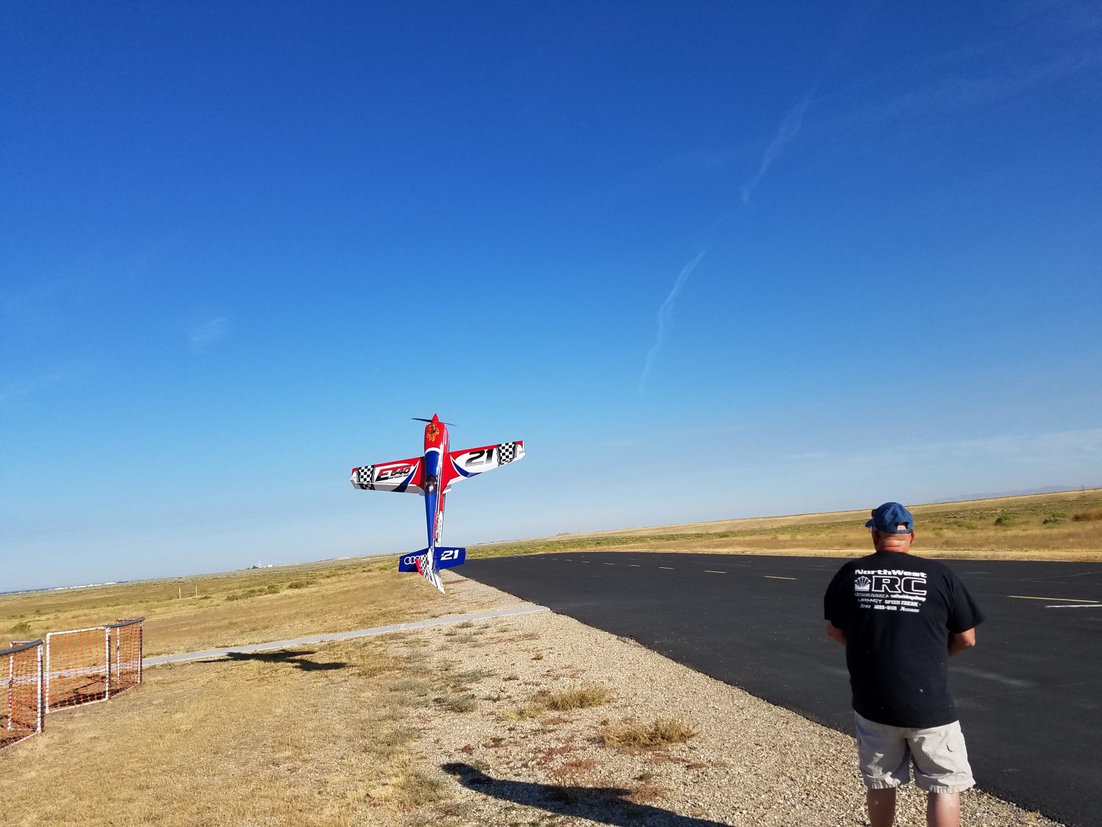 The field was pretty empty today because it was hot and the humidity this morning was ridiculous. The dew point was in the mid 70's. About 11 o'clock a storm front rolled past and the wind that was non-existent earlier pick up to about 20 for about an hour, then calmed down enough to get another flight in and the humidity dropped a bunch. Tony and I both only got two flights in each, but it was a good day none the less.