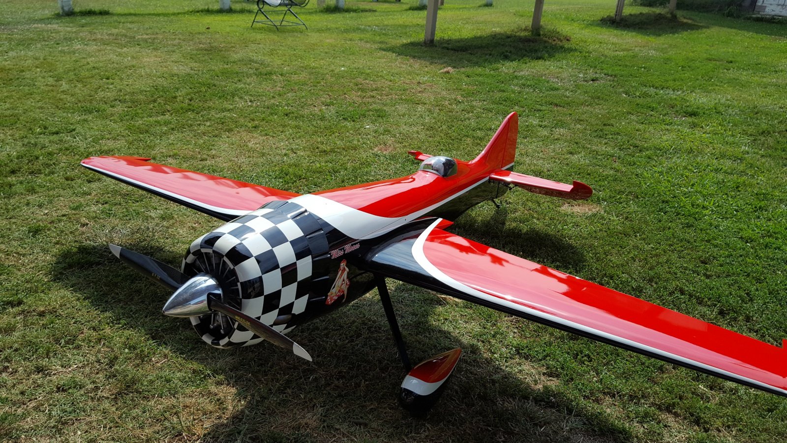 I did figure out it doesn't slow down well to land without at least a little head wind. My first landing was great since there was a slight wind blowing down the runway which slowed the plane nicely. The second landing the wind was dead and the airplane just sailed on past and I had to go around. It reminded me of landing a 9 pound Ballistic style pattern airplane from decades ago.