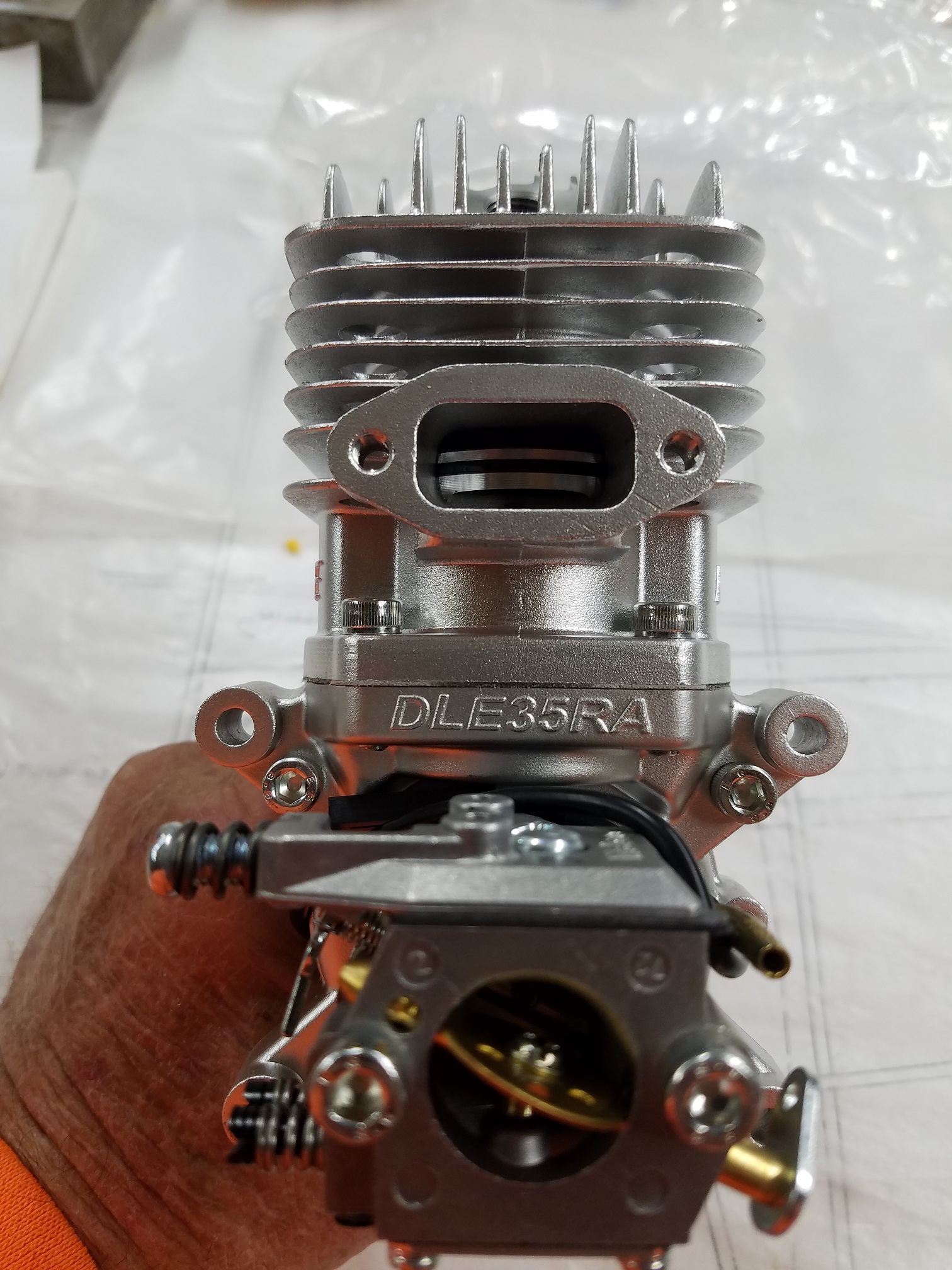 When AKNick takes care of bi-ness, he "REALLY" takes care of bi-ness. The new DLE 35RA arrived today in perfect condition. Included in the box was a brand new Bowman ring for said little jewel. Thanks VVRC, you guys still top shelf. I broke out the little 35 and removed the cylinder and replaced the ring. Wow is all I can say. When I bought my first DLE 55 many, many years ago...it was nice and it ran like a swiss watch. But not near as polished and pretty as the new DLE's are of these days. I love, love...LOVE my "dubs", but I have no shame in owning a DLE of today's quality. I am not about to trade of the beast motors, but hey... a little DLE now and then can't hurt anyone right? They run so dang good...