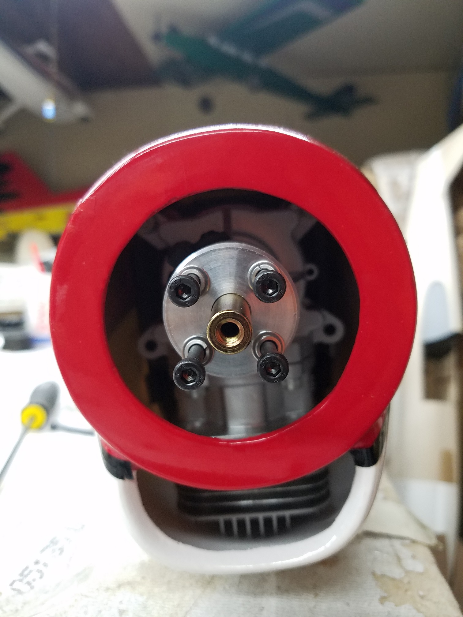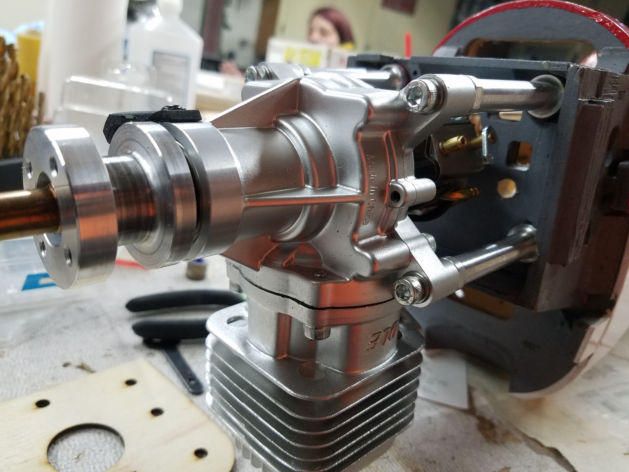 The 35RA fits quite nicely inside the cowl of the Strega. With ample room on all sides and the cowl will allow for great airflow over the engine. I may have to open a small relief hole in the bottom of the cowl to keep the top fins on the cylinder from rubbing a hole in it...but hey, better than a huge gaping hole. The sparky sparky may require a little bit of a hole also...but not much.