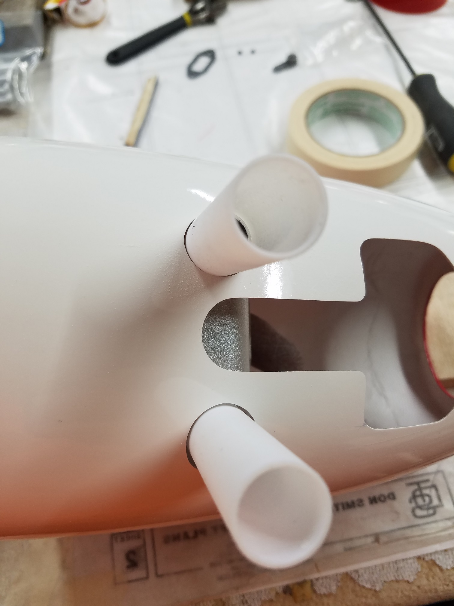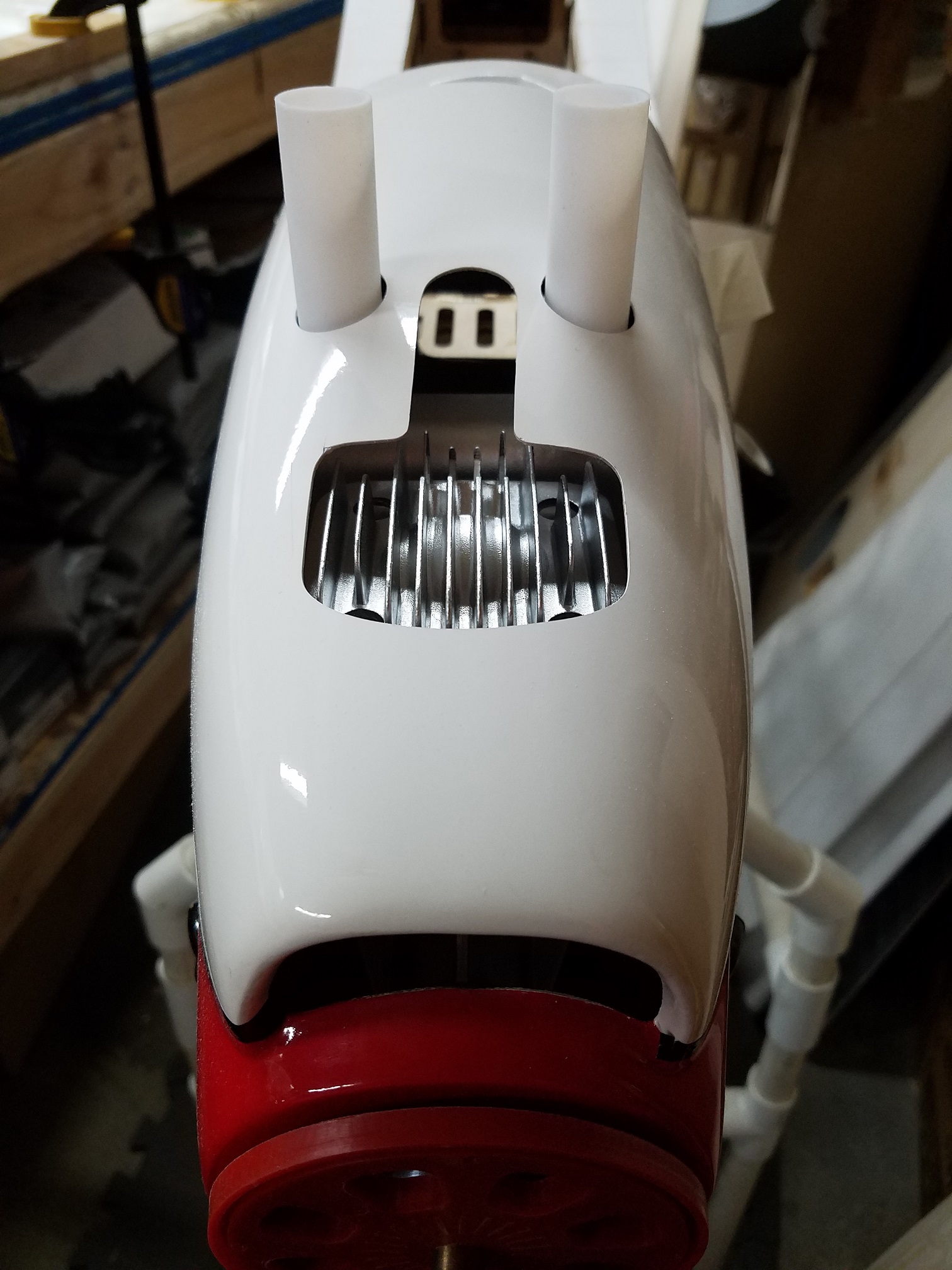 Actually I spent the day setting the cowl on the Phoenix Strega. I am always surprised how long it takes to mount an engine and set a cowl. Trying to be very precise about this so it looks nice. I won't bore you all with the details because we all have done this a couple of hundred times right? But I will post lots of photos. The photos should be self explanatory. All in all, the engine install and cowl setting came out pretty nice. I think I can live with it.