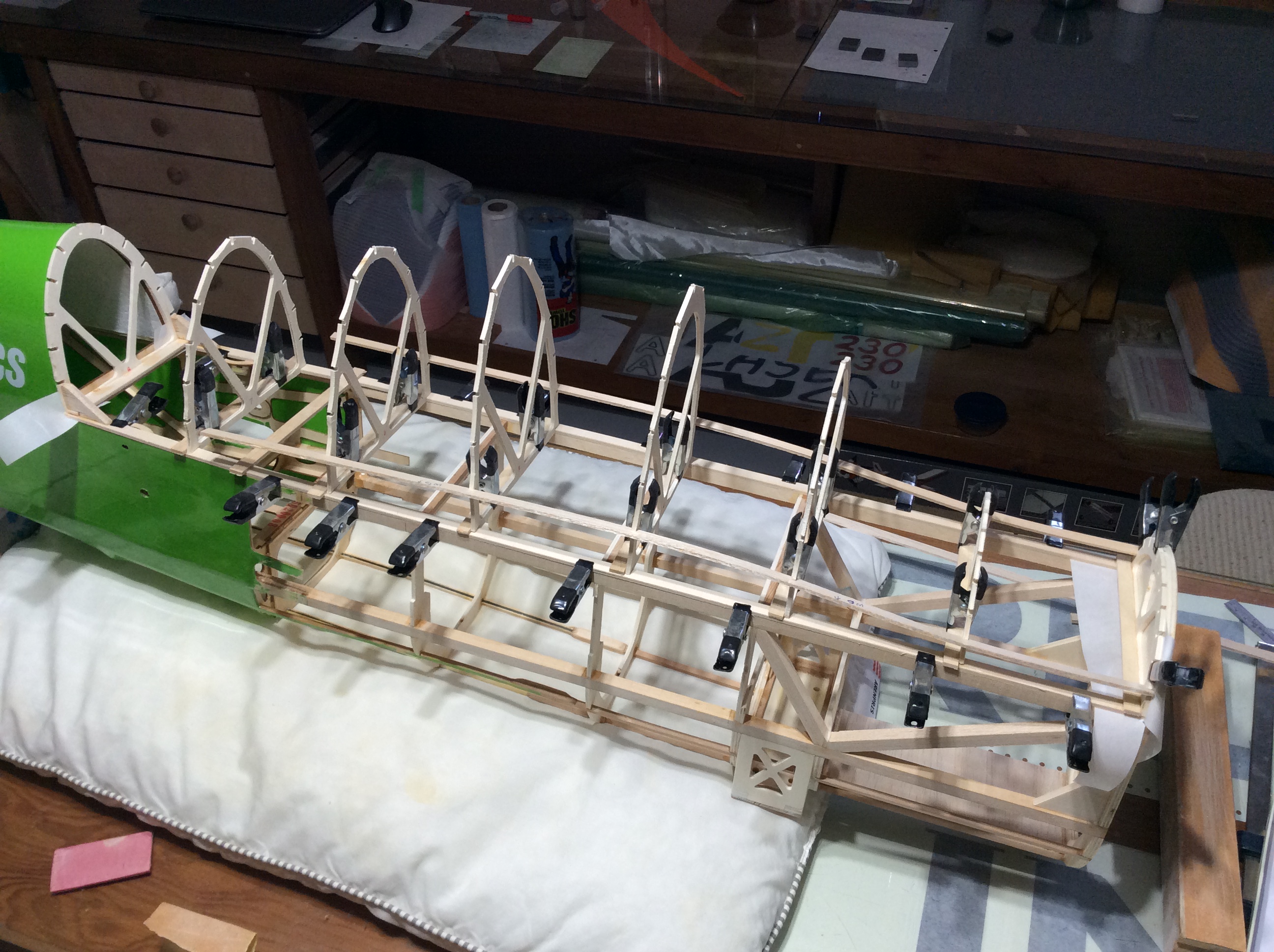 Have a fuselage, a single piece lower wing, and tail feathers. Making slow progress.