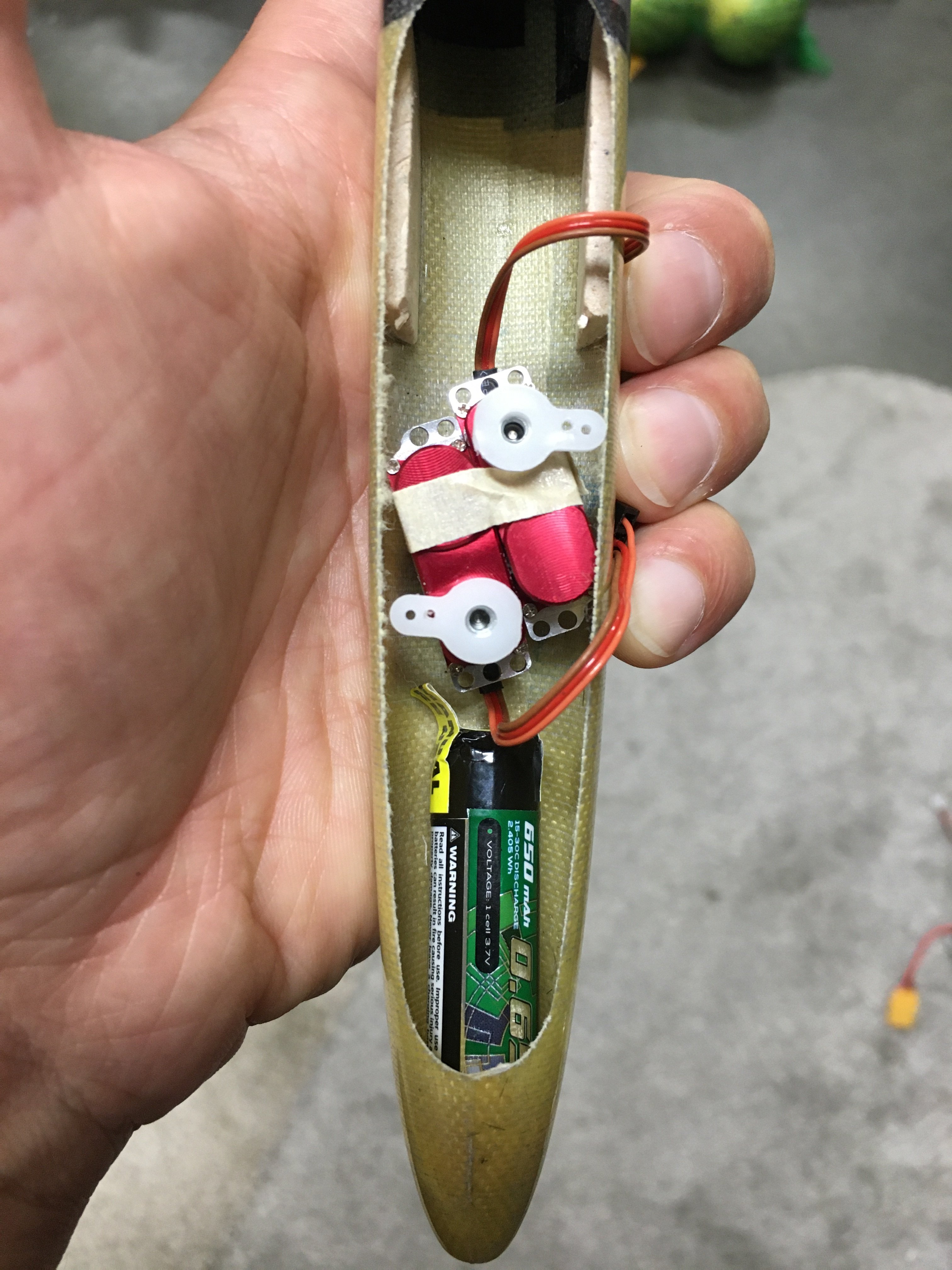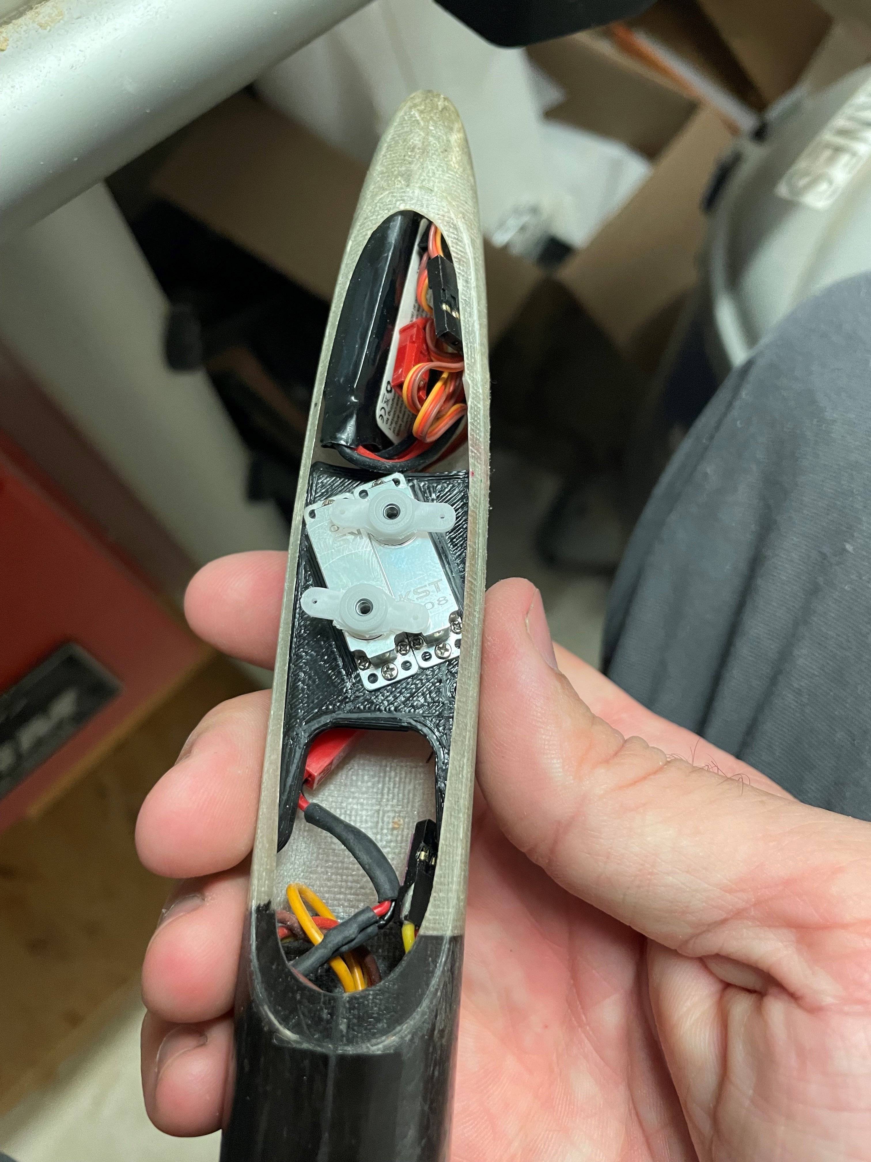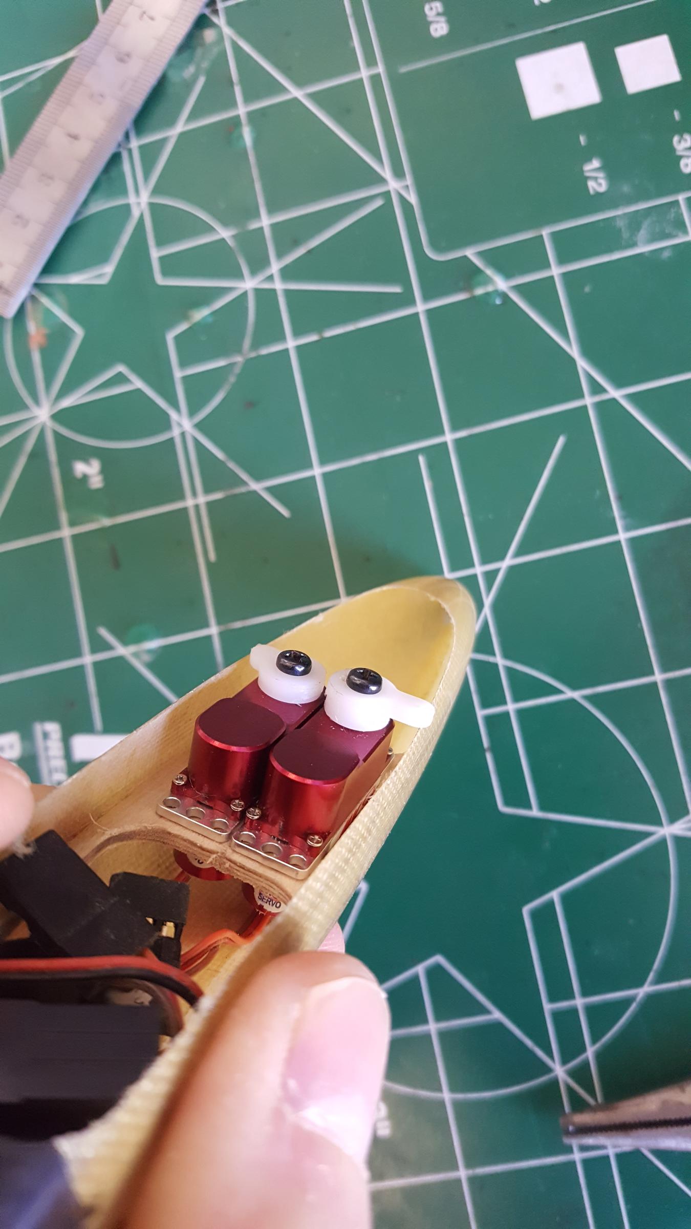 Here are my two options and I think I’m going with the canted servos now. I’ll just need to be a bit more careful with my battery usage and swap them out. I’m finding with my mini dart a 20min flying session may only eat 30-40mAh tops.