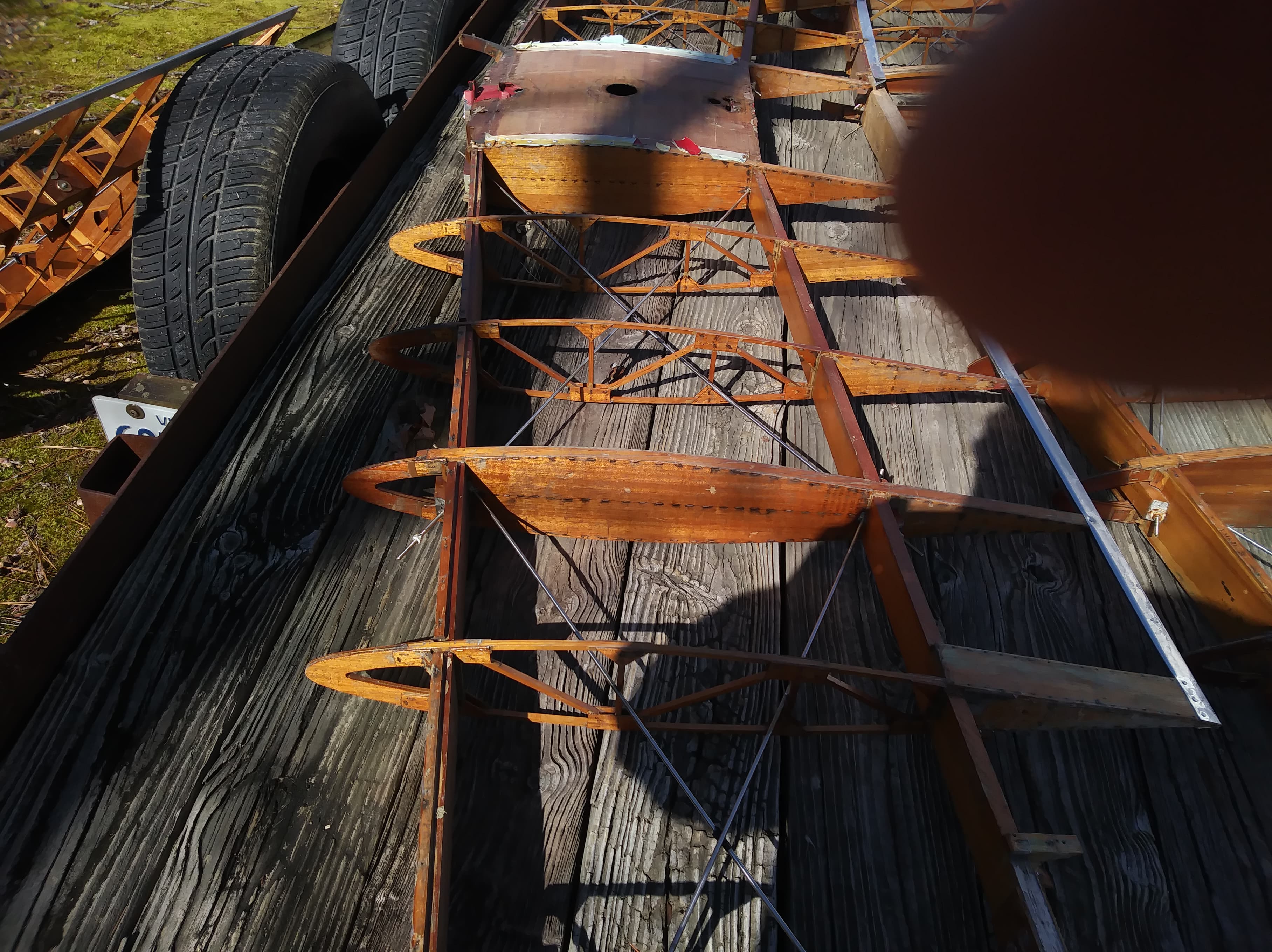 Ain't going to lie, I'm pretty damn jealous!So this should be fun. Flying buddy picked up a used car trailer and it came with a set of busted of full scale Pitts wings. He was just gonna to cut them up and toss them. I told him not to that I would come get them for some nice wall art in the shop.
