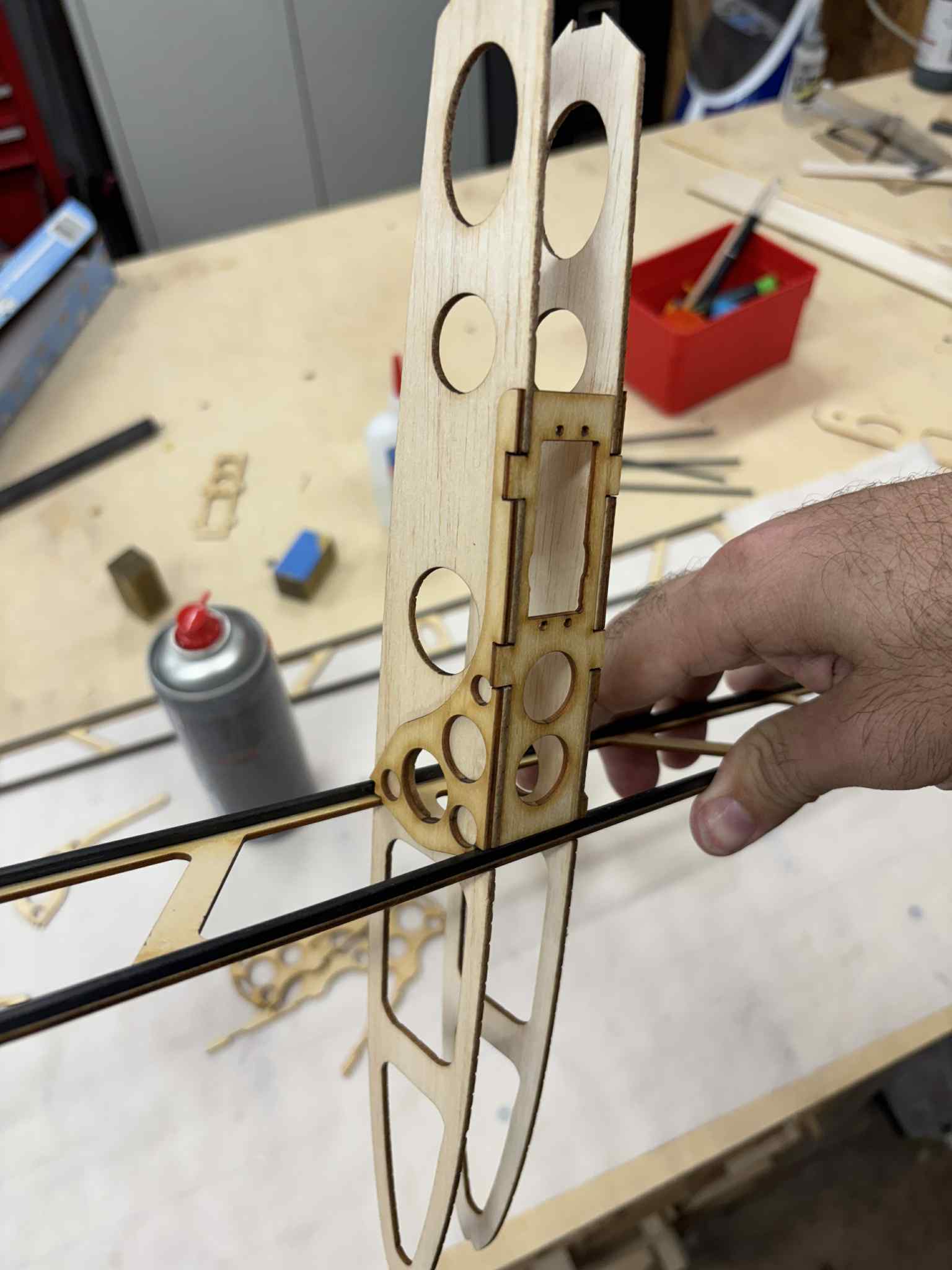 It's a profile and my design is about all I will say currently. As for the wing tube that where I'm using the wing tube and phenolic out of a old crashed EF 60" Extra. The phenolic wasn't quite long enough. Since the phenolic is more of just a guide for the tube I'm splicing two pieces together so in that picture its just where I had slide them both in there to mark the second piece of where to cut it. It will end right at that plywood support at the servo tray.