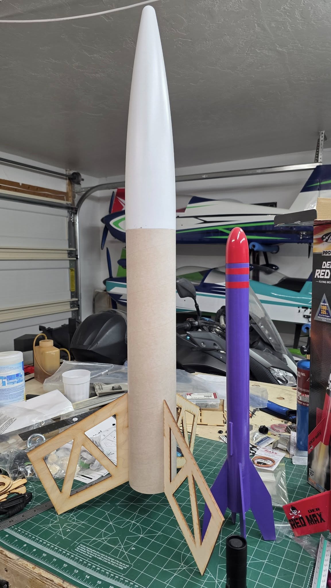 Anyone mess with rockets? I've been playing with making this Estes Mega Der Red Max into an L1 cert rocket. From factory it comes with 1/8" ply fins that you're supposed to laminate balsa over to achieve a total of 1/4" of thickness, and it comes with 1/8" ply motor rings inside. They have it set up for a 3 engine cluster. But I decided to try an L1 certification on a single H100 motor with this so naturally I decided that 1/4" birch ply would work better with a custom fin cage. Just need a few more parts to make it happen :banana-dance: