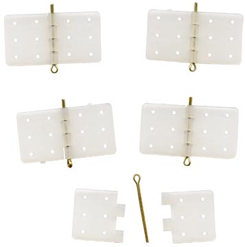 Hey there Snoopy1, those look like Dubro Heavy Duty 1/4 scale hinges (Dubro part # 257). They come in a package of 15 hinges with cotter pins as in the attached pics. I take the cotter pins out and replace them with .047 music wire to get remove-able controls as shown in the attached photo. Just use some tape to hold the 90 degree bend in place and you're done.View attachment 53547 View attachment 53548