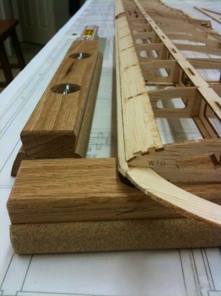 The added weight from the oak blocks is what really sets these apart from aluminum T-bar or aluminum Easy-Touch sanding bars. The weight of the blocks does all the work for you! All you have to do is move them back and forth. Got my leading edge shaped tonight in no time flat.