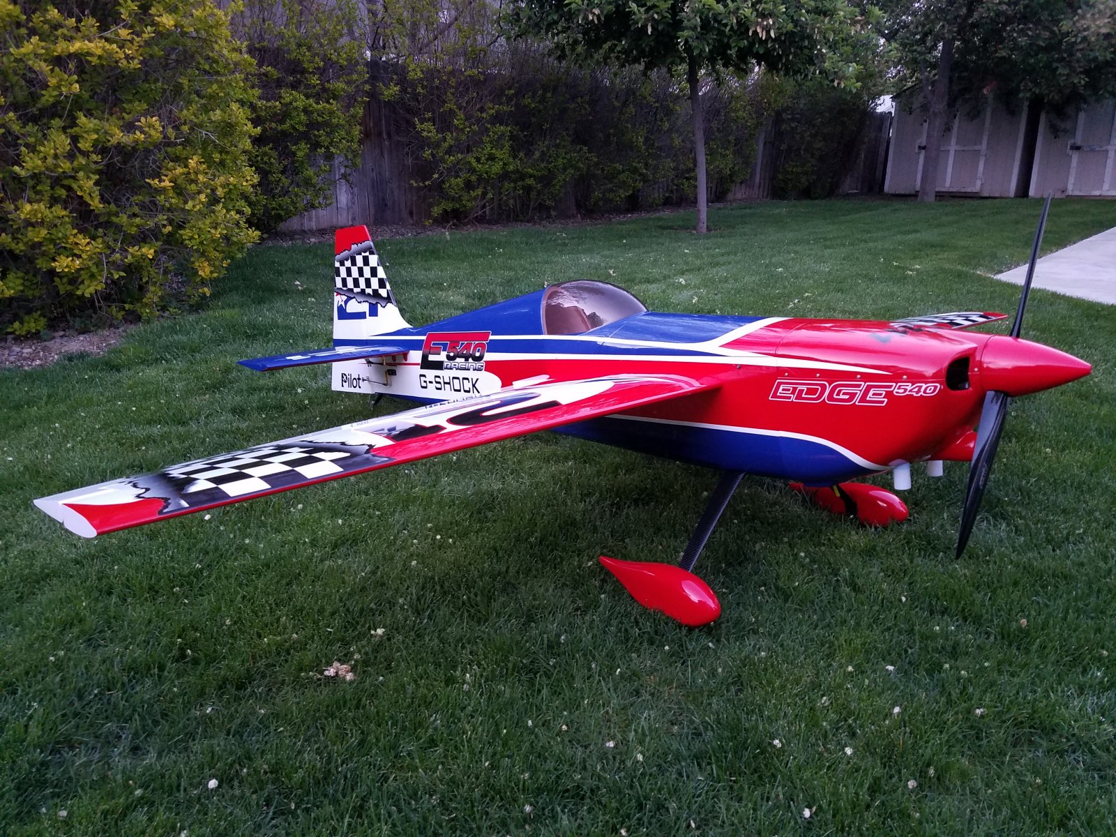 Well I did not make it. Midnight and I am beat. I did get the Rudder servos in and tuned...throws set. Elevators are also in and tuned. About 50 degrees "up", about 46 down. I could not get anything more than that due to the horns touching the bottom of the stabs. No big...that is more than I had on the last Edge. Same with the "up" throws. Also got the right wing aileron servos in, set....but not tuned. So all I have left is to tune the right wing aileron servos, install and dial in the left wing servos, mount the cowl, landing gear and balance. She'll be ready for blast off tomorrow. I have also pre-run the V3 111. She runs like a scalded dog. This makes the third V3 DLE 111 I have owned new and it is no different from the previous two. Starts remarkably easy, idles nicely...transition is incredibly smooth. And even with the stock exhaust, (which I have really come to like) it is getting some really great rpm with the Falcon CF 28x10. So weather permitting, The Edge will see open air this weekend. The Pitts on the other hand will not make it. Still waiting for the last of the paint and clear coat for the cowl to arrive. No big though. I feel very confident it will make it next weekend. After that, I am back to the Behemoth Yak engine retrofit. Wow, too many planes. Not enough hours in the day. LOL