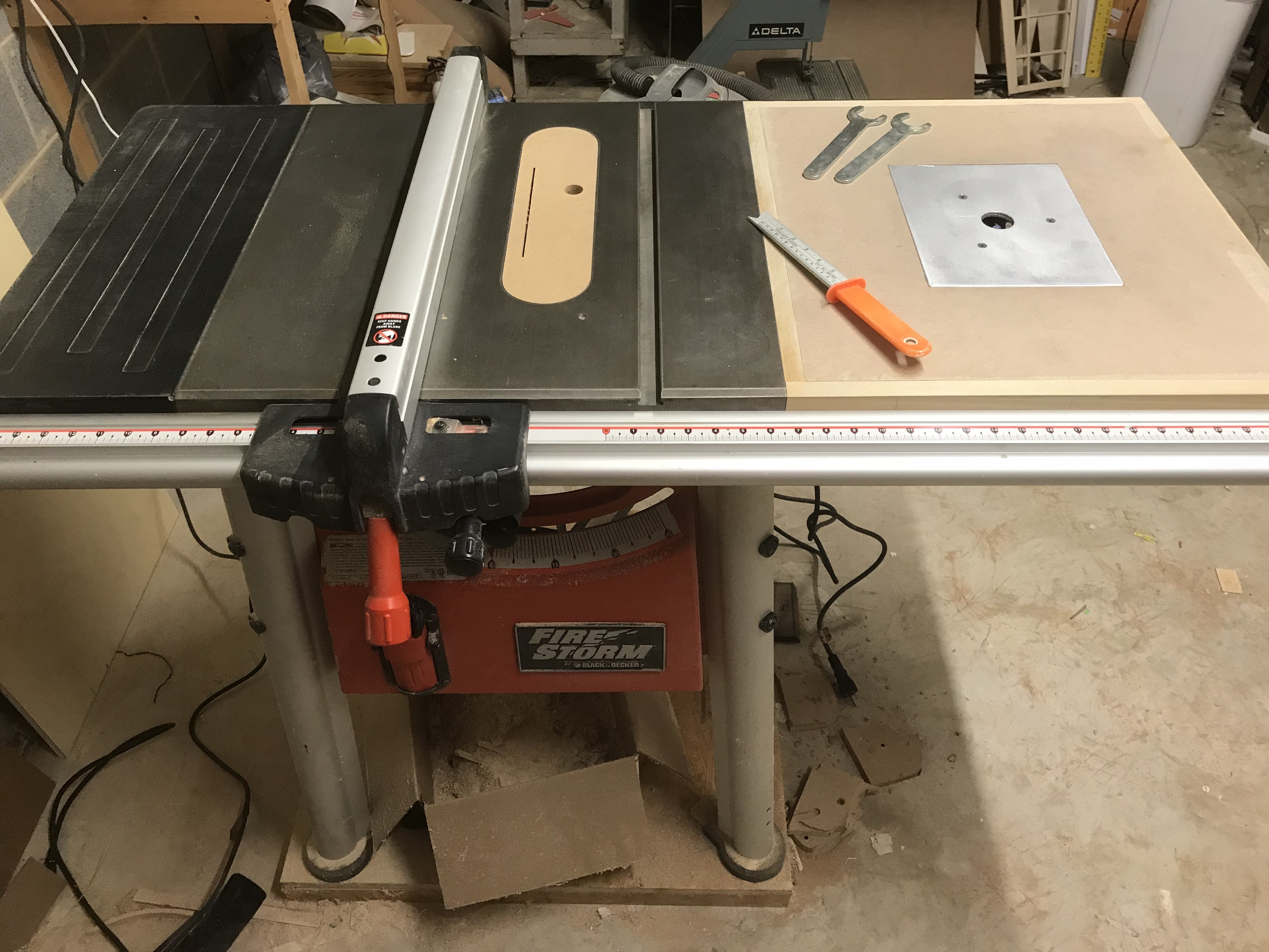 View of it all. Made a new zero clearance insert for the saw as well.
